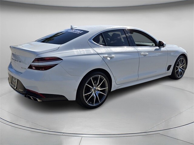 CARFAX One-Owner. Clean CARFAX. Certified. 10 year or 100,000 mile Powertrain Warranty, Leather, Bluetooth Hands Free, Sirus XM Radio, Navigation, Back Up Camera. Alta White 2023 Genesis G70 2.0T RWD I4 8-Speed Automatic with SHIFTRONIC