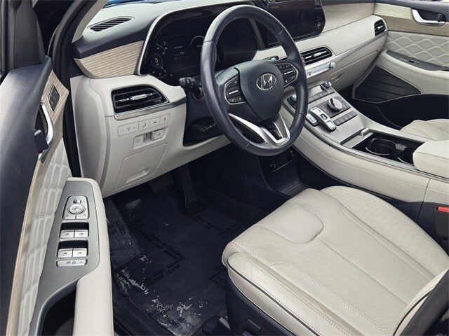 CARFAX One-Owner. Certified. 10 year or 100,000 mile Powertrain Warranty, Leather, Bluetooth Hands Free, Sirus XM Radio, Power Moonrooof, Navigation, Back Up Camera. Moonlight Cloud 2022 Hyundai Palisade Calligraphy FWD V6 8-Speed Automatic with SHIFTRONIC