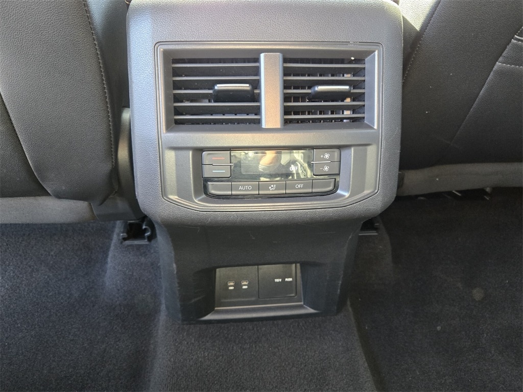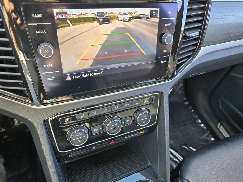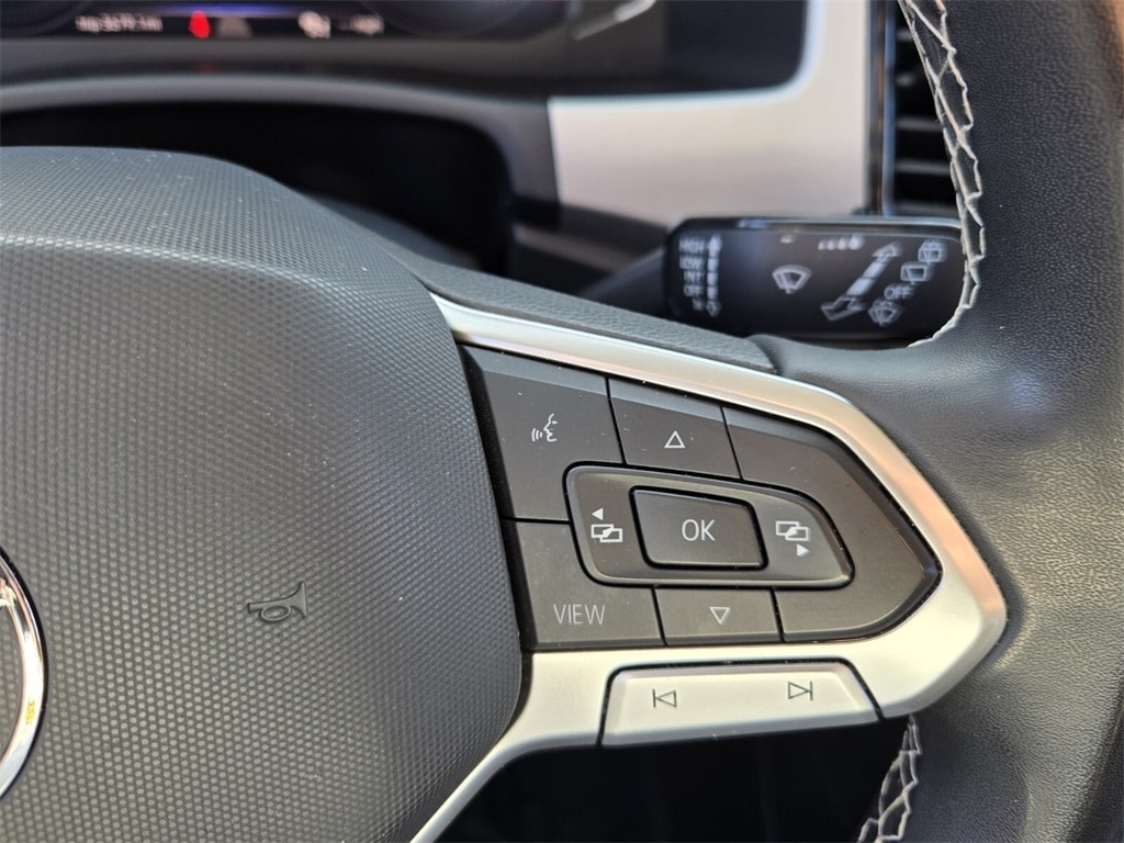 This vehicle comes equipped with 3.60 Axle Ratio, 3rd row seats: split-bench, 4-Wheel Disc Brakes, 6 Speakers, ABS brakes, Air Conditioning, Alloy wheels, AM/FM radio: SiriusXM with 360L, Auto-Dimming Rear-View Mirror, Auto-dimming Rear-View mirror, Automatic temperature control, Brake assist, Bumpers: body-color, Compass, Delay-off headlights, Driver door bin, Driver vanity mirror, Dual front impact airbags, Dual front side impact airbags, Electronic Stability Control, Emergency communication system, Exterior Parking Camera Rear, First Aid Kit, Four wheel independent suspension, Front anti-roll bar, Front Bucket Seats, Front Center Armrest, Front dual zone A/C, Front fog lights, Front reading lights, Fully automatic headlights, Heated Comfort Front Bucket Seats, Heated door mirrors, Heated front seats, Illuminated entry, Leather Shift Knob, Low tire pressure warning, Occupant sensing airbag, Outside temperature display, Overhead airbag, Overhead console, Panic alarm, Passenger door bin, Passenger vanity mirror, Perforated V-Tex Leatherette Seating Surfaces, Power door mirrors, Power driver seat, Power Liftgate, Power steering, Power windows, Privacy Cover, Radio data system, Radio: MIB3 Composition Media w/8" Touchscreen, Rain sensing wipers, Rear air conditioning, Rear anti-roll bar, Rear reading lights, Rear seat center armrest, Rear window defroster, Rear window wiper, Remote keyless entry, Roadside Assistance Kit, Roof rack: rails only, Rubber Mats Kit - Bench Seats, Security system, Speed control, Speed-sensing steering, Split folding rear seat, Spoiler, Standard Suspension, Steering wheel mounted audio controls, Tachometer, Telescoping steering wheel, Tilt steering wheel, Traction control, Trip computer, Trunk Liner w/VW CarGo Blocks, Turn signal indicator mirrors, Variably intermittent wipers, and Wheels: 20" x 8J 5-Spoke Silver Painted Alloy .