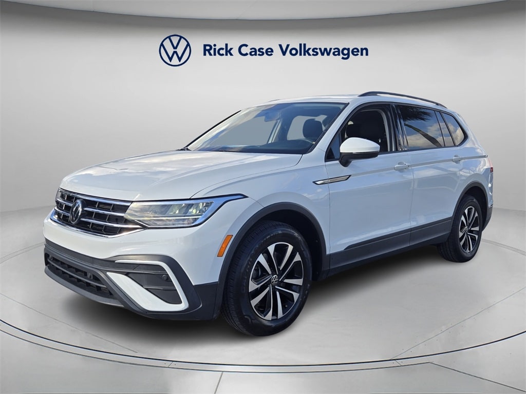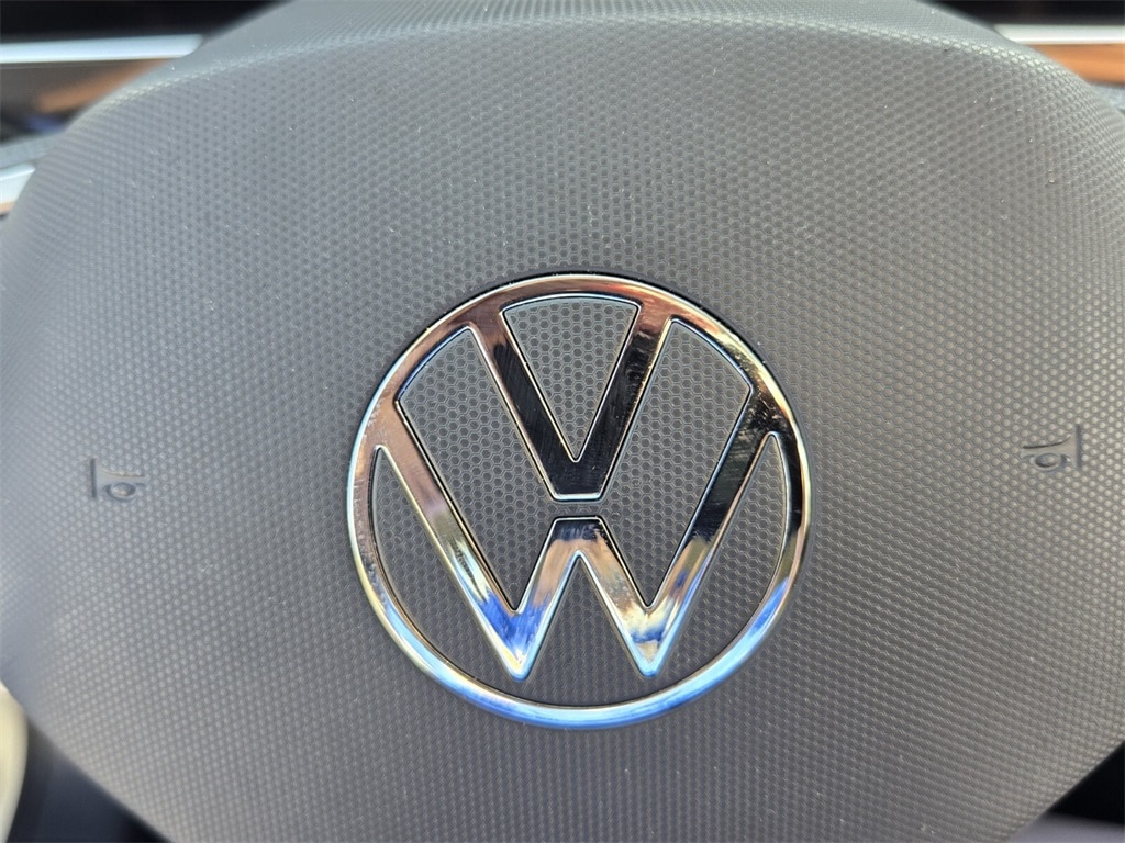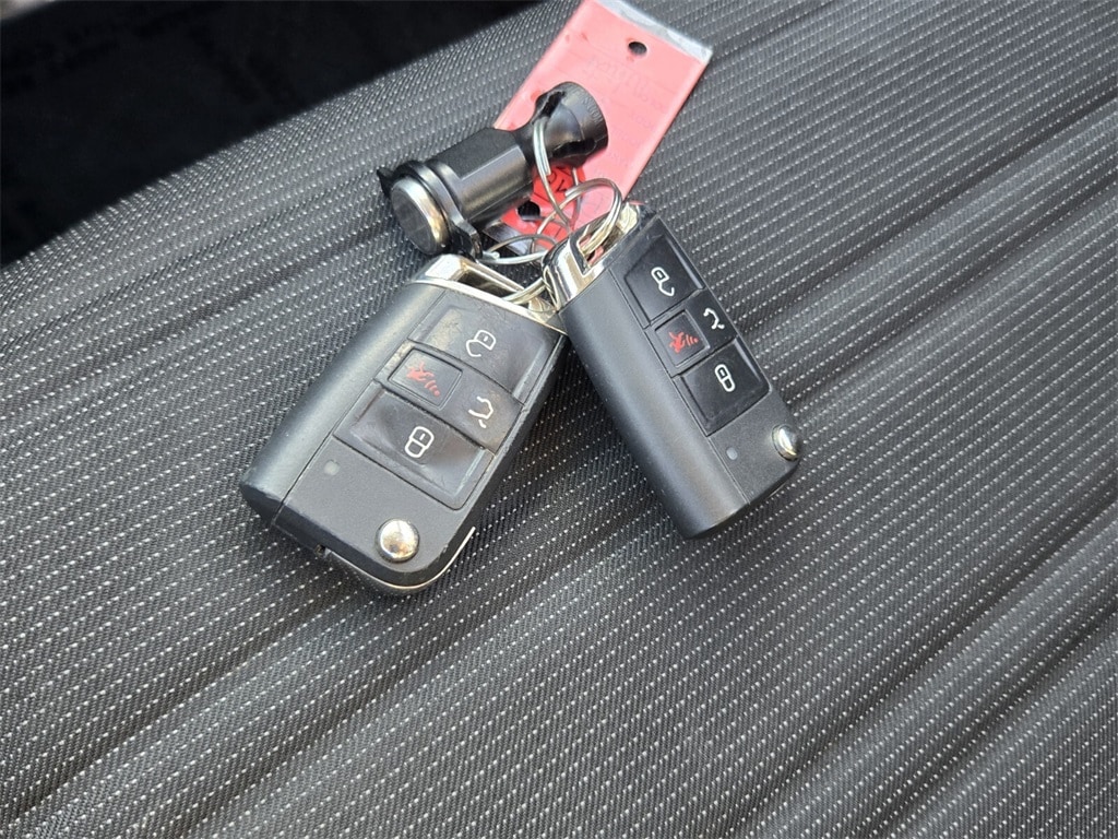 This vehicle comes equipped with 3-Row Rubber Monster Mats w/Logo Kit (Set of 5), 3.33 Axle Ratio, 3rd row seats: bench, 4-Wheel Disc Brakes, 4-Wheel Independent Suspension, 6 Speakers, ABS brakes, Air Conditioning, Alloy wheels, AM/FM radio, Brake assist, Bumpers: body-color, Cloth Seating Surfaces, Compass, Delay-off headlights, Driver door bin, Driver vanity mirror, Dual front impact airbags, Dual front side impact airbags, Electronic Stability Control, Emergency communication system: Car-Net, Exterior Parking Camera Rear, First Aid Kit, Forward collision: FCW w/Autonomous Emergency Braking mitigation, Four wheel independent suspension, Front anti-roll bar, Front Bucket Seats, Front Center Armrest, Front reading lights, Fully automatic headlights, Heated door mirrors, Heated Front Bucket Seats, Heated front seats, Heavy Duty Trunk Liner w/VW CarGo Blocks, Illuminated entry, Leather Shift Knob, Low tire pressure warning, Occupant sensing airbag, Outside temperature display, Overhead airbag, Overhead console, Panic alarm, Passenger door bin, Passenger vanity mirror, Power door mirrors, Power steering, Power windows, Radio data system, Radio: Composition Color AM/FM, Rear anti-roll bar, Rear reading lights, Rear seat center armrest, Rear window defroster, Rear window wiper, Remote keyless entry, Roadside Assistance Kit, Roof rack: rails only, Speed control, Speed-sensing steering, Split folding rear seat, Spoiler, Steering wheel mounted audio controls, Tachometer, Telescoping steering wheel, Tilt steering wheel, Traction control, Trip computer, Turn signal indicator mirrors, Variably intermittent wipers, and Wheels: 17" 2-Tone Machined Twin 5-Spoke Alloy .