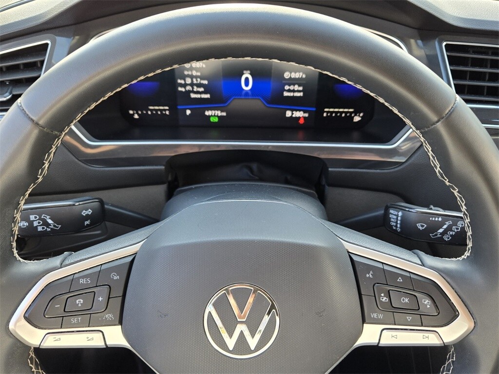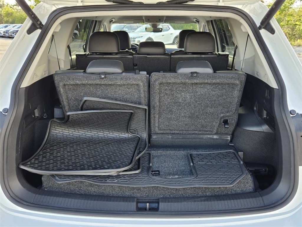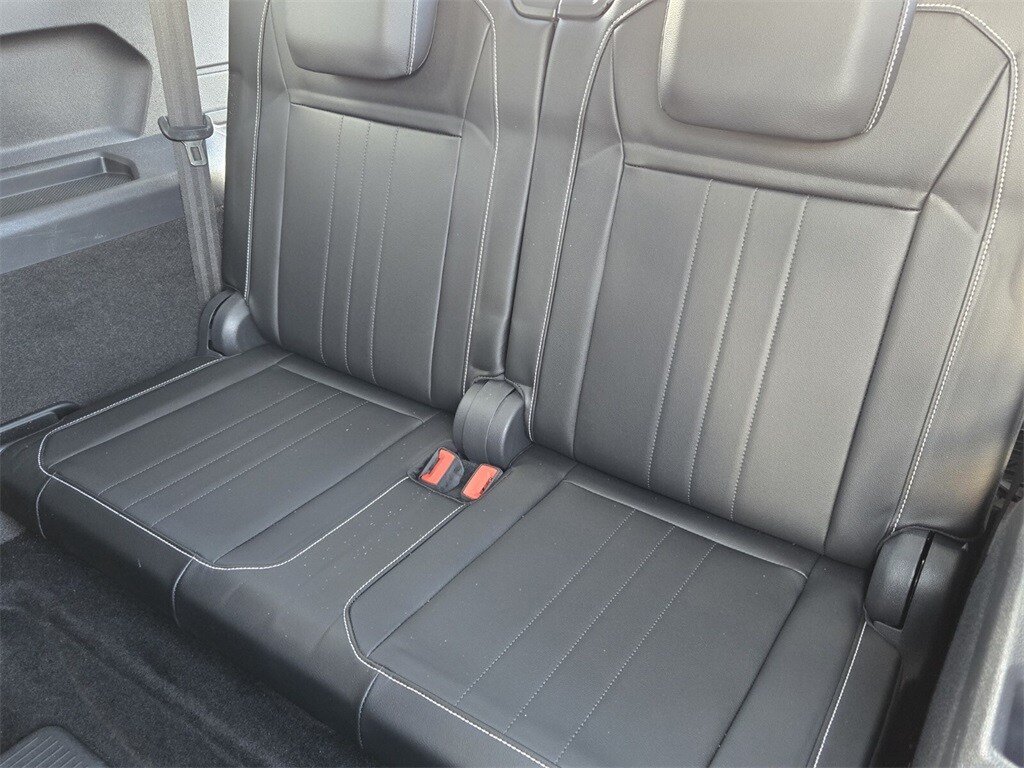 This vehicle comes equipped with 3-Row Rubber Monster Mats w/Logo Kit (Set of 5), 3.33 Axle Ratio, 3rd row seats: bench, 4-Wheel Disc Brakes, 4-Wheel Independent Suspension, 6 Speakers, ABS brakes, Air Conditioning, Alloy wheels, AM/FM radio: SiriusXM with 360L, Auto-dimming Rear-View mirror, Auto-Dimming Rearview Mirror w/HomeLink Connect (DISC), Automatic temperature control, Brake assist, Bumpers: body-color, Cargo Area Retractable Privacy Cover, Compass, Delay-off headlights, Driver door bin, Driver vanity mirror, Dual front impact airbags, Dual front side impact airbags, Electronic Stability Control, Emergency communication system: Car-Net, Exterior Parking Camera Rear, First Aid Kit, Four wheel independent suspension, Front anti-roll bar, Front Bucket Seats, Front Center Armrest, Front dual zone A/C, Front reading lights, Fully automatic headlights, Heated door mirrors, Heated Front Comfort Seats, Heated front seats, Heavy Duty Trunk Liner w/VW CarGo Blocks, Illuminated entry, Leather Shift Knob, Low tire pressure warning, Occupant sensing airbag, Outside temperature display, Overhead airbag, Overhead console, Panic alarm, Passenger door bin, Passenger vanity mirror, Perforated V-Tex Leatherette Seating Surfaces, Power door mirrors, Power driver seat, Power Liftgate, Power steering, Power windows, Radio data system, Radio: MIB3 Composition Media AM/FM/HD, Rain sensing wipers, Rear anti-roll bar, Rear reading lights, Rear seat center armrest, Rear window defroster, Rear window wiper, Remote keyless entry, Roadside Assistance Kit, Roof rack: rails only, Security system, Speed control, Speed-sensing steering, Split folding rear seat, Spoiler, Steering wheel mounted audio controls, Tachometer, Telescoping steering wheel, Tilt steering wheel, Traction control, Trip computer, Turn signal indicator mirrors, Variably intermittent wipers, and Wheels: 18" Dark Graphite 10-Spoke Alloy .