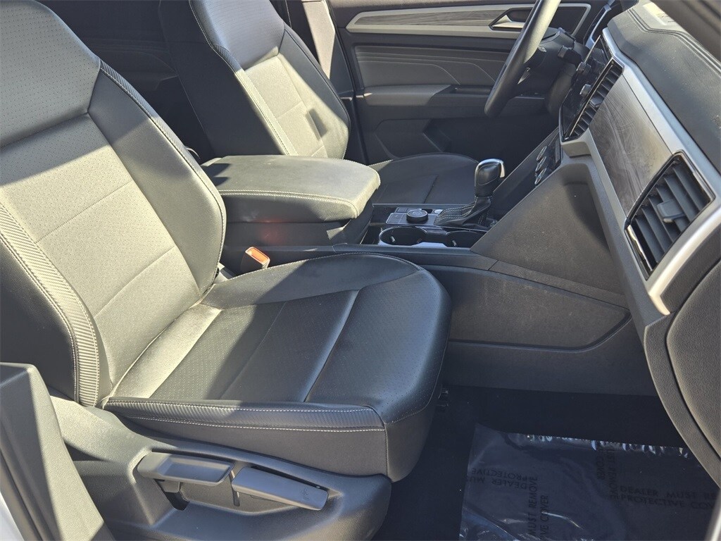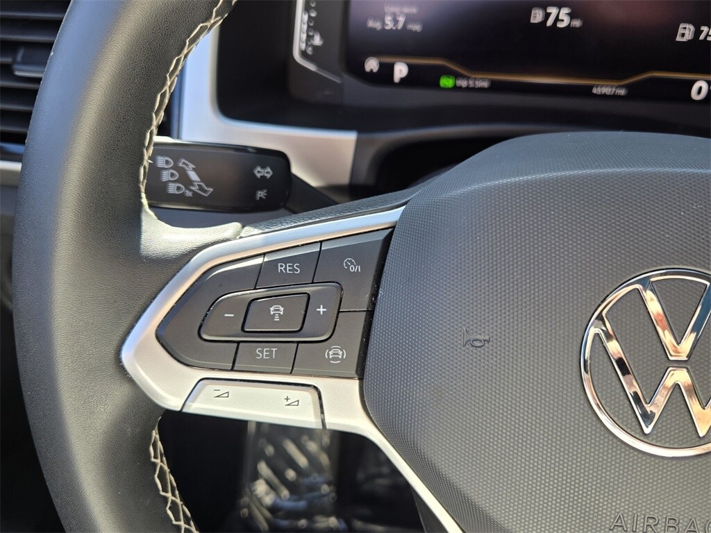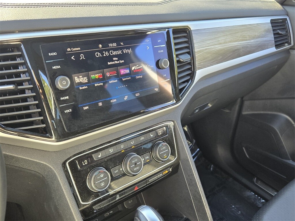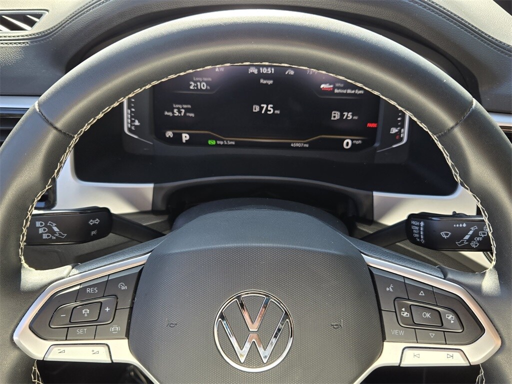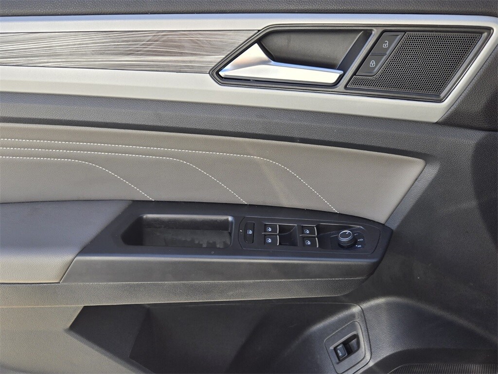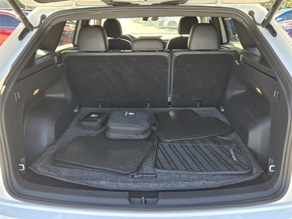 This vehicle comes equipped with 3.60 Axle Ratio, 4-Wheel Disc Brakes, 6 Speakers, ABS brakes, Air Conditioning, Alloy wheels, AM/FM radio: SiriusXM with 360L, Auto-dimming Rear-View mirror, Automatic temperature control, Brake assist, Bumpers: body-color, Compass, Delay-off headlights, Driver door bin, Driver vanity mirror, Dual front impact airbags, Dual front side impact airbags, Electronic Stability Control, Emergency communication system: VW Car-Net Safe & Secure 5-year, Exterior Parking Camera Rear, Four wheel independent suspension, Front anti-roll bar, Front Bucket Seats, Front Center Armrest, Front dual zone A/C, Front fog lights, Front reading lights, Fully automatic headlights, Heated Comfort Front Bucket Seats, Heated door mirrors, Heated front seats, Illuminated entry, Leather Shift Knob, Low tire pressure warning, Occupant sensing airbag, Outside temperature display, Overhead airbag, Overhead console, Panic alarm, Passenger door bin, Passenger vanity mirror, Perforated V-Tex Leatherette Seating Surfaces, Power door mirrors, Power driver seat, Power Liftgate, Power steering, Power windows, Radio data system, Radio: MIB3 Composition Media w/8" Touchscreen, Rain sensing wipers, Rear anti-roll bar, Rear reading lights, Rear seat center armrest, Rear window defroster, Rear window wiper, Remote keyless entry, Security system, Speed control, Speed-sensing steering, Split folding rear seat, Spoiler, Standard Suspension, Steering wheel mounted audio controls, Tachometer, Telescoping steering wheel, Tilt steering wheel, Traction control, Trip computer, Turn signal indicator mirrors, Variably intermittent wipers, and Wheels: 20" x 8J 5-Spoke Silver Painted Alloy .