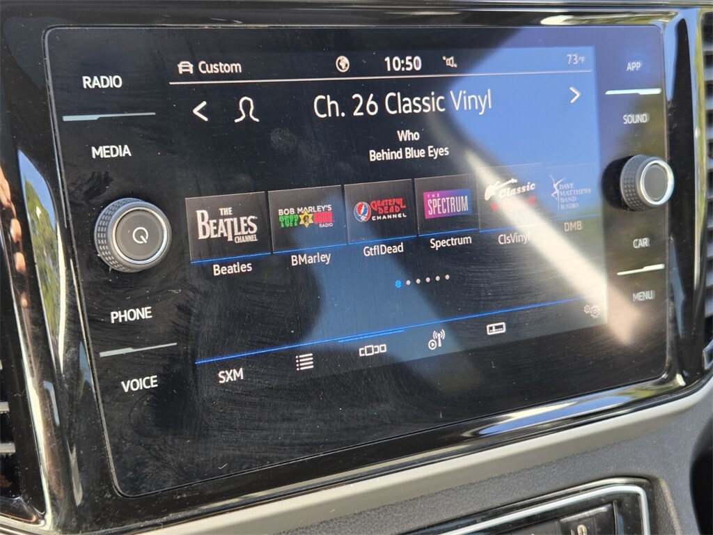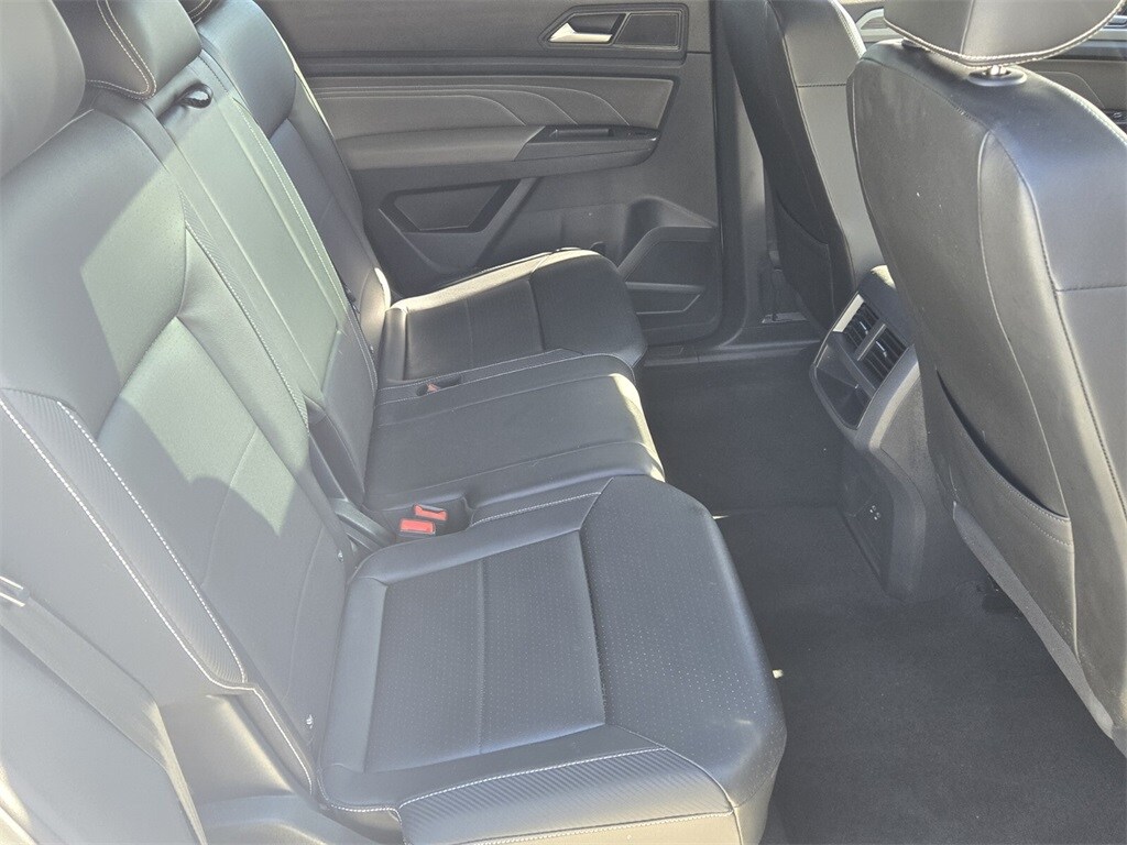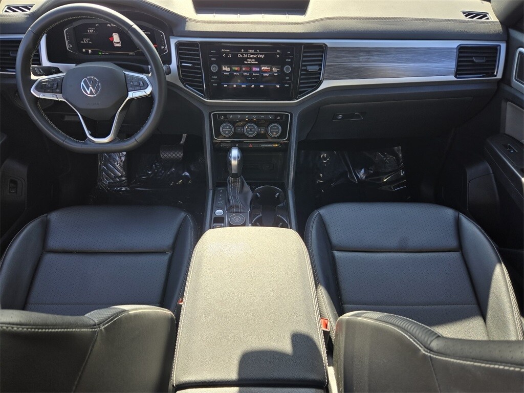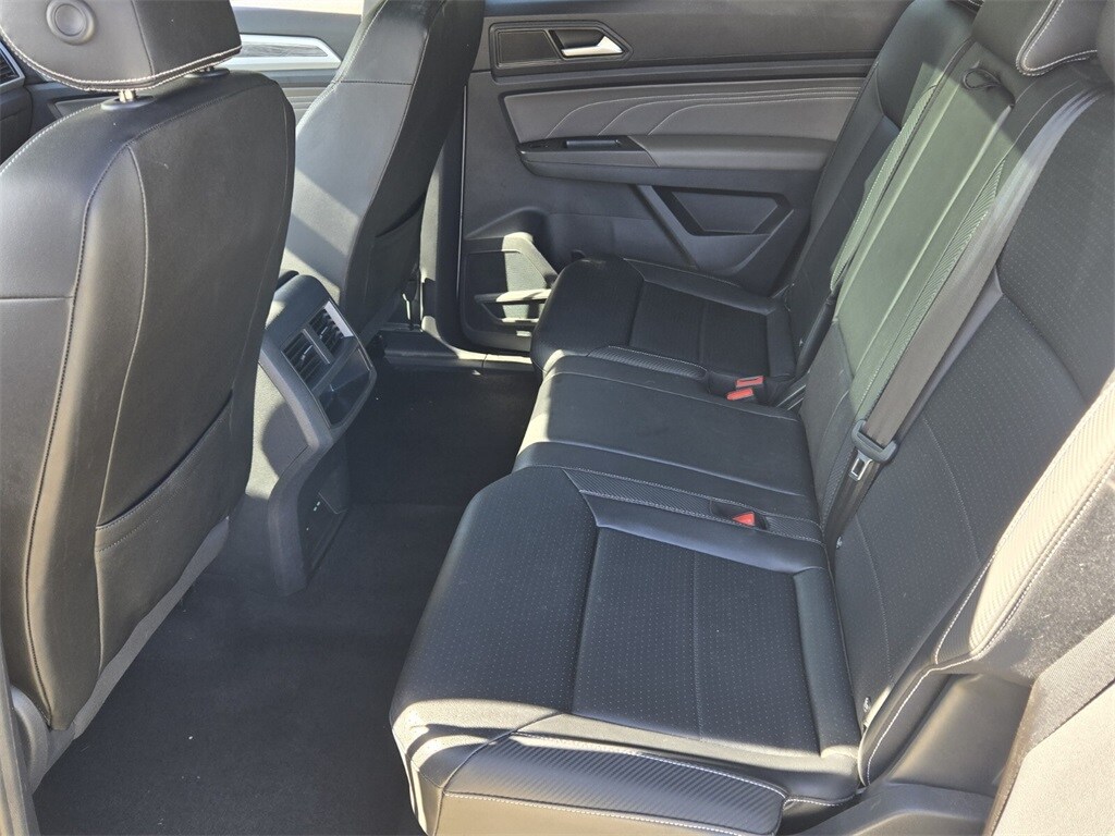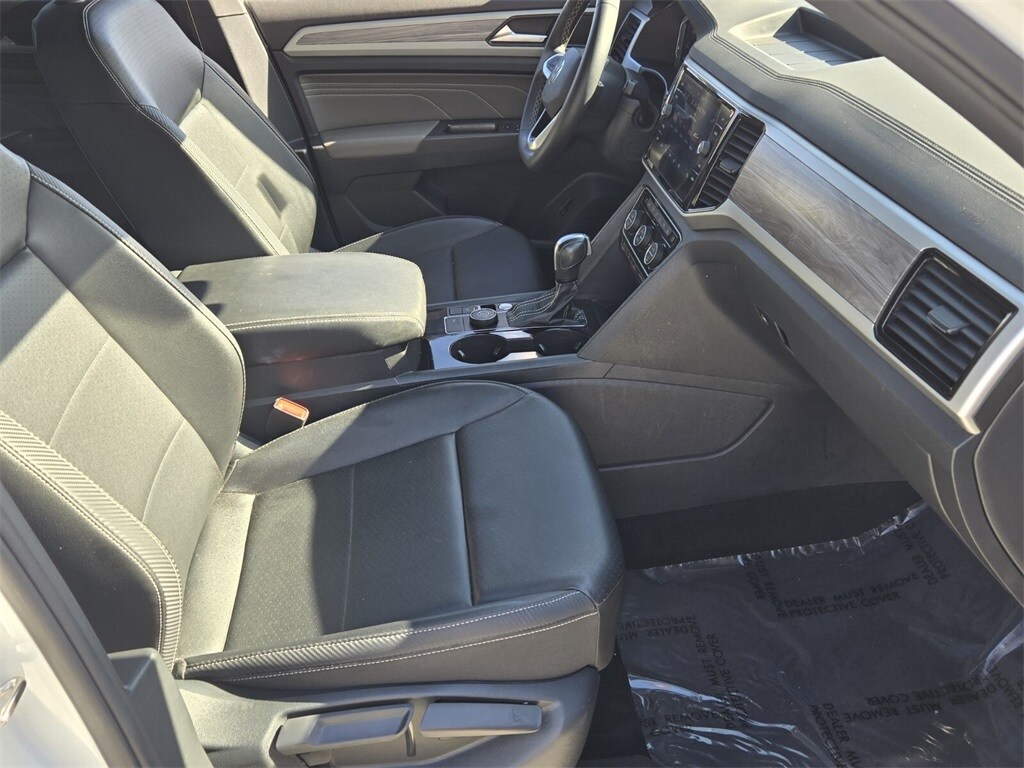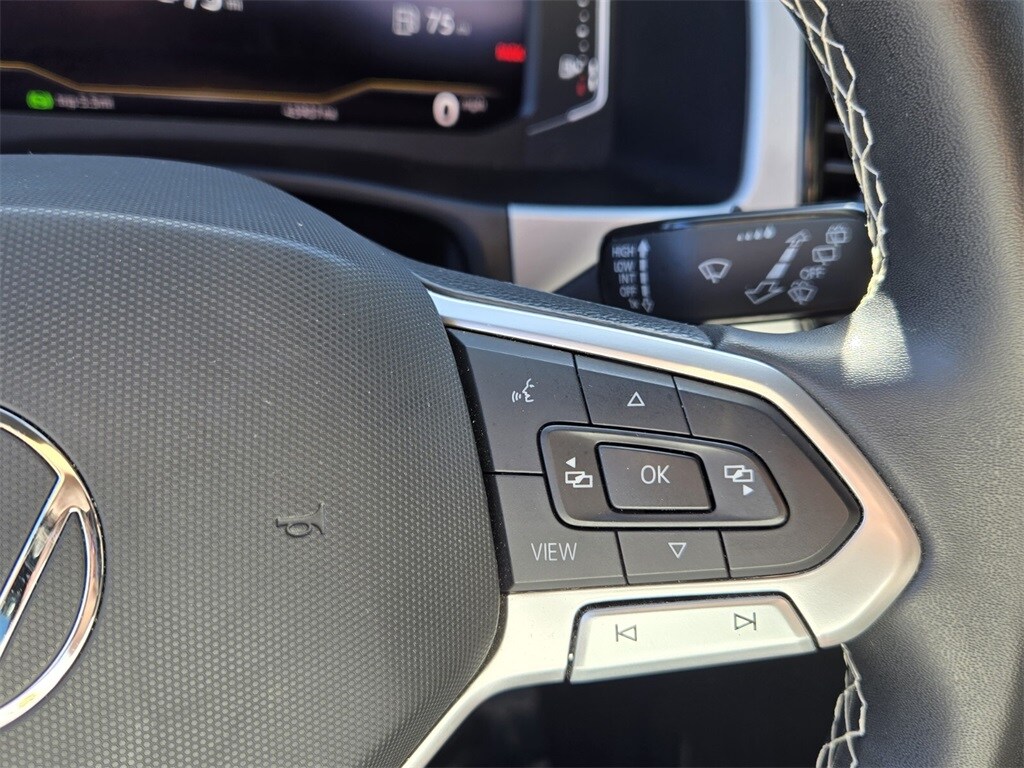 This vehicle comes equipped with 3.60 Axle Ratio, 4-Wheel Disc Brakes, 6 Speakers, ABS brakes, Air Conditioning, Alloy wheels, AM/FM radio: SiriusXM with 360L, Auto-dimming Rear-View mirror, Automatic temperature control, Brake assist, Bumpers: body-color, Compass, Delay-off headlights, Driver door bin, Driver vanity mirror, Dual front impact airbags, Dual front side impact airbags, Electronic Stability Control, Emergency communication system: VW Car-Net Safe & Secure 5-year, Exterior Parking Camera Rear, Four wheel independent suspension, Front anti-roll bar, Front Bucket Seats, Front Center Armrest, Front dual zone A/C, Front fog lights, Front reading lights, Fully automatic headlights, Heated Comfort Front Bucket Seats, Heated door mirrors, Heated front seats, Illuminated entry, Leather Shift Knob, Low tire pressure warning, Occupant sensing airbag, Outside temperature display, Overhead airbag, Overhead console, Panic alarm, Passenger door bin, Passenger vanity mirror, Perforated V-Tex Leatherette Seating Surfaces, Power door mirrors, Power driver seat, Power Liftgate, Power steering, Power windows, Radio data system, Radio: MIB3 Composition Media w/8" Touchscreen, Rain sensing wipers, Rear anti-roll bar, Rear reading lights, Rear seat center armrest, Rear window defroster, Rear window wiper, Remote keyless entry, Security system, Speed control, Speed-sensing steering, Split folding rear seat, Spoiler, Standard Suspension, Steering wheel mounted audio controls, Tachometer, Telescoping steering wheel, Tilt steering wheel, Traction control, Trip computer, Turn signal indicator mirrors, Variably intermittent wipers, and Wheels: 20" x 8J 5-Spoke Silver Painted Alloy .