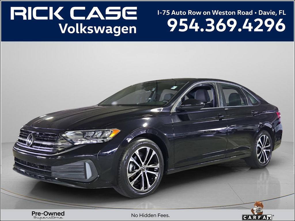 Certified. Deep Black 2023 Volkswagen Jetta 1.5T Sport FWD 8-Speed Automatic with Tiptronic 1.5L I-4 DI DOHC Turbocharged