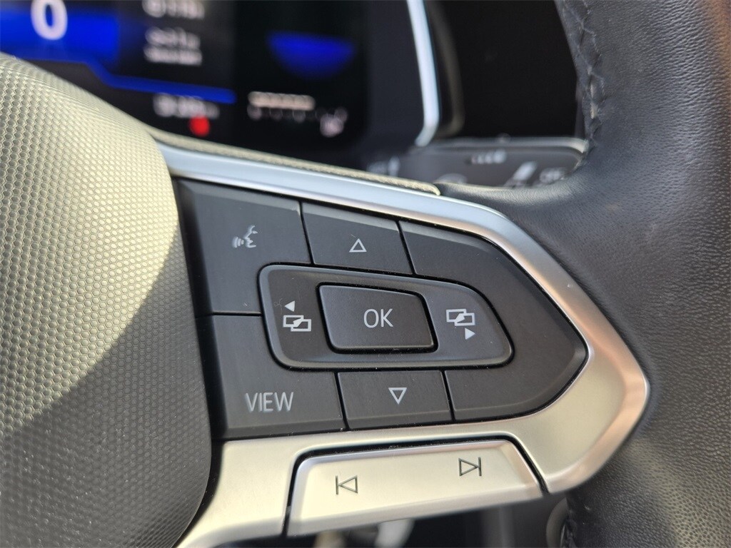 This vehicle comes equipped with Convenience Features (Auto-Dimming Interior Rear-View Mirror, Leather-Wrapped Steering Wheel & Shifter, and Rain-Sensing Automatic Front Wipers), Driver Assistance Package (WYD) (Adaptive Cruise Control, Emergency Assist, Lane Assist (Lane Keeping System), and Travel Assist (Semi-Automated Driving Assistance)), Volkswagen Certified Pre-Owned Certified, Black Cloth, 4 Speakers, 4-Wheel Disc Brakes, ABS brakes, Air Conditioning, Alloy wheels, AM/FM radio, Auto-Dimming Rearview Mirror w/Electronic Compass, Brake assist, Bumpers: body-color, Cloth Seat Trim, Credit - Rear Sensors Removed, Delay-off headlights, Driver door bin, Driver vanity mirror, Dual front impact airbags, Dual front side impact airbags, Electronic Stability Control, Emergency communication system: VW Car-Net Safe & Secure 5-year, Exterior Parking Camera Rear, First Aid Kit, Front anti-roll bar, Front Bucket Seats, Front Center Armrest, Front Comfort Sport Seats, Front wheel independent suspension, Fully automatic headlights, Heated door mirrors, Heavy Duty Trunk Liner w/VW CarGo Blocks, Illuminated entry, Low tire pressure warning, Occupant sensing airbag, Outside temperature display, Overhead airbag, Overhead console, Panic alarm, Passenger door bin, Passenger vanity mirror, Power door mirrors, Power steering, Power windows, Radio data system, Radio: MIB3 Composition Color w/6.5" Touchscreen, Rear anti-roll bar, Rear reading lights, Rear seat center armrest, Rear window defroster, Remote keyless entry, Roadside Assistance Kit, Rubber Monster Mats Kit (Set of 4), Speed control, Speed-sensing steering, Split folding rear seat, Steering wheel mounted audio controls, Tachometer, Telescoping steering wheel, Tilt steering wheel, Traction control, Trip computer, Variably intermittent wipers, and Wheels:
