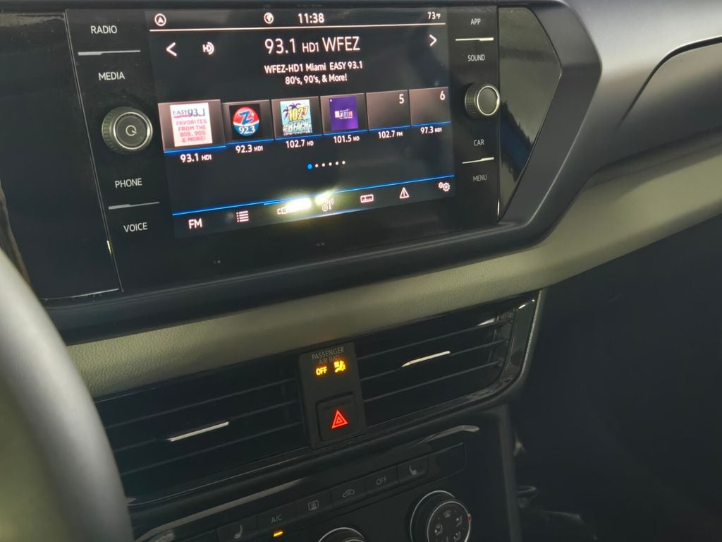 This vehicle comes equipped with Panoramic Sunroof Package, 3.23 Axle Ratio, 4-Wheel Disc Brakes, 6 Speakers, ABS brakes, Active Blind Spot Monitor, Air Conditioning, Alloy wheels, AM/FM radio: SiriusXM with 360L, Auto High-beam Headlights, Auto-Dimming Rear-View Mirror, Brake assist, Bumpers: body-color, CloudTex & Cloth Seating Surfaces, Compass, Delay-off headlights, Driver door bin, Driver vanity mirror, Dual front impact airbags, Dual front side impact airbags, Electronic Stability Control, Emergency communication system: VW Car-Net Safe & Secure 5-year, Exterior Parking Camera Rear, First Aid Kit, Front anti-roll bar, Front Bucket Seats, Front Center Armrest, Front reading lights, Front Strut Rear Torsion Beam Suspension, Front wheel independent suspension, Fully automatic headlights, Heated door mirrors, Heated Front Comfort Seats, Heated front seats, Heated steering wheel, Illuminated entry, Leather Shift Knob, Low tire pressure warning, Occupant sensing airbag, Outside temperature display, Overhead airbag, Overhead console, Panic alarm, Passenger door bin, Passenger vanity mirror, Power door mirrors, Power driver seat, Power steering, Power windows, Radio data system, Radio: MIB3 Composition Media AM/FM/HD, Rain sensing wipers, Rear anti-roll bar, Rear seat center armrest, Rear Sensors Credit, Rear window defroster, Rear window wiper, Remote keyless entry, Roadside Assistance Kit, Roof rack: rails only, Rubber Mats Kit (SNM), Security system, Speed control, Speed-sensing steering, Split folding rear seat, Spoiler, Steering wheel mounted audio controls, Tachometer, Telescoping steering wheel, Tilt steering wheel, Traction control, Trip computer, Variably intermittent wipers, VW Car-Net Safe & Secure 5-Year Plan, and Wheels: 18" 2-Tone Machined Alloy .
