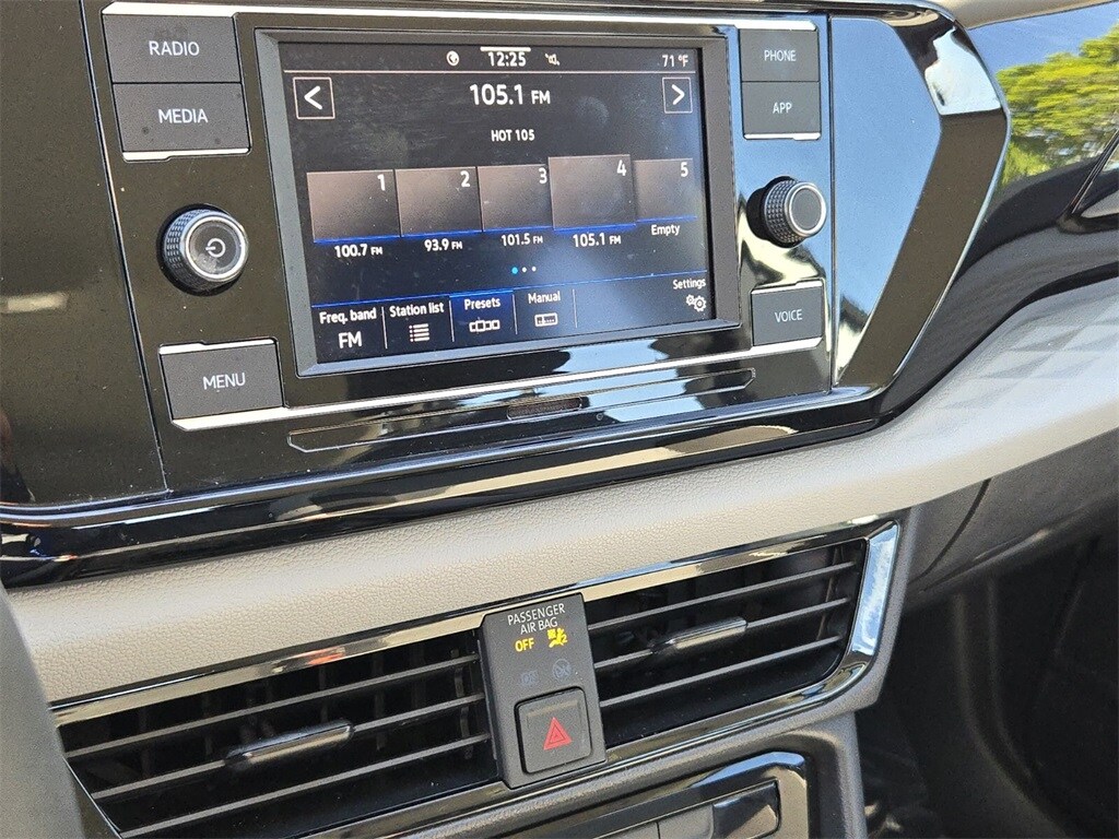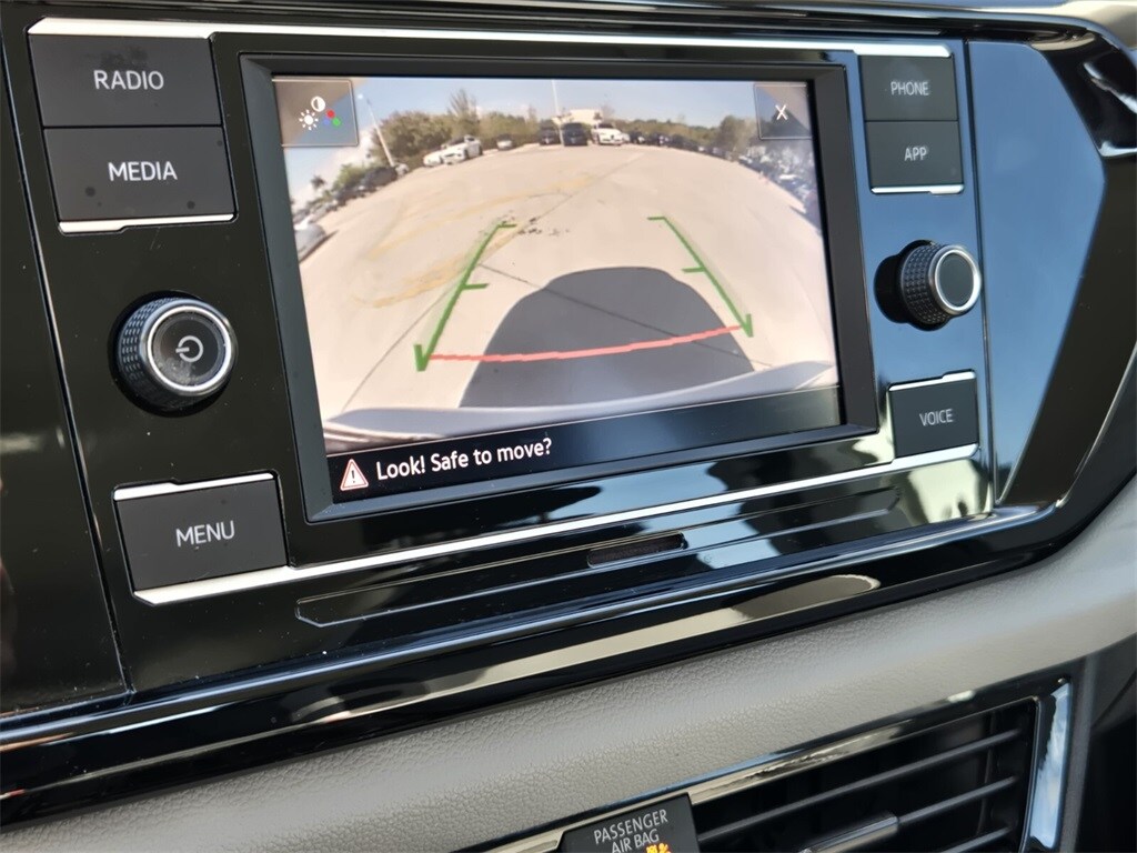 This vehicle comes equipped with Volkswagen Certified Pre-Owned Certified, 3.23 Axle Ratio, 4-Wheel Disc Brakes, 6 Speakers, ABS brakes, Air Conditioning, Alloy wheels, AM/FM radio, Brake assist, Bumpers: body-color, Cloth Seating Surfaces, Compass, Delay-off headlights, Driver door bin, Driver vanity mirror, Dual front impact airbags, Dual front side impact airbags, Electronic Stability Control, Emergency communication system: VW Car-Net Safe & Secure 5-year, Exterior Parking Camera Rear, Front anti-roll bar, Front Bucket Seats, Front Center Armrest, Front reading lights, Front Strut Rear Torsion Beam Suspension, Front wheel independent suspension, Fully automatic headlights, Illuminated entry, Low tire pressure warning, Occupant sensing airbag, Outside temperature display, Overhead airbag, Overhead console, Panic alarm, Passenger door bin, Passenger vanity mirror, Power door mirrors, Power steering, Power windows, Radio data system, Radio: Composition Color AM/FM, Rear anti-roll bar, Rear seat center armrest, Rear window defroster, Rear window wiper, Remote keyless entry, Roof rack: rails only, Speed control, Speed-sensing steering, Split folding rear seat, Spoiler, Steering wheel mounted audio controls, Tachometer, Telescoping steering wheel, Tilt steering wheel, Traction control, Trip computer, Variably intermittent wipers, and Wheels: 17" Silver Painted Alloy .
