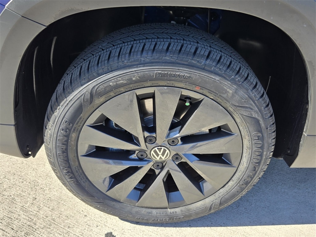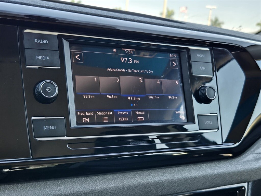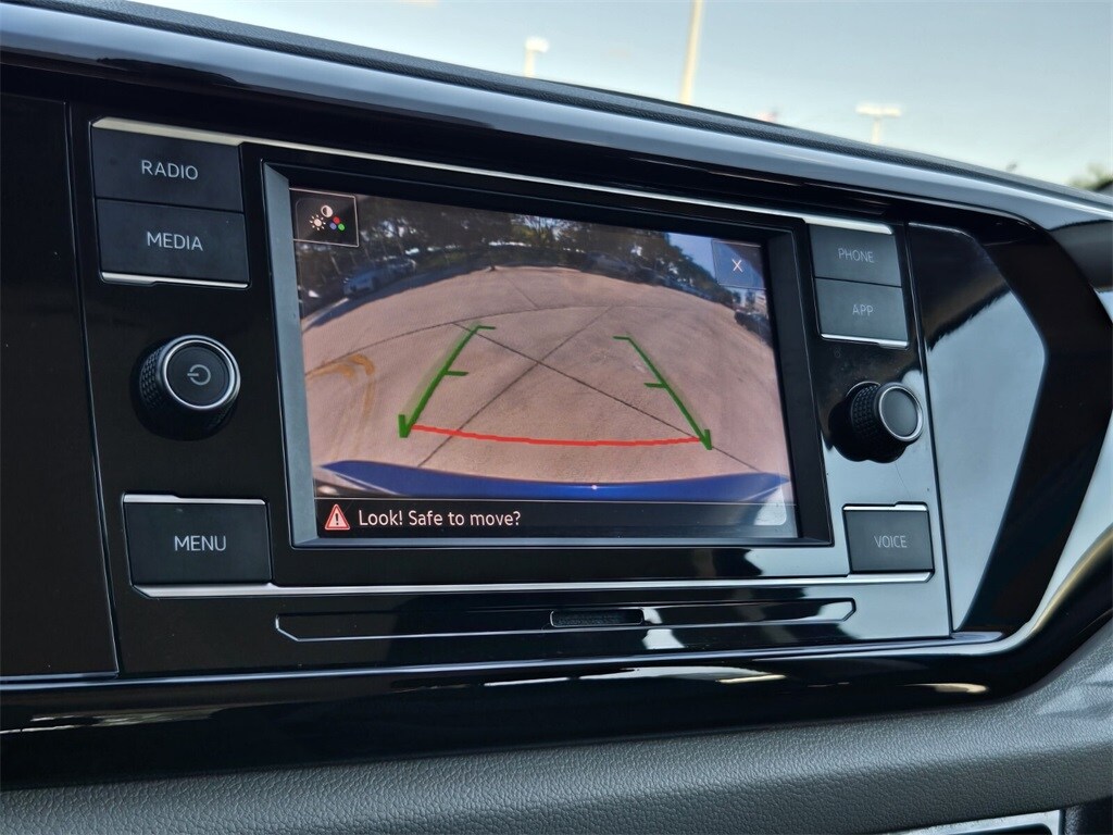 This vehicle comes equipped with Volkswagen Certified Pre-Owned Certified, 3.23 Axle Ratio, 4-Wheel Disc Brakes, 6 Speakers, ABS brakes, Air Conditioning, Alloy wheels, AM/FM radio, Brake assist, Bumpers: body-color, Cloth Seating Surfaces, Compass, Delay-off headlights, Driver door bin, Driver vanity mirror, Dual front impact airbags, Dual front side impact airbags, Electronic Stability Control, Emergency communication system: VW Car-Net Safe & Secure 5-year, Exterior Parking Camera Rear, First Aid Kit, Front anti-roll bar, Front Bucket Seats, Front Center Armrest, Front reading lights, Front Strut Rear Torsion Beam Suspension, Front wheel independent suspension, Fully automatic headlights, Illuminated entry, Low tire pressure warning, Occupant sensing airbag, Outside temperature display, Overhead airbag, Overhead console, Panic alarm, Passenger door bin, Passenger vanity mirror, Power door mirrors, Power steering, Power windows, Radio data system, Radio: Composition Color AM/FM, Rear anti-roll bar, Rear seat center armrest, Rear Sensors Credit, Rear window defroster, Rear window wiper, Remote keyless entry, Roadside Assistance Kit, Roof rack: rails only, Rubber Mats Kit (SNM), Speed control, Speed-sensing steering, Split folding rear seat, Spoiler, Steering wheel mounted audio controls, Tachometer, Telescoping steering wheel, Tilt steering wheel, Traction control, Trip computer, Variably intermittent wipers, VW Car-Net Safe & Secure 5-Year Plan, and Wheels: 17" Silver Painted Alloy .