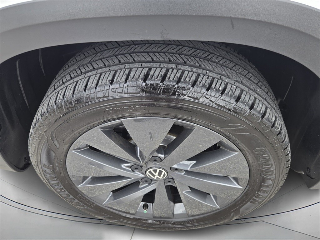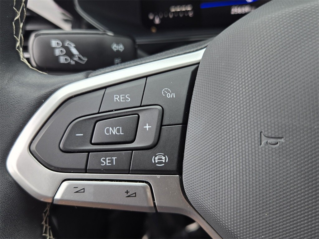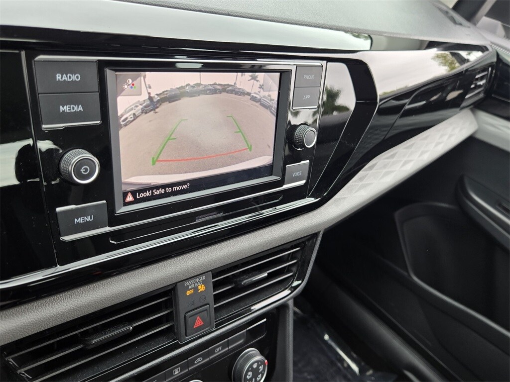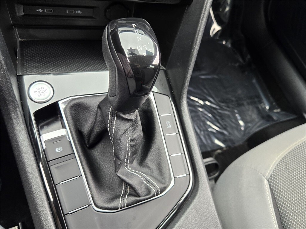 This vehicle comes equipped with 3.23 Axle Ratio, 4-Wheel Disc Brakes, 6 Speakers, ABS brakes, Air Conditioning, Alloy wheels, AM/FM radio, Brake assist, Bumpers: body-color, Cloth Seating Surfaces, Compass, Delay-off headlights, Driver door bin, Driver vanity mirror, Dual front impact airbags, Dual front side impact airbags, Electronic Stability Control, Emergency communication system: VW Car-Net Safe & Secure 5-year, Exterior Parking Camera Rear, First Aid Kit, Front anti-roll bar, Front Bucket Seats, Front Center Armrest, Front reading lights, Front Strut Rear Torsion Beam Suspension, Front wheel independent suspension, Fully automatic headlights, Illuminated entry, Low tire pressure warning, Occupant sensing airbag, Outside temperature display, Overhead airbag, Overhead console, Panic alarm, Passenger door bin, Passenger vanity mirror, Power door mirrors, Power steering, Power windows, Radio data system, Radio: Composition Color AM/FM, Rear anti-roll bar, Rear seat center armrest, Rear Sensors Credit, Rear window defroster, Rear window wiper, Remote keyless entry, Roadside Assistance Kit, Roof rack: rails only, Rubber Mats Kit (SNM), Speed control, Speed-sensing steering, Split folding rear seat, Spoiler, Steering wheel mounted audio controls, Tachometer, Telescoping steering wheel, Tilt steering wheel, Traction control, Trip computer, Variably intermittent wipers, VW Car-Net Safe & Secure 5-Year Plan, and Wheels: 17" Silver Painted Alloy .