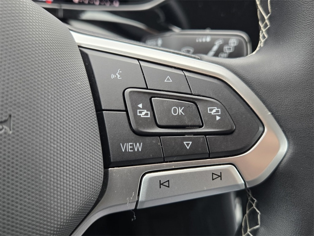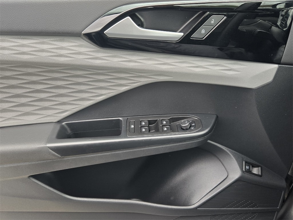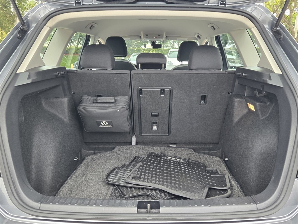 This vehicle comes equipped with Volkswagen Certified Pre-Owned Certified, 3.23 Axle Ratio, 4-Wheel Disc Brakes, 6 Speakers, ABS brakes, Air Conditioning, Alloy wheels, AM/FM radio, Brake assist, Bumpers: body-color, Cloth Seating Surfaces, Compass, Delay-off headlights, Driver door bin, Driver vanity mirror, Dual front impact airbags, Dual front side impact airbags, Electronic Stability Control, Emergency communication system: VW Car-Net Safe & Secure 5-year, Exterior Parking Camera Rear, Front anti-roll bar, Front Bucket Seats, Front Center Armrest, Front reading lights, Front Strut Rear Torsion Beam Suspension, Front wheel independent suspension, Fully automatic headlights, Illuminated entry, Low tire pressure warning, Occupant sensing airbag, Outside temperature display, Overhead airbag, Overhead console, Panic alarm, Passenger door bin, Passenger vanity mirror, Power door mirrors, Power steering, Power windows, Radio data system, Radio: Composition Color AM/FM, Rear anti-roll bar, Rear seat center armrest, Rear window defroster, Rear window wiper, Remote keyless entry, Roof rack: rails only, Speed control, Speed-sensing steering, Split folding rear seat, Spoiler, Steering wheel mounted audio controls, Tachometer, Telescoping steering wheel, Tilt steering wheel, Traction control, Trip computer, Variably intermittent wipers, and Wheels: 17" Silver Painted Alloy .