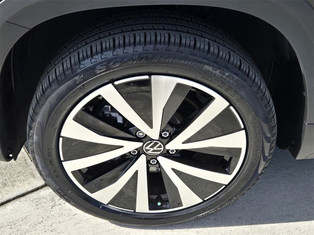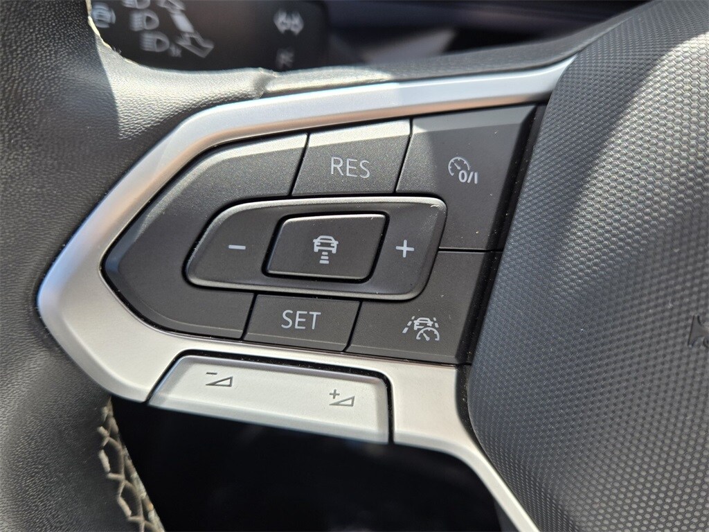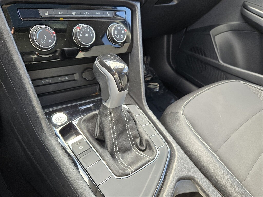 This vehicle comes equipped with 3.23 Axle Ratio, 4-Wheel Disc Brakes, 6 Speakers, ABS brakes, Active Blind Spot Monitor, Air Conditioning, Alloy wheels, AM/FM radio: SiriusXM with 360L, Auto High-beam Headlights, Brake assist, Bumpers: body-color, CloudTex & Cloth Seating Surfaces, Compass, Delay-off headlights, Driver door bin, Driver vanity mirror, Dual front impact airbags, Dual front side impact airbags, Electronic Stability Control, Emergency communication system: VW Car-Net Safe & Secure 5-year, Exterior Parking Camera Rear, Front anti-roll bar, Front Bucket Seats, Front Center Armrest, Front reading lights, Front Strut Rear Torsion Beam Suspension, Front wheel independent suspension, Fully automatic headlights, Heated door mirrors, Heated Front Comfort Seats, Heated front seats, Heated steering wheel, Illuminated entry, Leather Shift Knob, Low tire pressure warning, Occupant sensing airbag, Outside temperature display, Overhead airbag, Overhead console, Panic alarm, Passenger door bin, Passenger vanity mirror, Power door mirrors, Power driver seat, Power steering, Power windows, Radio data system, Radio: MIB3 Composition Media AM/FM/HD, Rain sensing wipers, Rear anti-roll bar, Rear seat center armrest, Rear window defroster, Rear window wiper, Remote keyless entry, Roof rack: rails only, Security system, Speed control, Speed-sensing steering, Split folding rear seat, Spoiler, Steering wheel mounted audio controls, Tachometer, Telescoping steering wheel, Tilt steering wheel, Traction control, Trip computer, Variably intermittent wipers, and Wheels: 18" 2-Tone Machined Alloy .