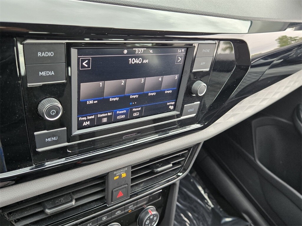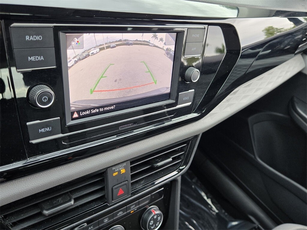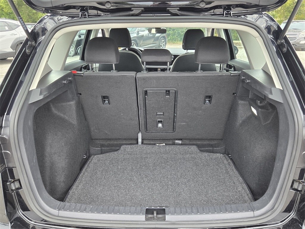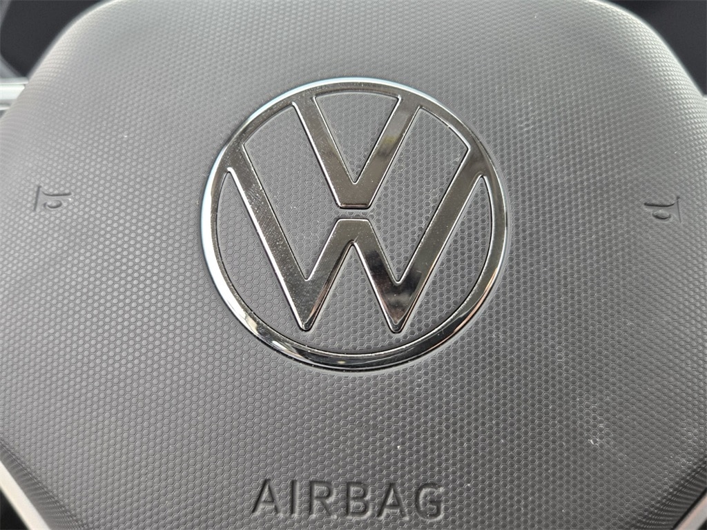 This vehicle comes equipped with Volkswagen Certified Pre-Owned Certified, 3.23 Axle Ratio, 4-Wheel Disc Brakes, 6 Speakers, ABS brakes, Active Blind Spot Monitor, Air Conditioning, Alloy wheels, AM/FM radio, Auto High-beam Headlights, Brake assist, Bumpers: body-color, Cloth Seating Surfaces, Compass, Delay-off headlights, Driver door bin, Driver vanity mirror, Dual front impact airbags, Dual front side impact airbags, Electronic Stability Control, Emergency communication system: VW Car-Net Safe & Secure 5-year, Exterior Parking Camera Rear, Front anti-roll bar, Front Bucket Seats, Front Center Armrest, Front reading lights, Front Strut Rear Torsion Beam Suspension, Front wheel independent suspension, Fully automatic headlights, Heated steering wheel, Illuminated entry, Leather Shift Knob, Low tire pressure warning, Occupant sensing airbag, Outside temperature display, Overhead airbag, Overhead console, Panic alarm, Passenger door bin, Passenger vanity mirror, Power door mirrors, Power steering, Power windows, Radio data system, Radio: Composition Color AM/FM, Rain sensing wipers, Rear anti-roll bar, Rear seat center armrest, Rear window defroster, Rear window wiper, Remote keyless entry, Roof rack: rails only, Rubber Mats Kit (SNM), Speed control, Speed-sensing steering, Split folding rear seat, Spoiler, Steering wheel mounted audio controls, Tachometer, Telescoping steering wheel, Tilt steering wheel, Traction control, Trip computer, Variably intermittent wipers, and Wheels: 17" Silver Painted Alloy .