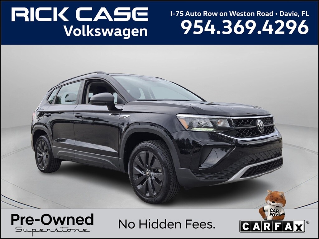 Certified. Deep Black 2024 Volkswagen Taos 1.5T S FWD 8-Speed Automatic with Tiptronic 1.5L I4 Turbocharged DOHC 16V LEV3-SULEV30 158hp