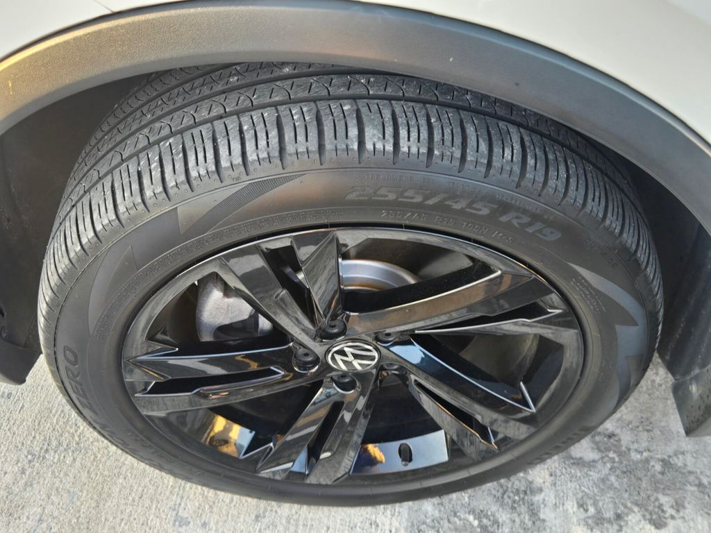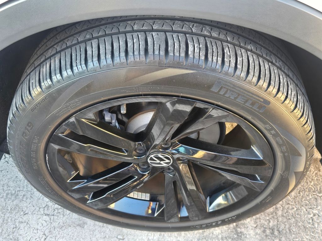 This vehicle comes equipped with 3.33 Axle Ratio, 3rd row seats: bench, 4-Wheel Disc Brakes, 4-Wheel Independent Suspension, 6 Speakers, ABS brakes, Air Conditioning, Alloy wheels, AM/FM radio: SiriusXM with 360L, Auto-dimming Rear-View mirror, Automatic temperature control, Brake assist, Bumpers: body-color, Compass, Delay-off headlights, Driver door bin, Driver vanity mirror, Dual front impact airbags, Dual front side impact airbags, Electronic Stability Control, Emergency communication system: VW Car-Net Safe & Secure 5-year, Exterior Parking Camera Rear, Four wheel independent suspension, Front anti-roll bar, Front Bucket Seats, Front Center Armrest, Front dual zone A/C, Front reading lights, Fully automatic headlights, Heated door mirrors, Heated Front Seats, Heated front seats, Illuminated entry, Leather Shift Knob, Leather steering wheel, Low tire pressure warning, Occupant sensing airbag, Outside temperature display, Overhead airbag, Overhead console, Panic alarm, Passenger door bin, Passenger vanity mirror, Perforated V-Tex Leatherette Seating Surfaces, Power door mirrors, Power driver seat, Power Liftgate, Power moonroof, Power steering, Power windows, Radio data system, Radio: MIB3 Composition Media AM/FM/HD, Rain sensing wipers, Rear anti-roll bar, Rear reading lights, Rear seat center armrest, Rear window defroster, Rear window wiper, Remote keyless entry, Security system, Speed control, Speed-sensing steering, Split folding rear seat, Spoiler, Sport steering wheel, Steering wheel mounted audio controls, Tachometer, Telescoping steering wheel, Tilt steering wheel, Traction control, Trip computer, Turn signal indicator mirrors, Variably intermittent wipers, and Wheels: 19" Black Painted Twin 5-Spoke Alloy .