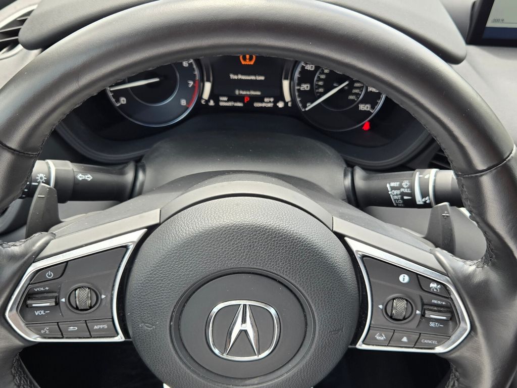 This vehicle comes equipped with 13 Speakers, 4-Wheel Disc Brakes, ABS brakes, Acura Navigation System w/3D View, Air Conditioning, Alloy wheels, AM/FM radio: SiriusXM, Anti-whiplash front head restraints, Apple CarPlay/Android Auto, Auto High-beam Headlights, Auto-dimming Rear-View mirror, Automatic temperature control, Brake assist, Bumpers: body-color, Compass, Delay-off headlights, Driver door bin, Driver vanity mirror, Dual front impact airbags, Dual front side impact airbags, Electronic Stability Control, Emergency communication system: AcuraLink, Exterior Parking Camera Rear, Four wheel independent suspension, Front anti-roll bar, Front Bucket Seats, Front Center Armrest w/Storage, Front dual zone A/C, Front reading lights, Garage door transmitter: HomeLink, Heated door mirrors, Heated front seats, Heated Front Sport Seats, HVAC memory, Illuminated entry, Knee airbag, Lane departure: Lane Keeping Assist System (LKAS) active, Leather steering wheel, Low tire pressure warning, Memory seat, Navigation system: Acura Navigation System with 3D View, Occupant sensing airbag, Outside temperature display, Overhead airbag, Overhead console, Panic alarm, Passenger door bin, Passenger vanity mirror, Power door mirrors, Power driver seat, Power moonroof, Power passenger seat, Power steering, Power windows, Prem Perforated Milano Leather-Trimmed Interior, Premium audio system: Acura/ELS Surround, Radio data system, Radio: ELS Studio Premium Audio System, Rear anti-roll bar, Rear reading lights, Rear seat center armrest, Rear window defroster, Remote keyless entry, Security system, Speed control, Speed-sensing steering, Speed-Sensitive Wipers, Split folding rear seat, Steering wheel mounted audio controls, Tachometer, Telescoping steering wheel, Tilt steering wheel, Traction control, Trip computer, Turn signal indicator mirrors, Variably intermittent wipers, and Wheels: 19" x 8.5" Sparkle Silver Met Interwoven .
