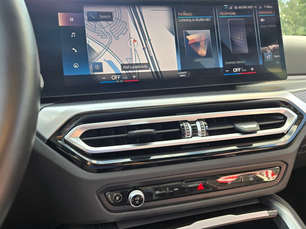 This vehicle comes equipped with Connected Package Pro, M Sport Package Pro, Shadowline Package (Black Mirror Caps, Extended Shadowline Trim, M Shadowline Lights, and M Sport Brakes w/Red Calipers), 10 Speakers, 4-Wheel Disc Brakes, ABS brakes, Air Conditioning, Alloy wheels, AM/FM Radio, AM/FM radio: SiriusXM with 360L, Apple CarPlay & Android Auto Compatibility, Auto High-beam Headlights, Auto-dimming door mirrors, Auto-dimming Rear-View mirror, Automatic temperature control, BMW Assist eCall, BMW TeleServices, Brake assist, Bumpers: body-color, Compass, ConnectedDrive Services, Delay-off headlights, Driver door bin, Driver vanity mirror, Dual front impact airbags, Dual front side impact airbags, Electronic Stability Control, Emergency communication system: BMW Assist eCall, Exterior Parking Camera Rear, Four wheel independent suspension, Front anti-roll bar, Front Bucket Seats, Front Center Armrest, Front dual zone A/C, Front reading lights, Fully automatic headlights, Garage door transmitter, Heated door mirrors, Hi-Fi Sound System, Illuminated entry, Knee airbag, Leather steering wheel, Low tire pressure warning, Lumbar Support, Memory seat, Navigation, Navigation System, Occupant sensing airbag, Outside temperature display, Overhead airbag, Overhead console, Panic alarm, Passenger door bin, Passenger vanity mirror, Perforated SensaTec Upholstery, Power door mirrors, Power driver seat, Power Front Seats, Power moonroof, Power passenger seat, Power steering, Power windows, Radio data system, Rain sensing wipers, Rear anti-roll bar, Rear reading lights, Rear seat center armrest, Rear window defroster, Remote keyless entry, Security system, SiriusXM w/360L, Speed control, Speed-sensing steering, Speed-Sensitive Wipers, Split folding rear seat, Spoiler, Sport Seats, Sport steering wheel, Steering wheel mounted audio controls, Tachometer, Telescoping steering wheel, Tilt steering wheel, Traction control, Trip computer, Turn signal indicator mirrors, Variably intermittent wipers, Wheels: 18" x 7.5 (Style 848M), Widescreen Display, and Wireless Device Charging .