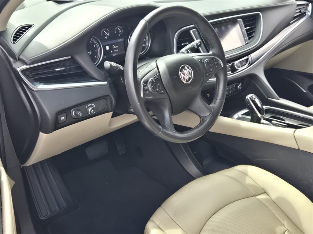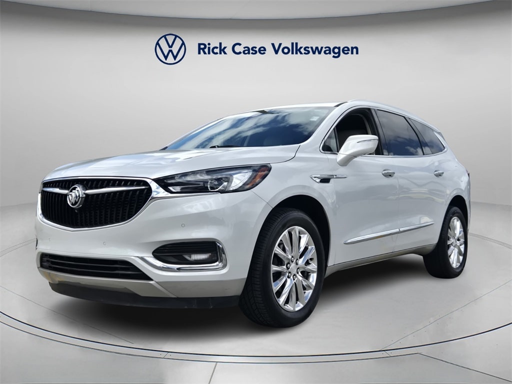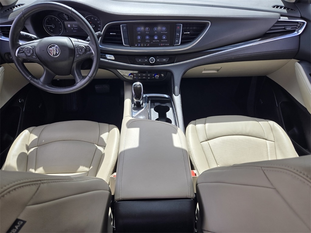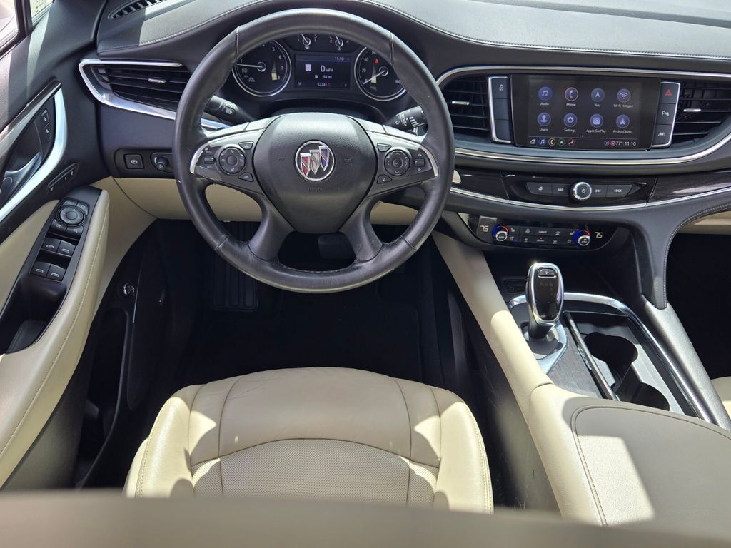 This vehicle comes equipped with Buick Interior Protection Package (LPO) (3rd Row All-Weather Floor Mats, All-Weather Cargo Mat (LPO), and All-Weather Floor Mats), Cargo Package (LPO) (Cargo Security Shade (LPO) and Vertical Cargo Net (LPO)), Memory Package, Preferred Equipment Group 1SN, Premium Package (120-Volt Power Outlet, 3rd Row 60/40 Power Fold Split-Bench, Automatic Heated Steering Wheel, HD Radio, Heated 2nd Row Outboard Seats, Heated Driver & Front Passenger Seats, Outside Heated Power-Adjustable Mirrors, Power Tilt & Telescopic Steering Column, and Ventilated Driver & Front Passenger Seats), Surround & Sites Package (20" Polished Aluminum Wheels, Bose Performance-Enhanced 10-Speaker System, HD Surround Vision, Inside Rearview Mirror w/Full Camera Display, Radio: Buick Infotainment Sys AM/FM Stereo w/Nav, and SiriusXM w/360L), FWD, 10 Speakers, 18" Painted Aluminum Wheels, 3.49 Axle Ratio, 3rd row seats: split-bench, 4-Wheel Disc Brakes, 7-Passenger Seating, ABS brakes, Air Conditioning, Alloy wheels, AM/FM radio: SiriusXM with 360L, Apple CarPlay/Android Auto, Audio memory, Auto High-beam Headlights, Auto tilt-away steering wheel, Auto-dimming door mirrors, Auto-dimming Rear-View mirror, Automatic temperature control, Brake assist, Bumpers: body-color, Compass, Delay-off headlights, Driver 4-Way Power Lumbar Seat Adjuster, Driver door bin, Driver vanity mirror, Dual front impact airbags, Dual front side impact airbags, Electronic Stability Control, Emergency communication system: OnStar and Buick connected services capable, Four wheel independent suspension, Front anti-roll bar, Front Bucket Seats, Front Center Armrest, Front dual zone A/C, Front Passenger 4-Way Power Lumbar Seat Adjuster, Front reading lights, Fully automatic headlights, Garage door transmitter, Heated door mirrors, Heated front seats, Heated rear seats, Heated steering wheel, Illuminated entry, Leather steering wheel, Low tire pressure warning, Memory seat, Navigation System, Occupant sensing airbag, Outside temperature display, Overhead airbag, Overhead console, Panic alarm, Passenger door bin, Passenger vanity mirror, Perforated Leather-Appointed Seat Trim, Power door mirrors, Power driver seat, Power Liftgate, Power passenger seat, Power steering, Power windows, Premium audio system: Buick Infotainment System, Radio data system, Radio: Buick Infotainment System AM/FM Stereo, Rear air conditioning, Rear anti-roll bar, Rear reading lights, Rear Seat Infotainment System w/DVD Player (LPO), Rear window defroster,