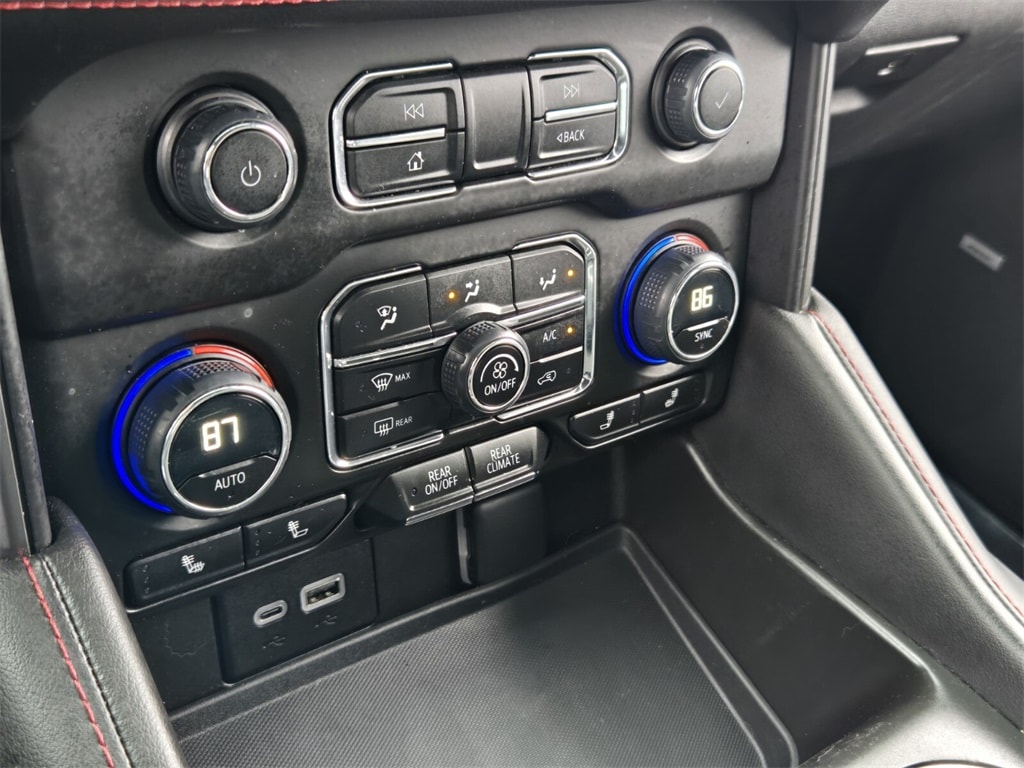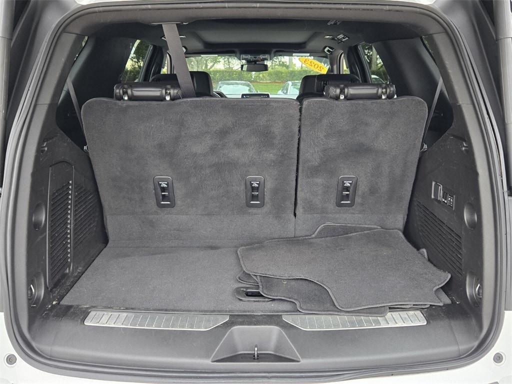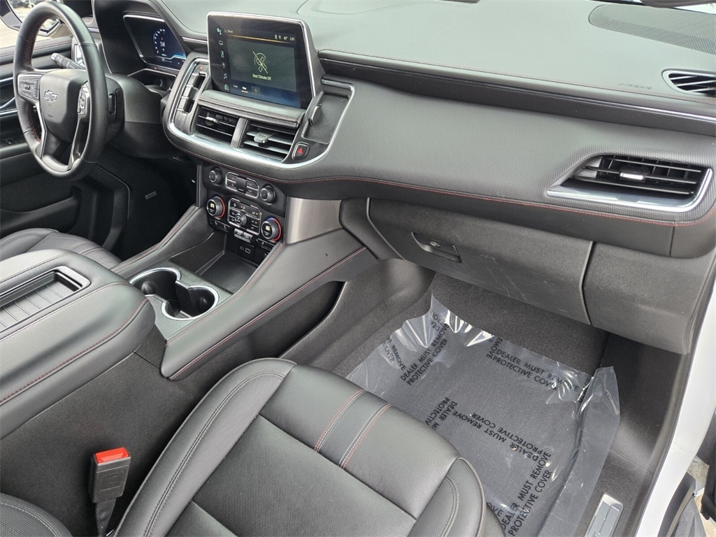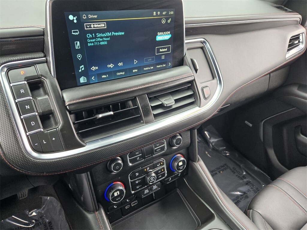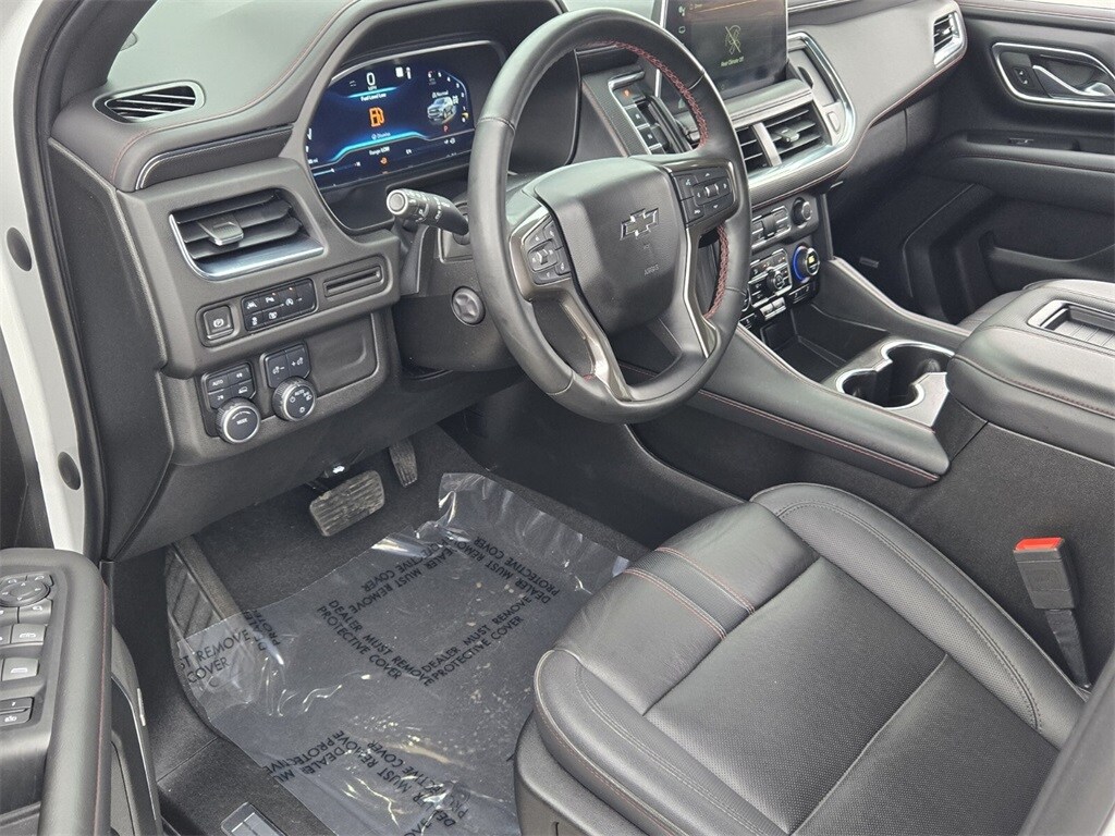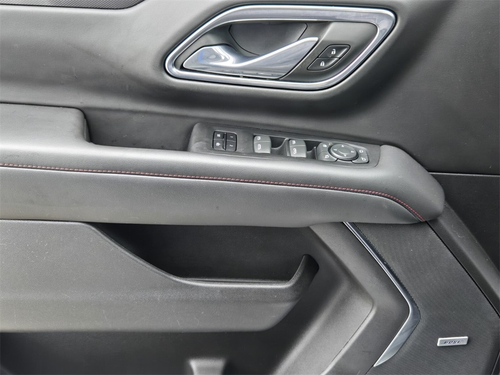 This vehicle comes equipped with Driver Alert Package (Lane Change Alert w/Side Blind Zone Alert and Rear Cross Traffic Alert), License Plate Front Mounting Package, Luxury Package (2nd Row Pwr Release 60/40 Split-Folding Bench Seat, 3rd Row 60/40 Power-Folding Split-Bench Seat, Adaptive Cruise Control, Enhanced Automatic Emergency Braking, HD Surround Vision, Heated 2nd Row Outboard Seats, Heated Steering Wheel, Memory Settings, Outside Heated Power-Adjustable Mirrors, Power Tilt & Telescopic Steering Column, and Rear Pedestrian Alert), Preferred Equipment Group 1SP (1st & 2nd Row Color-Keyed Carpeted Floor Mats, Auto-Dimming Inside Rear-View Mirror, Bose 9-Speaker Stereo Audio System Feature, Bright Front & Rear Door Sill Plates, Color-Keyed Carpeting Floor Covering, Driver & Front Outboard Passenger Airbags, Enhanced Driver Information Center, Floor Console w/Storage Area, Hands-Free Rear Power Programmable Liftgate, Infotainment Display, LED Daytime Running Lamps, Memory Settings for Driver, Remote Start, SiriusXM Radio w/360L, Universal Home Remote, Wireless Charging, and Wrapped Steering Wheel), 4WD, Jet Black/Victory Red Leather, 10-Way Power Driver & Passenger Seat Adjusters, 3.23 Rear Axle Ratio, 3rd row seats: split-bench, 4-Wheel Disc Brakes, 9 Speakers, ABS brakes, Air Conditioning, Alloy wheels, AM/FM radio: SiriusXM with 360L, Apple CarPlay/Android Auto, Auto High-beam Headlights, Auto-dimming Rear-View mirror, Automatic temperature control, Brake assist, Bumpers: body-color, Compass, Delay-off headlights, Driver door bin, Driver vanity mirror, Dual front impact airbags, Dual front side impact airbags, Dual-Pane Power Panoramic Sunroof, Electronic Stability Control, Emergency communication system: OnStar and Chevrolet connected services capable, Four wheel independent suspension, Front anti-roll bar, Front Bucket Seats, Front Center Armrest, Front dual zone A/C, Front High-Back Reclining Bucket Seats, Front reading lights, Fully automatic headlights, Garage door transmitter, Heated door mirrors, Heated Driver & Front Passenger Seats, Heated front seats, Illuminated entry, Low tire pressure warning, Memory seat, Navigation System, Not Equipped w/Wheel Locks (LPO), Occupant sensing airbag, Outside temperature display, Overhead airbag, Overhead console, Panic alarm, Passenger door bin, Passenger vanity mirror, Perforated Leather Seat Trim, Power door mirrors, Power driver seat, Power Liftgate, Power passenger seat, Power Release 2nd Row Bucket Seats, Po