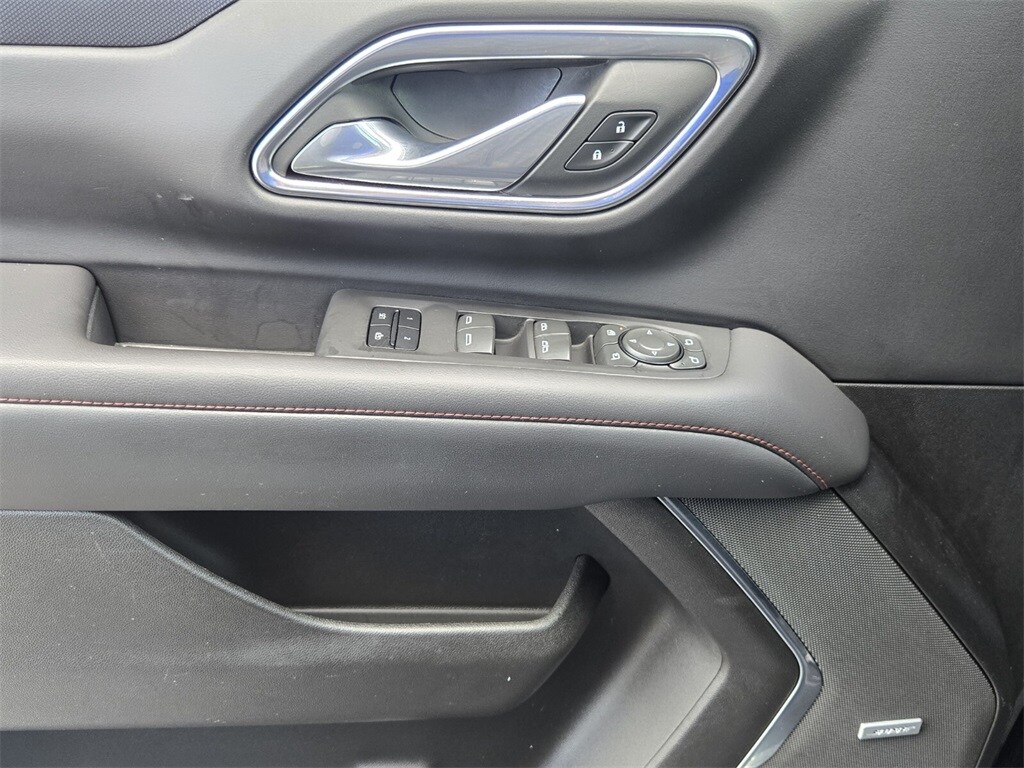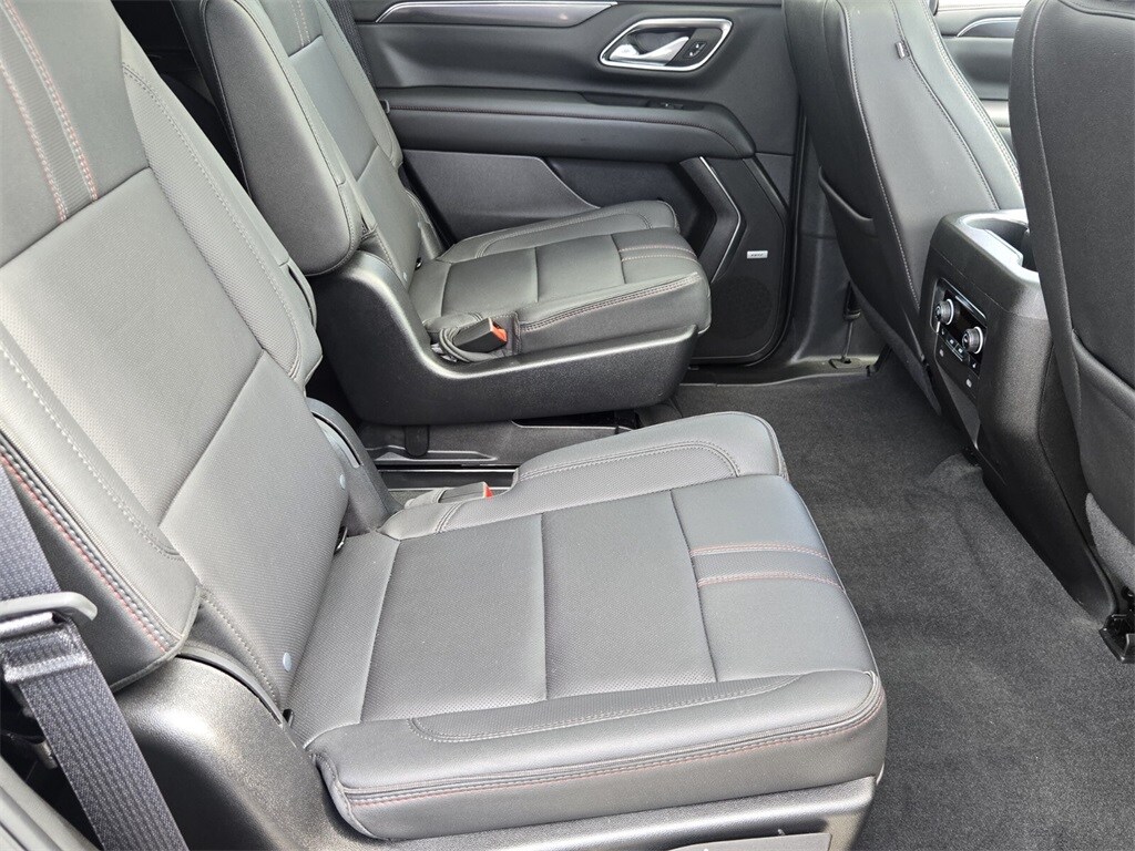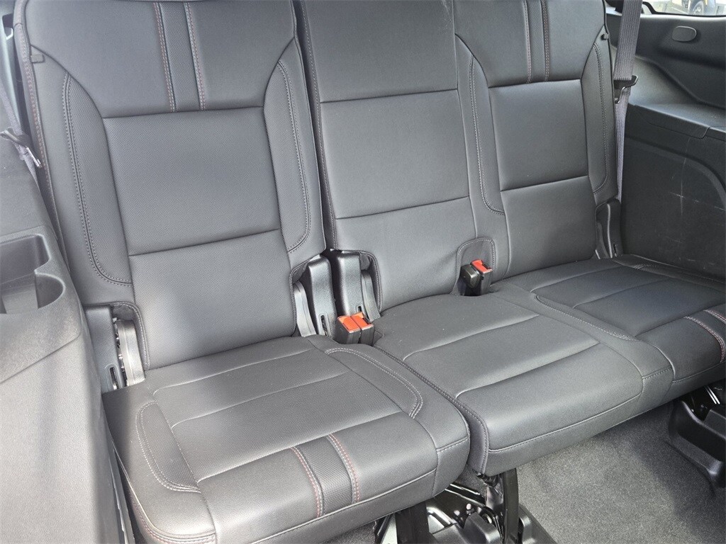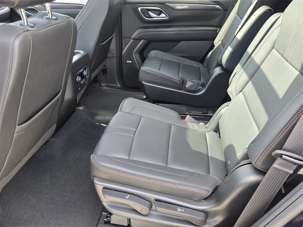 This vehicle comes equipped with Advanced Trailering Package (Hitch Guidance w/Hitch View, Integrated Trailer Brake Controller, and Smart Trailer Integration Indicator), Driver Alert Package (Lane Change Alert w/Side Blind Zone Alert and Rear Cross Traffic Alert), Luxury Package (2nd Row Pwr Release 60/40 Split-Folding Bench Seat, 3rd Row 60/40 Power-Folding Split-Bench Seat, Adaptive Cruise Control, Enhanced Automatic Emergency Braking, HD Surround Vision, Heated 2nd Row Outboard Seats, Heated Steering Wheel, Memory Settings, Outside Heated Power-Adjustable Mirrors, Power Tilt & Telescopic Steering Column, and Rear Pedestrian Alert), Max Trailering Package (Extra Capacity Cooling System), Preferred Equipment Group 1SP (1st & 2nd Row Color-Keyed Carpeted Floor Mats, Auto-Dimming Inside Rear-View Mirror, Bose 9-Speaker Stereo Audio System Feature, Bright Front & Rear Door Sill Plates, Color-Keyed Carpeting Floor Covering, Driver & Front Outboard Passenger Airbags, Enhanced Driver Information Center, Floor Console w/Storage Area, Hands-Free Rear Power Programmable Liftgate, Infotainment Display, LED Daytime Running Lamps, Memory Settings for Driver, Remote Start, SiriusXM Radio w/360L, Universal Home Remote, Wireless Charging, and Wrapped Steering Wheel), Jet Black/Victory Red Leather, 10-Way Power Driver & Passenger Seat Adjusters, 3.23 Rear Axle Ratio, 3rd row seats: split-bench, 4-Wheel Disc Brakes, 9 Speakers, ABS brakes, Air Conditioning, Alloy wheels, AM/FM radio: SiriusXM with 360L, Apple CarPlay/Android Auto, Auto High-beam Headlights, Auto-dimming Rear-View mirror, Automatic temperature control, Brake assist, Bumpers: body-color, Compass, Delay-off headlights, Driver door bin, Driver vanity mirror, Dual front impact airbags, Dual front side impact airbags, Dual-Pane Power Panoramic Sunroof, Electronic Stability Control, Emergency communication system: OnStar and Chevrolet connected services capable, Four wheel independent suspension, Front anti-roll bar, Front Bucket Seats, Front Center Armrest, Front dual zone A/C, Front High-Back Reclining Bucket Seats, Front reading lights, Fully automatic headlights, Garage door transmitter, Heated door mirrors, Heated Driver & Front Passenger Seats, Heated front seats, Illuminated entry, Low tire pressure warning, Memory seat, Navigation System, Not Equipped w/Wheel Locks (LPO), Occupant sensing airbag, Outside temperature display, Overhead airbag, Overhead console, Panic alarm, Passenger door bin