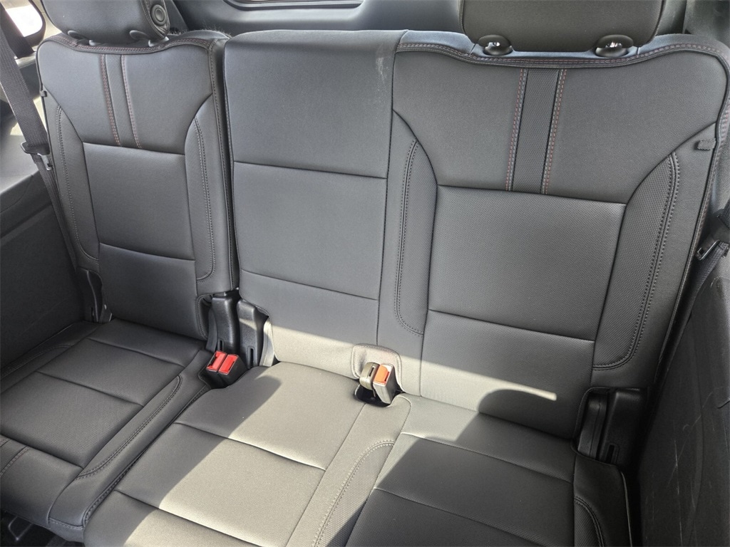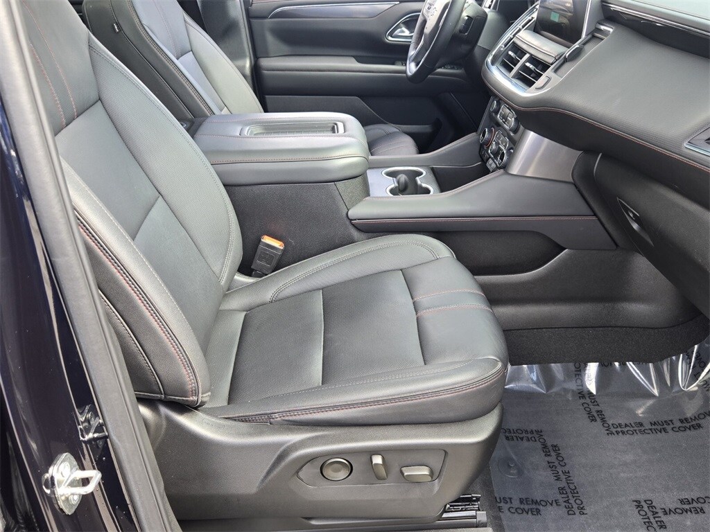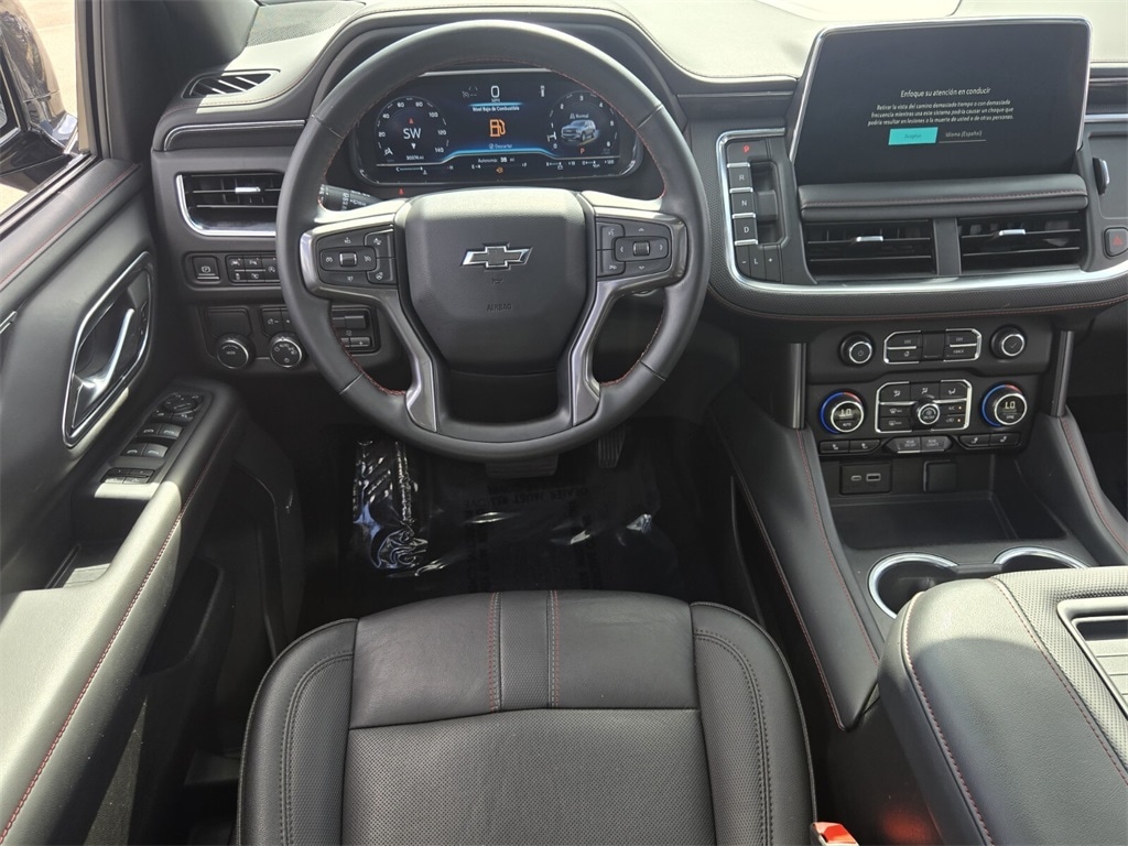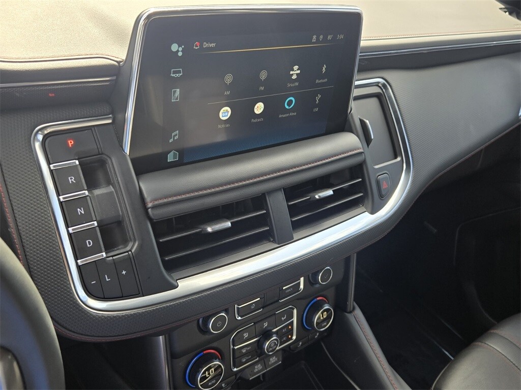 This vehicle comes equipped with Advanced Trailering Package (Hitch Guidance w/Hitch View, Integrated Trailer Brake Controller, and Smart Trailer Integration Indicator), Driver Alert Package (Lane Change Alert w/Side Blind Zone Alert and Rear Cross Traffic Alert), Luxury Package (2nd Row Pwr Release 60/40 Split-Folding Bench Seat, 3rd Row 60/40 Power-Folding Split-Bench Seat, Adaptive Cruise Control, Enhanced Automatic Emergency Braking, HD Surround Vision, Heated 2nd Row Outboard Seats, Heated Steering Wheel, Memory Settings, Outside Heated Power-Adjustable Mirrors, Power Tilt & Telescopic Steering Column, and Rear Pedestrian Alert), Max Trailering Package (Extra Capacity Cooling System), Preferred Equipment Group 1SP (1st & 2nd Row Color-Keyed Carpeted Floor Mats, Auto-Dimming Inside Rear-View Mirror, Bose 9-Speaker Stereo Audio System Feature, Bright Front & Rear Door Sill Plates, Color-Keyed Carpeting Floor Covering, Driver & Front Outboard Passenger Airbags, Enhanced Driver Information Center, Floor Console w/Storage Area, Hands-Free Rear Power Programmable Liftgate, Infotainment Display, LED Daytime Running Lamps, Memory Settings for Driver, Remote Start, SiriusXM Radio w/360L, Universal Home Remote, Wireless Charging, and Wrapped Steering Wheel), Jet Black/Victory Red Leather, 10-Way Power Driver & Passenger Seat Adjusters, 3.23 Rear Axle Ratio, 3rd row seats: split-bench, 4-Wheel Disc Brakes, 9 Speakers, ABS brakes, Air Conditioning, Alloy wheels, AM/FM radio: SiriusXM with 360L, Apple CarPlay/Android Auto, Auto High-beam Headlights, Auto-dimming Rear-View mirror, Automatic temperature control, Brake assist, Bumpers: body-color, Compass, Delay-off headlights, Driver door bin, Driver vanity mirror, Dual front impact airbags, Dual front side impact airbags, Dual-Pane Power Panoramic Sunroof, Electronic Stability Control, Emergency communication system: OnStar and Chevrolet connected services capable, Four wheel independent suspension, Front anti-roll bar, Front Bucket Seats, Front Center Armrest, Front dual zone A/C, Front High-Back Reclining Bucket Seats, Front reading lights, Fully automatic headlights, Garage door transmitter, Heated door mirrors, Heated Driver & Front Passenger Seats, Heated front seats, Illuminated entry, Low tire pressure warning, Memory seat, Navigation System, Not Equipped w/Wheel Locks (LPO), Occupant sensing airbag, Outside temperature display, Overhead airbag, Overhead console, Panic alarm, Passenger door bin