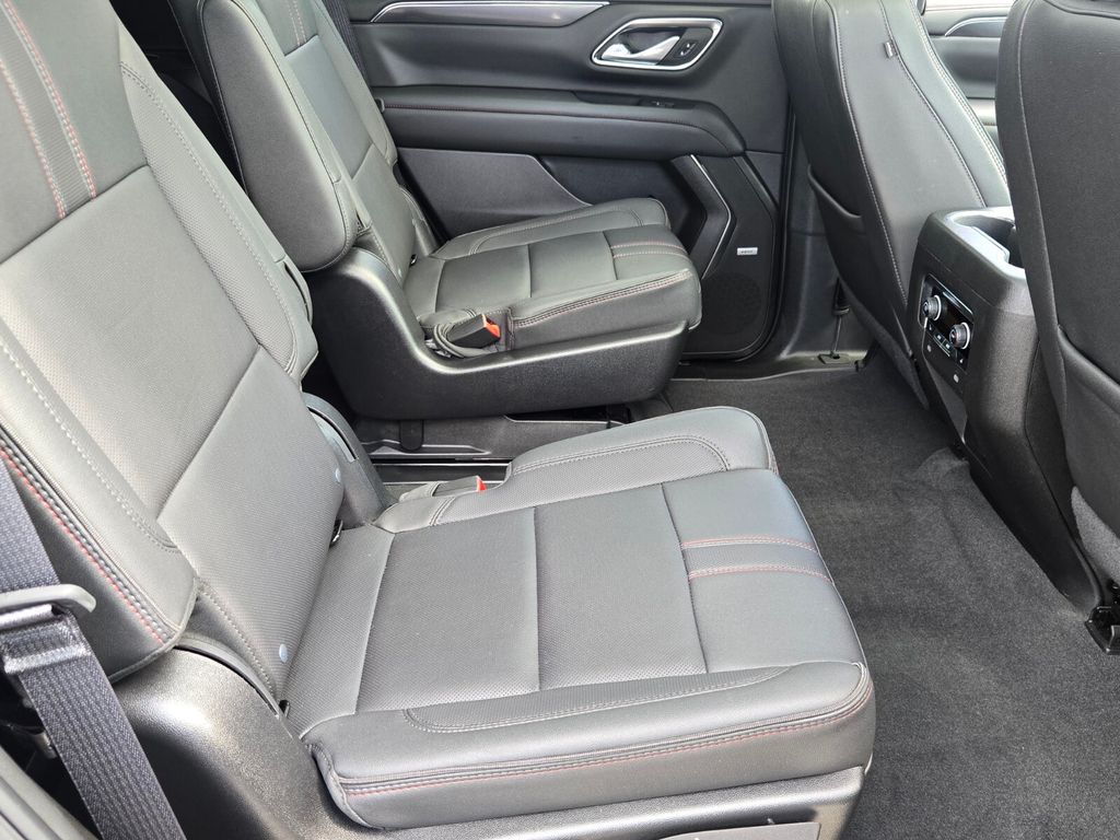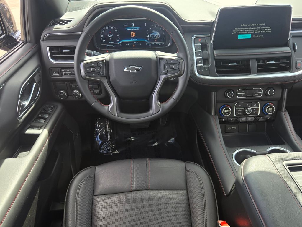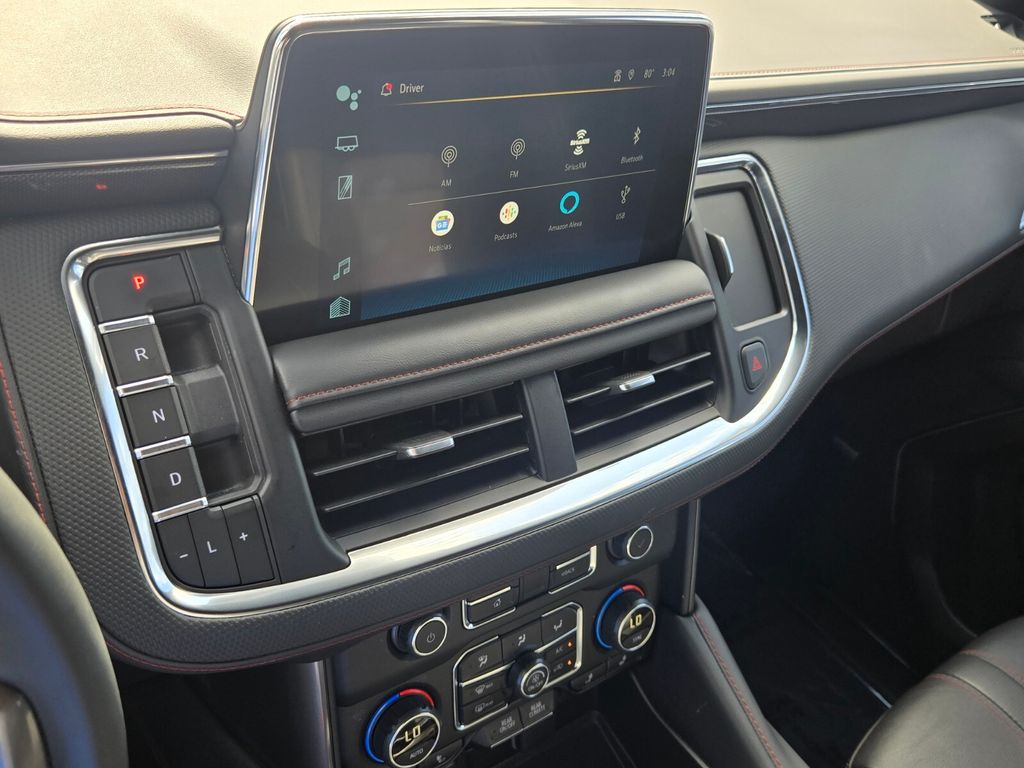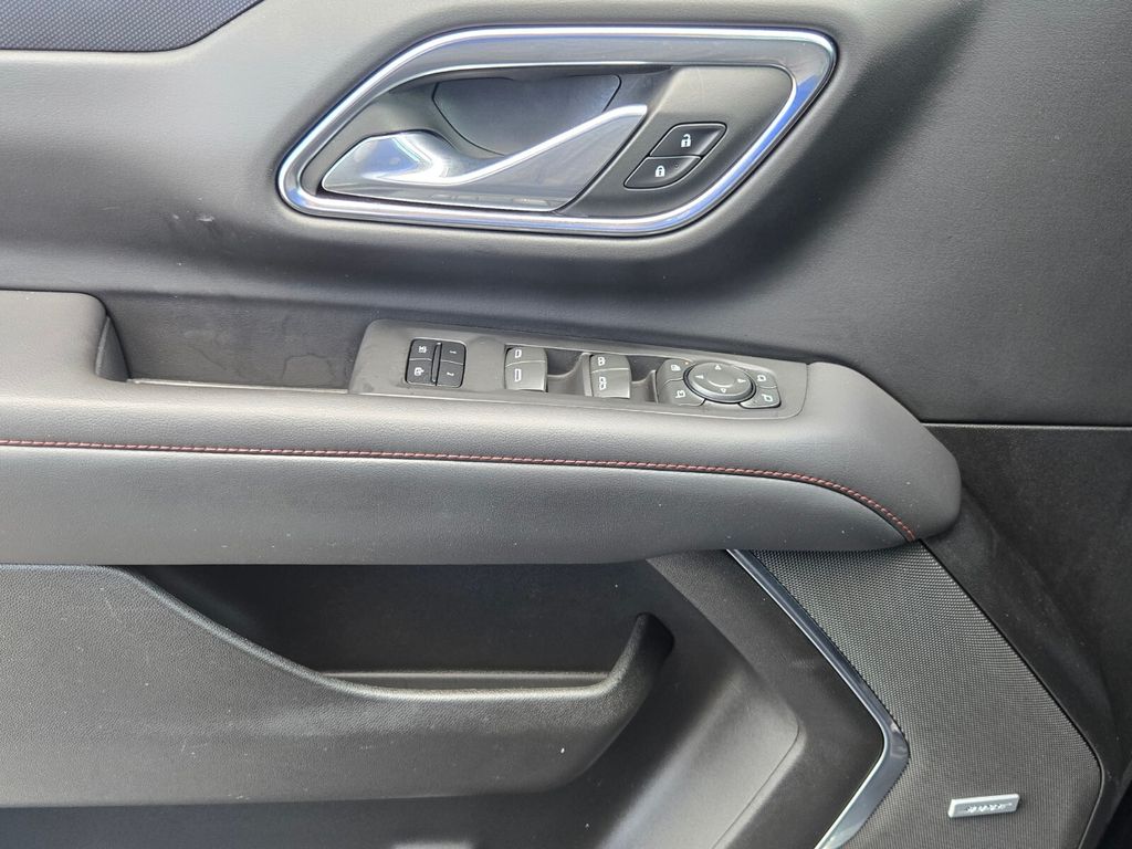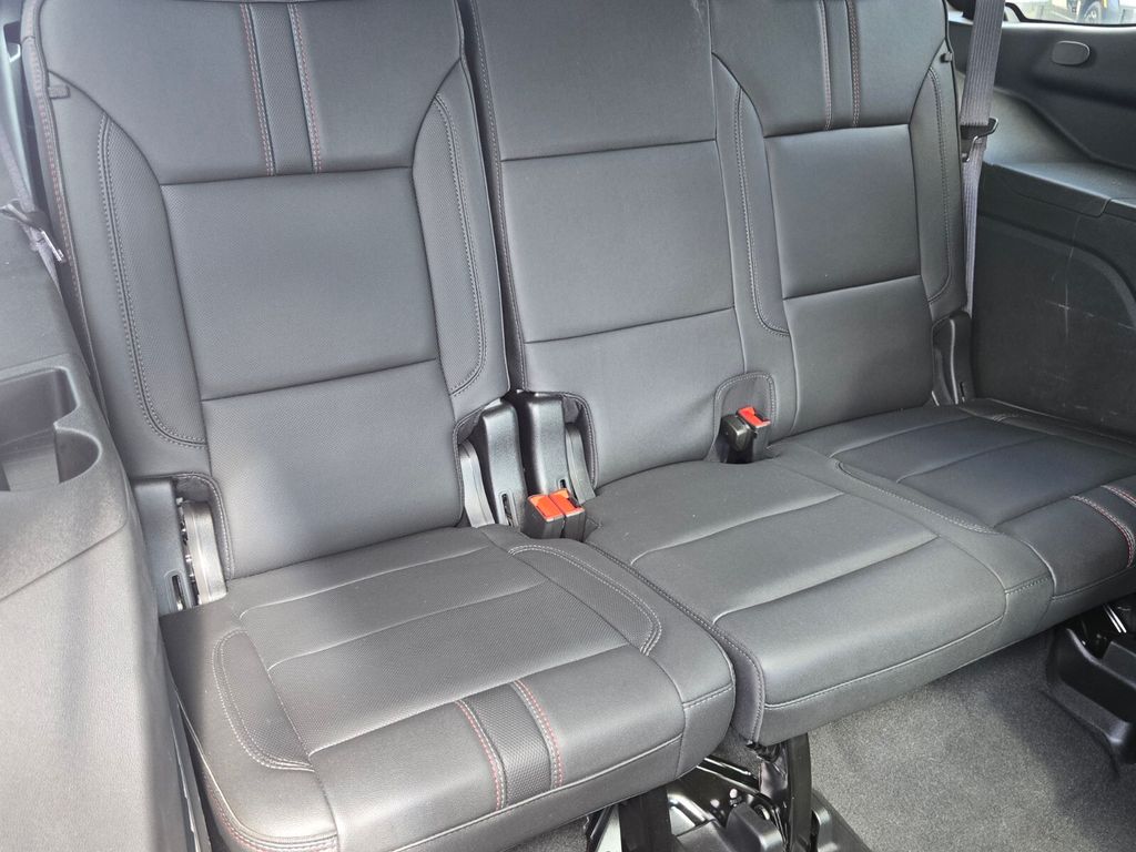 This vehicle comes equipped with Advanced Trailering Package (Hitch Guidance w/Hitch View, Integrated Trailer Brake Controller, and Smart Trailer Integration Indicator), Driver Alert Package (Lane Change Alert w/Side Blind Zone Alert and Rear Cross Traffic Alert), Luxury Package (2nd Row Pwr Release 60/40 Split-Folding Bench Seat, 3rd Row 60/40 Power-Folding Split-Bench Seat, Adaptive Cruise Control, Enhanced Automatic Emergency Braking, HD Surround Vision, Heated 2nd Row Outboard Seats, Heated Steering Wheel, Memory Settings, Outside Heated Power-Adjustable Mirrors, Power Tilt & Telescopic Steering Column, and Rear Pedestrian Alert), Max Trailering Package (Extra Capacity Cooling System), Preferred Equipment Group 1SP (1st & 2nd Row Color-Keyed Carpeted Floor Mats, Auto-Dimming Inside Rear-View Mirror, Bose 9-Speaker Stereo Audio System Feature, Bright Front & Rear Door Sill Plates, Color-Keyed Carpeting Floor Covering, Driver & Front Outboard Passenger Airbags, Enhanced Driver Information Center, Floor Console w/Storage Area, Hands-Free Rear Power Programmable Liftgate, Infotainment Display, LED Daytime Running Lamps, Memory Settings for Driver, Remote Start, SiriusXM Radio w/360L, Universal Home Remote, Wireless Charging, and Wrapped Steering Wheel), Jet Black/Victory Red Leather, 10-Way Power Driver & Passenger Seat Adjusters, 3.23 Rear Axle Ratio, 3rd row seats: split-bench, 4-Wheel Disc Brakes, 9 Speakers, ABS brakes, Air Conditioning, Alloy wheels, AM/FM radio: SiriusXM with 360L, Apple CarPlay/Android Auto, Auto High-beam Headlights, Auto-dimming Rear-View mirror, Automatic temperature control, Brake assist, Bumpers: body-color, Compass, Delay-off headlights, Driver door bin, Driver vanity mirror, Dual front impact airbags, Dual front side impact airbags, Dual-Pane Power Panoramic Sunroof, Electronic Stability Control, Emergency communication system: OnStar and Chevrolet connected services capable, Four wheel independent suspension, Front anti-roll bar, Front Bucket Seats, Front Center Armrest, Front dual zone A/C, Front High-Back Reclining Bucket Seats, Front reading lights, Fully automatic headlights, Garage door transmitter, Heated door mirrors, Heated Driver & Front Passenger Seats, Heated front seats, Illuminated entry, Low tire pressure warning, Memory seat, Navigation System, Not Equipped w/Wheel Locks (LPO), Occupant sensing airbag, Outside temperature display, Overhead airbag, Overhead console, Panic alarm, Passenger door bin, Passenger vanit