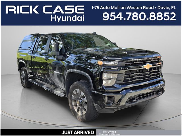 Recent Arrival! CARFAX One-Owner. Clean CARFAX. 10-Speed Automatic, 4WD, Black Cloth. Black 2024 Chevrolet Silverado 2500HD Custom 4WD 6.6L V8 10-Speed Automatic
