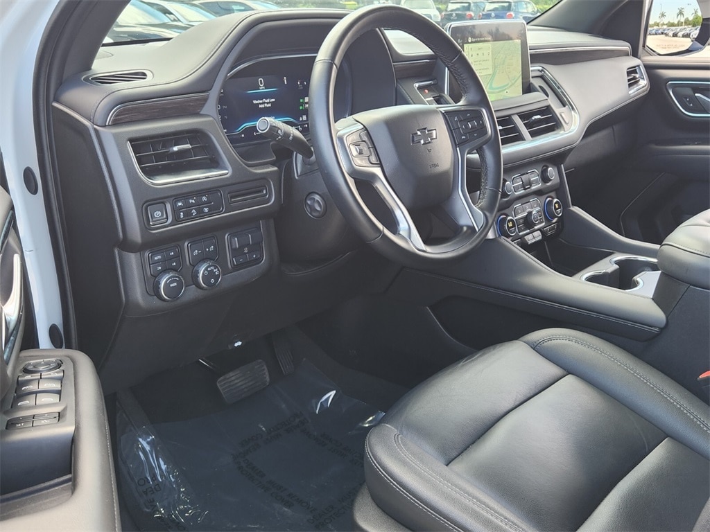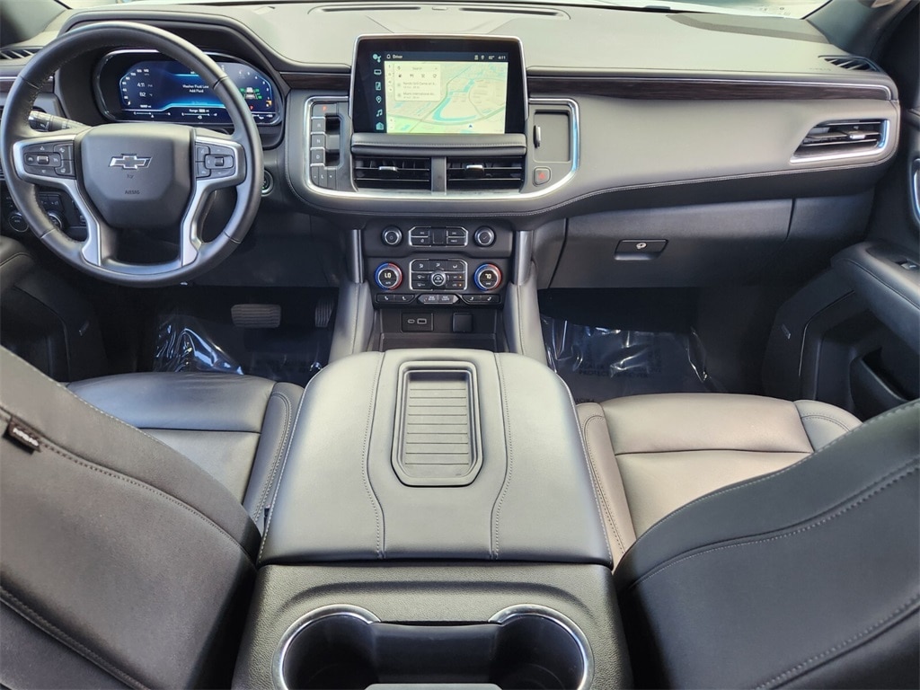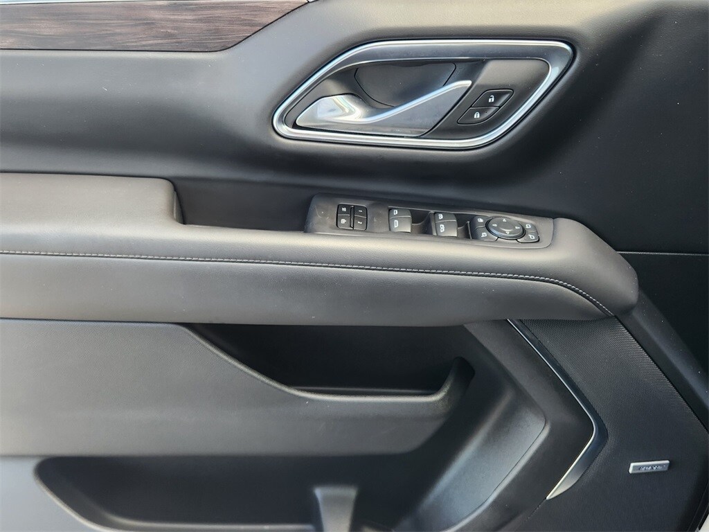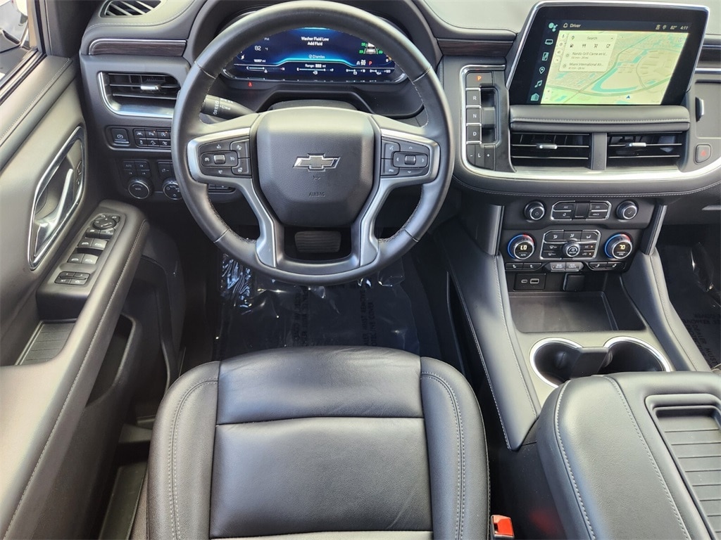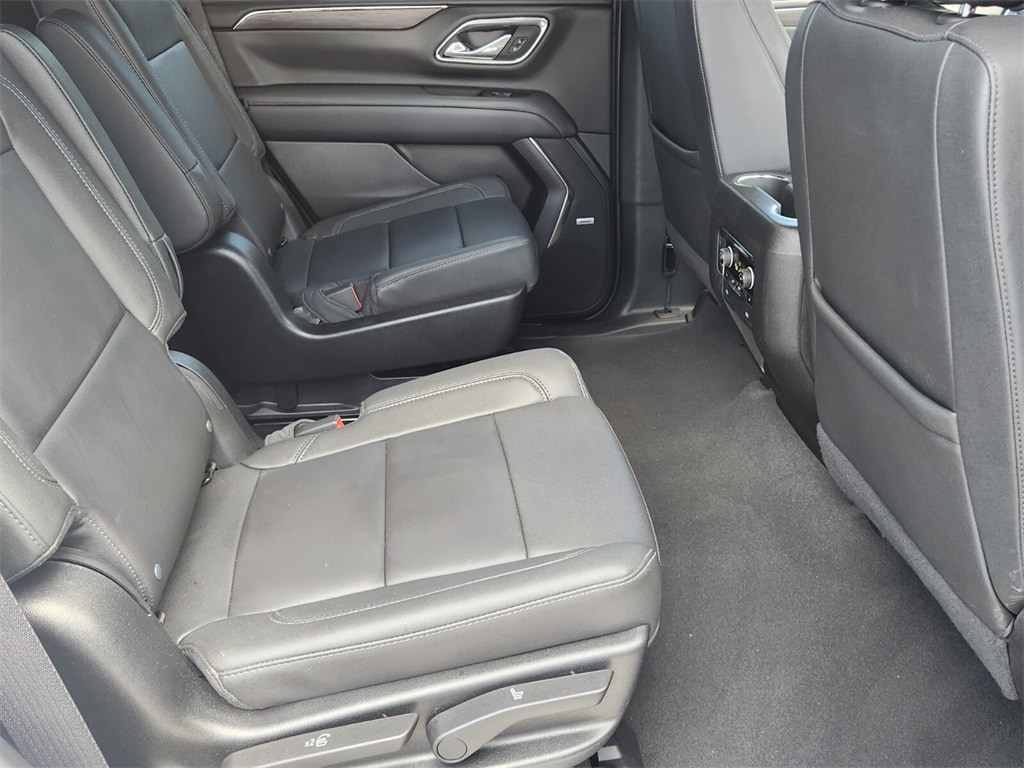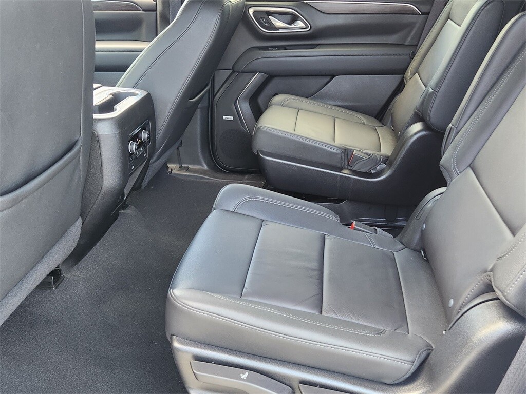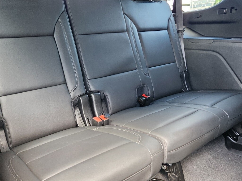 This vehicle comes equipped with Advanced Trailering Package (Hitch View w/Pan/Zoom Image Adjustment, Integrated Trailer Brake Controller, and Smart Trailer Integration Indicator), Driver Alert Package (Lane Change Alert w/Side Blind Zone Alert and Rear Cross Traffic Alert), Luxury Package (2nd Row Pwr Release 60/40 Split-Folding Bench Seat, 3rd Row 60/40 Power-Folding Split-Bench Seat, HD Surround Vision, Heated 2nd Row Outboard Seats, Heated Steering Wheel, Memory Settings, Outside Heated Power-Adjustable Mirrors, Power Tilt & Telescopic Steering Column, and Rear Pedestrian Alert), Max Trailering Package (Extra Capacity Cooling System), Preferred Equipment Group 2Z7 (1st & 2nd Row Color-Keyed Carpeted Floor Mats, 2-Speed Active Electronic AutoTrac Transfer Case, Auto-Dimming Inside Rear-View Mirror, Black Tubular Assist Steps, Bose 9-Speaker Stereo Audio System Feature, Bright Front & Rear Door Sill Plates, Color-Keyed Carpeting Floor Covering, Driver & Front Outboard Passenger Airbags, Enhanced Driver Information Center, Floor Console w/Storage Area, Front High-Approach Angle Fascia, Hands-Free Rear Power Programmable Liftgate, Hill Descent Control, LED Daytime Running Lamps, Memory Settings for Driver, Red Horizontal-Mounted Recovery Hooks, Remote Start, SiriusXM w/360L, Universal Home Remote, Wireless Charging, and Wrapped Steering Wheel), 4WD, Black Leather, 10-Way Power Driver & Passenger Seat Adjusters, 3.23 Rear Axle Ratio, 3rd row seats: split-bench, 4-Wheel Disc Brakes, 9 Speakers, ABS brakes, Air Conditioning, Alloy wheels, AM/FM radio: SiriusXM with 360L, Apple CarPlay/Android Auto, Auto High-beam Headlights, Auto-dimming Rear-View mirror, Automatic temperature control, Brake assist, Bumpers: body-color, Compass, Delay-off headlights, Driver door bin, Driver vanity mirror, Dual front impact airbags, Dual front side impact airbags, Electronic Stability Control, Emergency communication system: OnStar and Chevrolet connected services capable, Four wheel independent suspension, Front anti-roll bar, Front Bucket Seats, Front Center Armrest, Front dual zone A/C, Front High-Back Reclining Bucket Seats, Front reading lights, Fully automatic headlights, Garage door transmitter, Heated door mirrors, Heated Driver & Front Passenger Seats, Heated front seats, Illuminated entry, Info