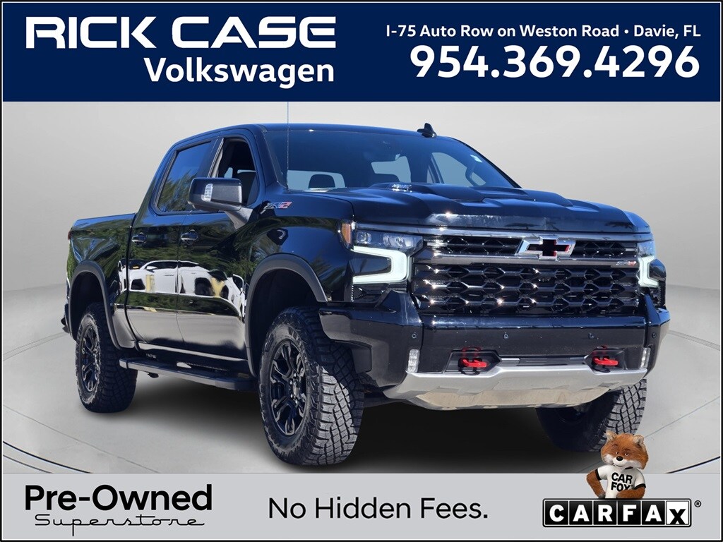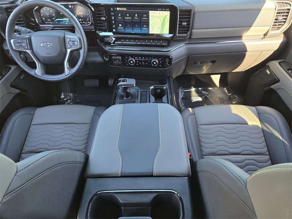 This vehicle comes equipped with Preferred Equipment Group 3LT (10-Way Power Driver Seat with Lumbar, 10-Way Power Passenger Seat Adjuster with Lumbar, 12.3" Multicolor Reconfigurable Digital Display, 120-Volt Bed Mounted Power Outlet, 120-Volt Interior Power Outlet, 2 USB Data Ports, 2nd Row Heated Outboard Seats, All-Weather Floor Liner, Bed View Camera, Bluetooth® For Phone, Chevytec Spray-on Black Bedliner, Color-Keyed Carpeting Floor Covering, Deep-Tinted Glass, Driver Memory, Dual Rear USB Ports (charge Only), Electric Rear-Window Defogger, EZ Lift Power Lock and Release Tailgate, Floor Mounted Center Console, Front Bucket Seats, Front LED Fog Lamps, Front Rain-Sensing Wipers, HD Surround Vision, Heated Driver and Front Outboard Passenger Seats, Heated Steering Wheel, Heavy-Duty Air Filter, High Gloss Black Mirror Caps, Hill Descent Control, Hitch Guidance with Hitch View, in-Vehicle Trailering System App, Integrated Trailer Brake Controller, Keyless Open and Start, LED Cargo Area Lighting, Multi-Flex Tailgate, OnStar Services Capable, Outside Heated Power-Adjustable Mirrors, Perforated Leather Seat Trim, Performance Red Recovery Hooks, Perimeter Lighting, Power Front Passenger Windows with Express Up/Down, Power Front Windows with Driver Express Up/Down, Power Rear Windows with Express Down, Power Sliding Rear Window with Rear Defogger, Rear Cross Traffic Braking, Rear Pedestrian Alert, Rear Wheelhouse Liners, Remote Vehicle Starter System, Safety Alert Seat, SiriusXM with 360L Trial Subscription, Steering Wheel Audio Controls, Teen Driver, Theft Deterrent System (unauthorized Entry), Tire Pressure Monitoring System, Trailer Camera Provisions, Trailer Side Blind Zone Alert, Ultrasonic Front and Rear Park Assist, Universal Home Remote, Ventilated Driver and Front Passenger Seats, Wheels: 18" x 8.5" Aluminum Machined Face, Wi-Fi Hot Spot Capable, and Wrapped Steering Wheel), Technology Package (15" Diagonal Multicolor Head-Up Display, Adaptive Cruise Control, Power Tilt and Telescoping Steering Column, and Rear Camera Mirror), Trailering Package (Hitch Guidance), Up-Level Rear Seat with Storage Package, ZR2 Suspension Package, 10-Speed Automatic, 4WD, Jet Black/Graystone Leather, 220 Amp Alternator, 3.23 Rear Axle Ratio, 4-Wheel Disc Brakes, 7 Speakers, 850 Cold-Cranking Amps Heavy-Duty Battery, ABS brakes, Air Conditioning, Alloy wheels, AM/FM radio: SiriusXM with 360L, Apple CarPlay/Android Auto, Auto High-beam Headlights, Auto-dimming door mirrors, Auto-dimming Rear-View mirror, Automatic Emergency Braking, Automatic temperature control, B