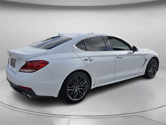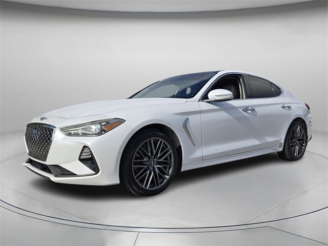 10 year or 100,000 mile Powertrain Warranty, Leather, AWD, Bluetooth Hands Free, Sirus XM Radio, Power Moonrooof, Navigation, Back Up Camera. White 2019 Genesis G70 2.0T Advanced 2.0L TGDI 8-Speed Automatic