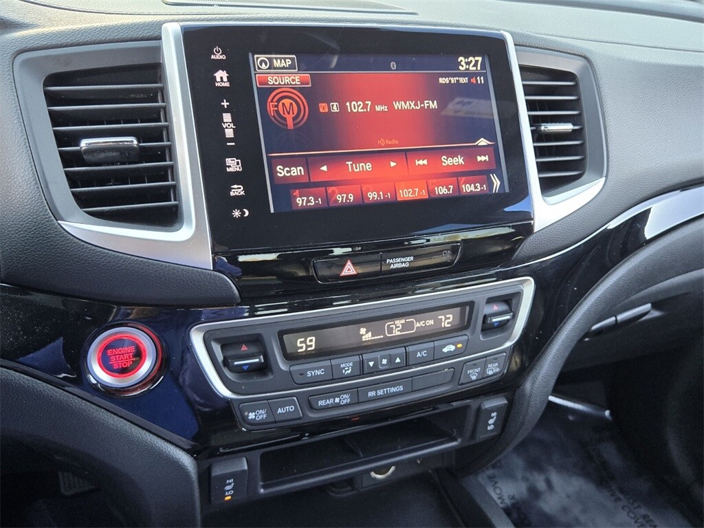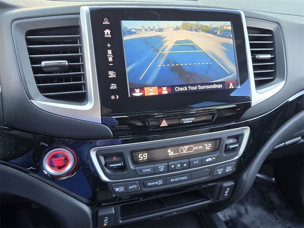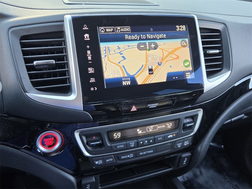 This vehicle comes equipped with Black w/Leather Seat Trim, 4-Wheel Disc Brakes, 4.25 Axle Ratio, 8 Speakers, ABS brakes, Air Conditioning, Alloy wheels, AM/FM radio: SiriusXM, Apple CarPlay/Android Auto, Auto High-beam Headlights, Auto-dimming Rear-View mirror, Automatic temperature control, Brake assist, Bumpers: body-color, Compass, Delay-off headlights, Driver door bin, Driver vanity mirror, Driver's Seat Mounted Armrest, Dual front impact airbags, Dual front side impact airbags, Electronic Stability Control, Emergency communication system: HondaLink, Exterior Parking Camera Rear, Four wheel independent suspension, Front anti-roll bar, Front Bucket Seats, Front dual zone A/C, Front fog lights, Front reading lights, Fully automatic headlights, Garage door transmitter: HomeLink, Heated door mirrors, Heated Front Bucket Seats, Heated front seats, Heated steering wheel, Illuminated entry, Leather Seat Trim, Low tire pressure warning, Memory seat, Navigation system: Honda Satellite-Linked Navigation System, Occupant sensing airbag, Outside temperature display, Overhead airbag, Overhead console, Panic alarm, Passenger door bin, Passenger seat mounted armrest, Passenger vanity mirror, Power door mirrors, Power driver seat, Power moonroof, Power passenger seat, Power steering, Power windows, Radio data system, Radio: AM/FM/MP3 w/Nav System & Trunk-Bed Audio, Rain sensing w