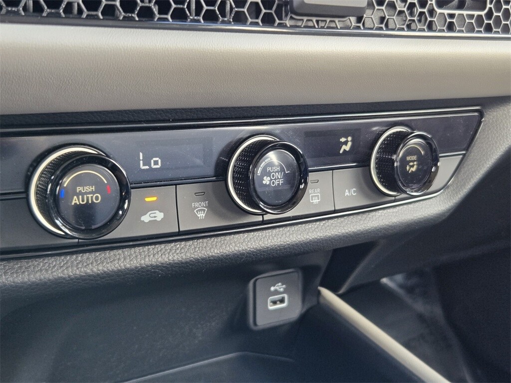 This vehicle comes equipped with 4 Speakers, 4-Wheel Disc Brakes, 5.436 Axle Ratio, ABS brakes, Adaptive Cruise Control: Adaptive Cruise Control (ACC) with Low-Speed Follow, Air Conditioning, Alloy wheels, AM/FM radio, Apple CarPlay/Android Auto, Auto High-beam Headlights, Automatic temperature control, Brake assist, Bumpers: body-color, Cloth Seat Trim, Delay-off headlights, Driver door bin, Driver vanity mirror, Dual front impact airbags, Dual front side impact airbags, Electronic Stability Control, Emergency communication system: HondaLink, Exterior Parking Camera Rear, Four wheel independent suspension, Front anti-roll bar, Front Bucket Seats, Front Center Armrest, Front reading lights, Fully automatic headlights, Illuminated entry, Knee airbag, Low tire pressure warning, Occupant sensing airbag, Outside temperature display, Overhead airbag, Panic alarm, Passenger door bin, Passenger vanity mirror, Power door mirrors, Power steering, Power windows, Radio data system, Radio: 180-Watt Audio System w/4 Speakers, Rear anti-roll bar, Rear reading lights, Rear side impact airbag, Rear window defroster, Rear window wiper, Remote keyless entry, Security system, Speed control, Speed-sensing steering, Split folding rear seat, Spoiler, Steering wheel mounted audio controls, Tachometer, Telescoping steering wheel, Tilt steering wheel, Traction control, Trip computer, Variably intermittent wipers, and Wheels: 17" Silver Painted Alloy .