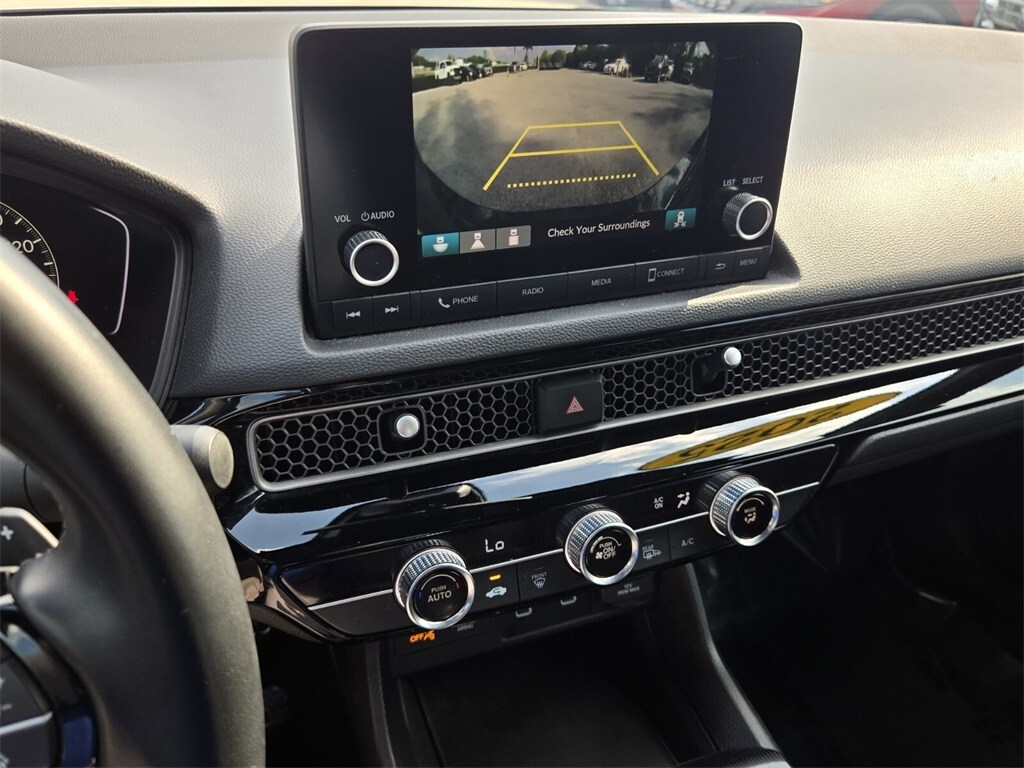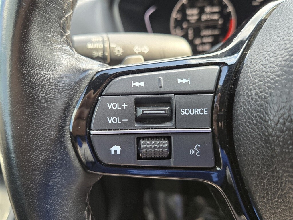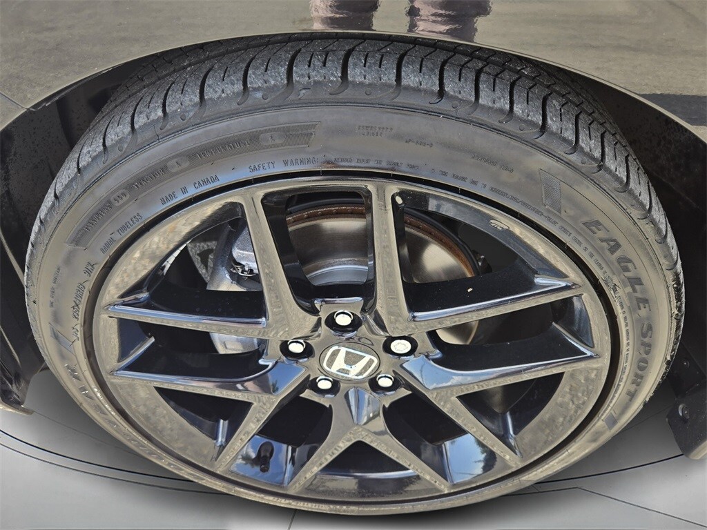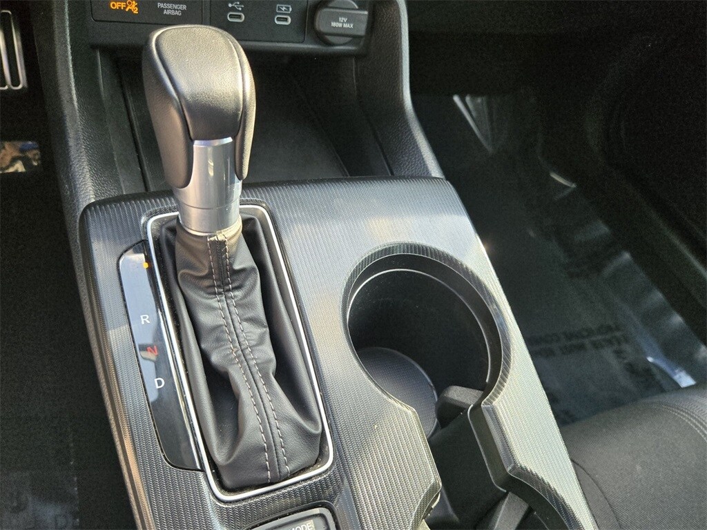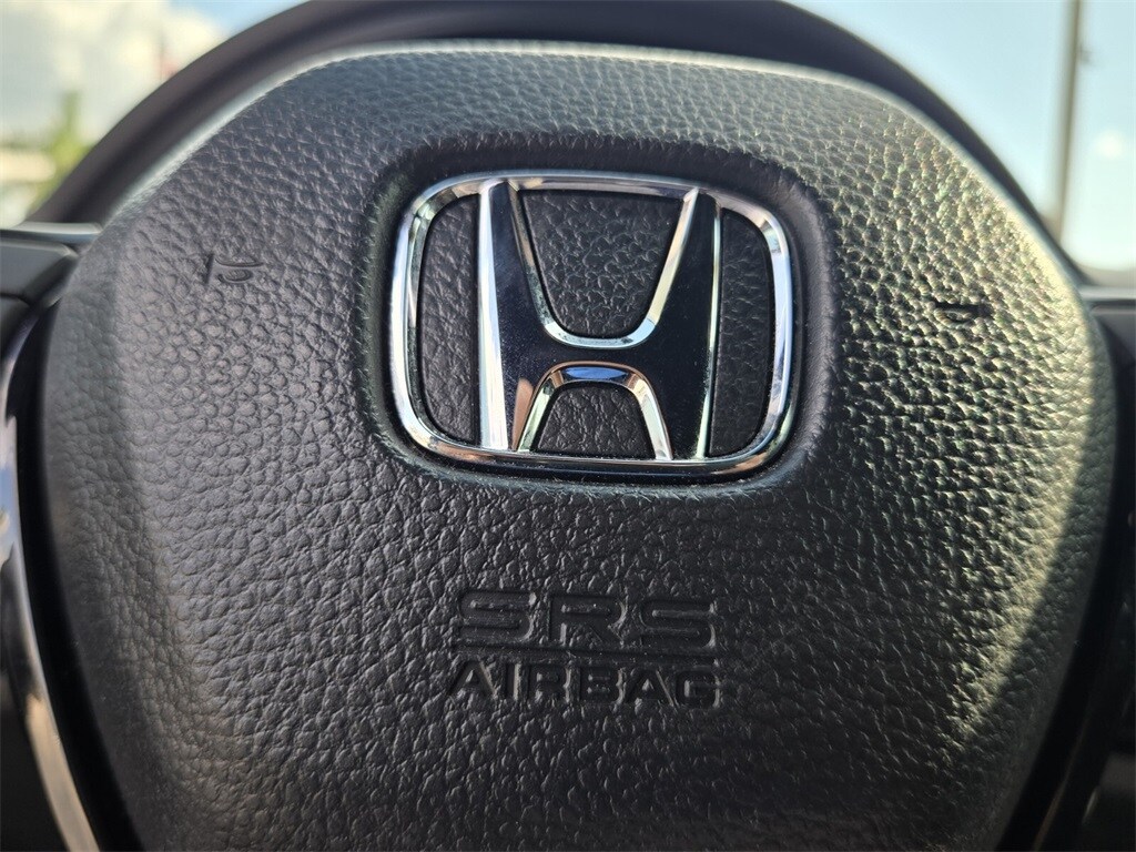This vehicle comes equipped with 4-Wheel Disc Brakes, 8 Speakers, ABS brakes, Adaptive Cruise Control: Adaptive Cruise Control (ACC) with Low-Speed Follow, Air Conditioning, Alloy wheels, AM/FM radio, Apple CarPlay/Android Auto, Auto High-beam Headlights, Automatic temperature control, Blind Spot Information (BSI) System warning, Brake assist, Bumpers: body-color, Cloth/Leatherette Seating Surfaces, Delay-off headlights, Driver door bin, Driver vanity mirror, Dual front impact airbags, Dual front side impact airbags, Electronic Stability Control, Emergency communication system: HondaLink, Exterior Parking Camera Rear, Four wheel independent suspension, Front anti-roll bar, Front Bucket Seats, Front Center Armrest, Front reading lights, Fully automatic headlights, Heated door mirrors, Illuminated entry, Knee airbag, Leather Shift Knob, Leather steering wheel, Low tire pressure warning, Occupant sensing airbag, Outside temperature display, Overhead airbag, Panic alarm, Passenger door bin, Passenger vanity mirror, Power door mirrors, Power steering, Power windows, Radio data system, Radio: 180-Watt Audio System, Rear anti-roll bar, Rear seat center armrest, Rear side impact airbag, Rear window defroster, Remote keyless entry, Security system, Speed control, Speed-sensing steering, Split folding rear seat, Steering wheel mounted audio controls, Tachometer, Telescoping steering wheel, Tilt steering wheel, Traction control, Trip computer, and Wheels: 18" Gloss Black Alloy .