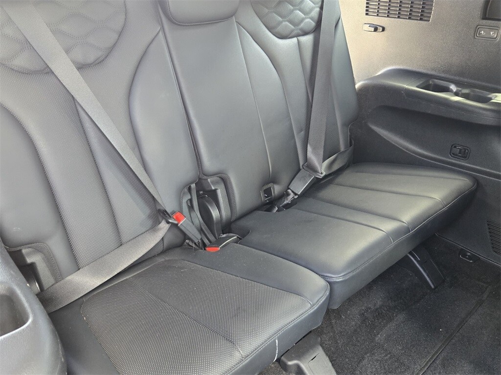 This vehicle comes equipped with Option Group 01, 12 Speakers, 3.648 Axle Ratio, 3rd row seats: split-bench, 4-Wheel Disc Brakes, ABS brakes, Air Conditioning, Alloy wheels, AM/FM radio: SiriusXM, Apple CarPlay & Android Auto, Auto High-beam Headlights, Auto-dimming Rear-View mirror, Auto-leveling suspension, Automatic temperature control, Brake assist, Bumpers: body-color, Cargo Cover/Screen, Cargo Net, Cargo Tray, Carpeted Floor Mats, Compass, Delay-off headlights, Driver door bin, Driver vanity mirror, Dual front impact airbags, Dual front side impact airbags, Electronic Stability Control, Emergency communication system, Four wheel independent suspension, Front anti-roll bar, Front Bucket Seats, Front Center Armrest, Front dual zone A/C, Front reading lights, Fully automatic headlights, Garage door transmitter: HomeLink, harman/kardon® Speakers, Heads-Up Display, Heated & Ventilated Front Bucket Seats, Heated door mirrors, Heated front seats, Heated rear seats, Heated steering wheel, Illuminated entry, Knee airbag, Low tire pressure warning, Memory seat, Navigation System, Occupant sensing airbag, Outside temperature display, Overhead airbag, Overhead console, Panic alarm, Passenger door bin, Passenger vanity mirror, Power door mirrors, Power driver seat, Power Liftgate, Power moonroof, Power passenger seat, Power steering, Power windows, Premium Nappa Leather Seat Trim, Radio data system, Radio: AM/FM/MP3 Premium Audio System, Rain sensing wipers, Rear air conditioning, Rear anti-roll bar, Rear window defroster, Rear window wiper, Reclining 3rd row seat, Remote keyless entry, Security system, Speed control, Speed-sensing steering, Split folding rear seat, Spoiler, Steering wheel mounted audio controls, Tachometer, Telescoping steering wheel, Tilt steering wheel, Traction control, Trip computer, Turn signal indicator mirrors, Variably intermittent wipers, Ventilated front seats, Ventilated rear seats, and Wheels: 20" x 7.5J 14-Spoke Premium Finish Alloy .