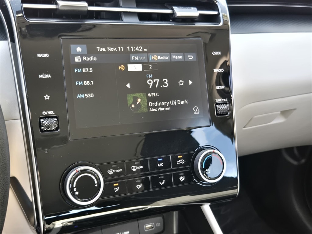 10 year or 100,000 mile Powertrain Warranty, Leather, Local Trade, Power Moonroof, Bluetooth, Automatic Transmission, All Power Options, Back up / Rearview Camera, **FULLY SERVICED AND INSPECTED**, New Feature, Tucson SE, 4D Sport Utility, 2.5L I4 DGI DOHC 16V LEV3-SULEV30 187hp, 8-Speed Automatic with SHIFTRONIC, AWD, Shimmering Silver, Gray Cloth, 3.648 Axle Ratio, 4-Wheel Disc Brakes, 6 Speakers, ABS brakes, Air Conditioning, Alloy wheels, AM/FM radio, Apple CarPlay & Android Auto, Auto High-beam Headlights, Brake assist, Cargo Net, Cargo Tray, Carpeted Floor Mats, Delay-off headlights, Driver door bin, Driver vanity mirror, Dual front impact airbags, Dual front side impact airbags, Electronic Stability Control, Exterior Parking Camera Rear, First Aid Kit, Four wheel independent suspension, Front and Rear Mudguards, Front anti-roll bar, Front Bucket Seats, Front Center Armrest, Front reading lights, Fully automatic headlights, Illuminated entry, Low tire pressure warning, Occupant sensing airbag, Option Group 01, Outside temperature display, Overhead airbag, Overhead console, Panic alarm, Passenger door bin, Passenger vanity mirror, Power door mirrors, Power steering, Power windows, Radio data system, Radio: AM/FM/HD Audio System, Rear anti-roll bar, Rear Bumper Applique, Rear seat center armrest, Rear side impact airbag, Rear window defroster, Rear window wiper, Remote keyless entry, Security system, Speed control, Split folding rear seat, Spoiler, Stain & Odor Resistant Cloth Seat Trim, Steering wheel mounted audio controls, Tachometer, Telescoping steering wheel, Tilt steering wheel, Traction control, Trip computer, Variably intermittent wipers, Wheels: 17" x 7.0J" Alloy.