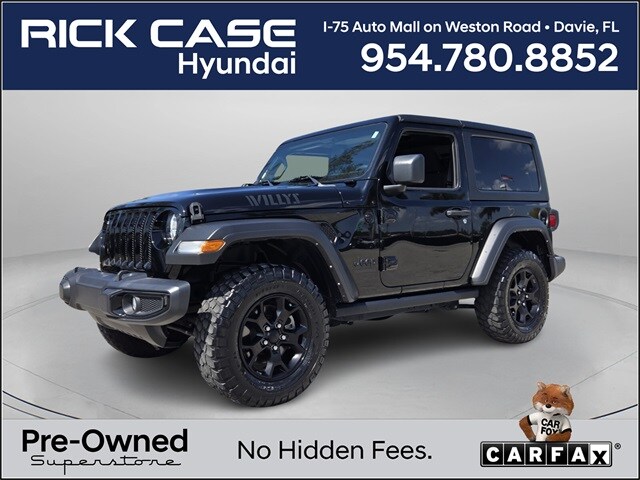 CARFAX One-Owner. Clean CARFAX. 10 year or 100,000 mile Powertrain Warranty, AWD, Bluetooth Hands Free, Sirus XM Radio, Back Up Camera, ABS brakes, Compass, Electronic Stability Control, Low tire pressure warning, ParkView Rear Back-Up Camera, Traction control. Black Clearcoat 2022 Jeep Wrangler Willys 4WD 2.0L I4 DOHC 8-Speed Automatic