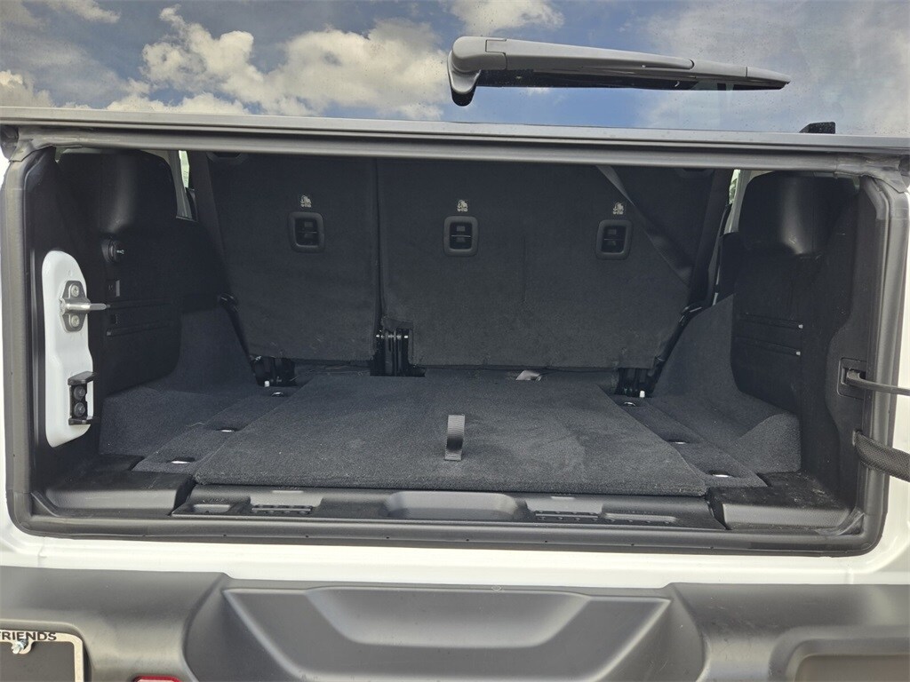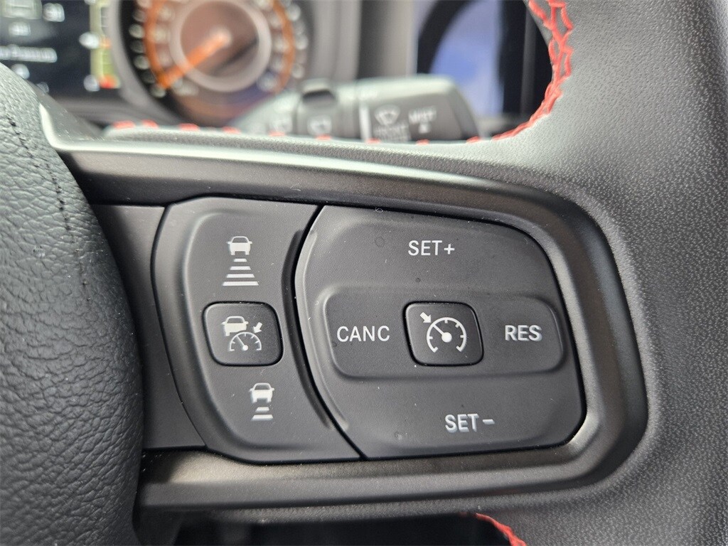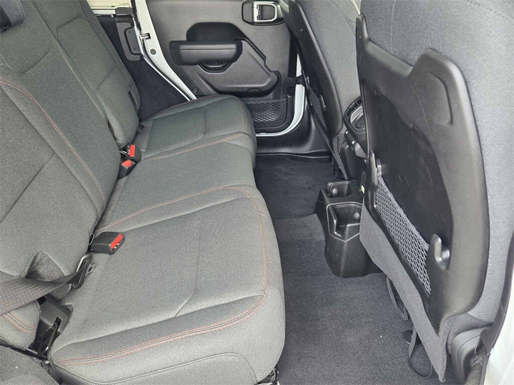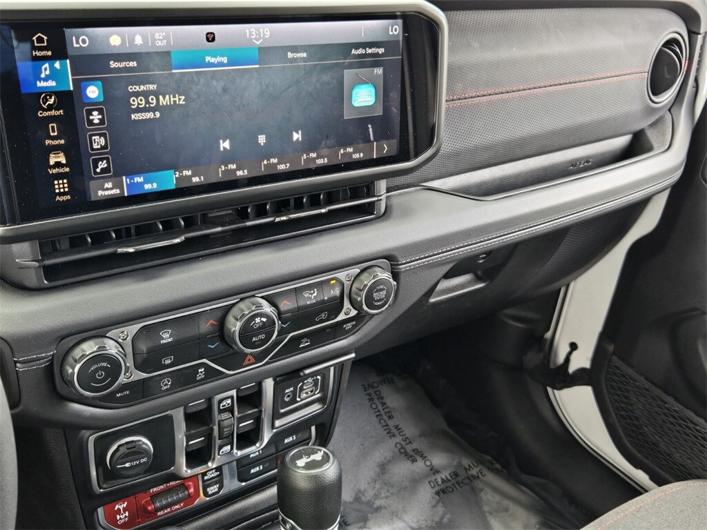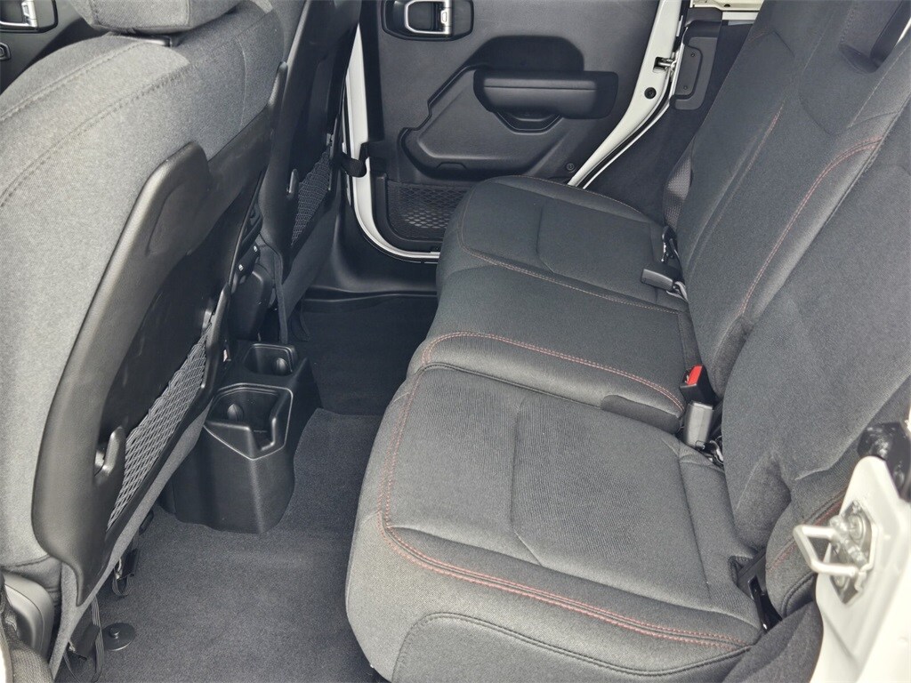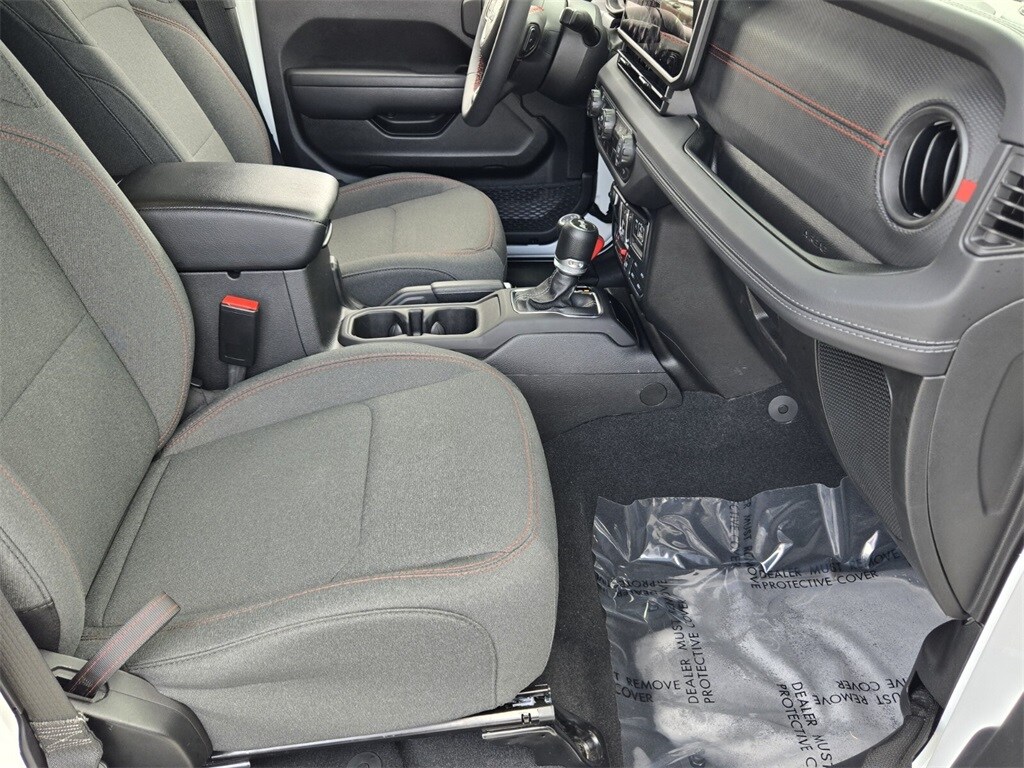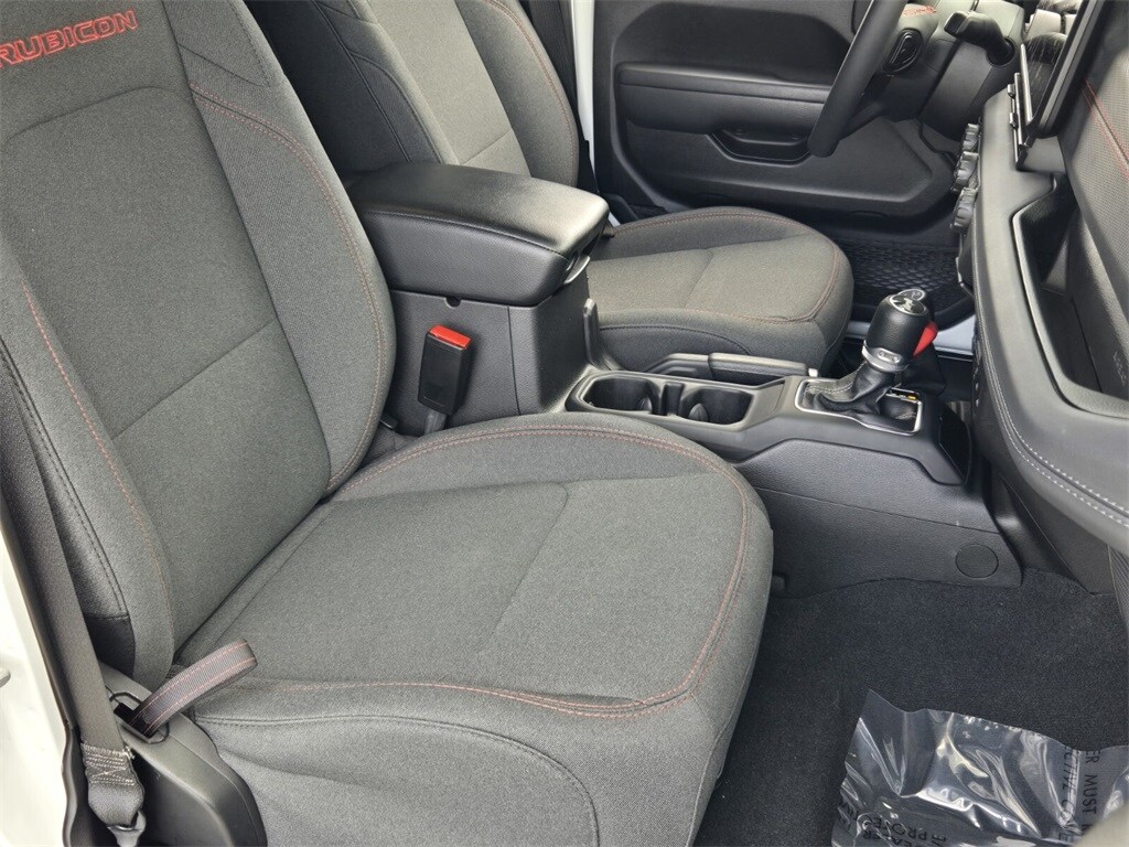 This vehicle comes equipped with Quick Order Package 24R Rubicon, 12.3" Touchscreen Display, 4-Wheel Disc Brakes, 4.10 Rear Axle Ratio, 8 Speakers, 97 MPH Vehicle Max Speed Calibration, ABS brakes, Air Conditioning, Alloy wheels, AM/FM radio: SiriusXM, Apple CarPlay, Apple CarPlay/Android Auto, Automatic temperature control, Aux Battery, Brake assist, Cloth Low-Back Bucket Seats, Compass, Connectivity - US/Canada, Delay-off headlights, Disassociated Touchscreen Display, Driver door bin, Driver vanity mirror, Dual front impact airbags, Dual front side impact airbags, Electronic Stability Control, Emergency communication system: Jeep Connect, Front anti-roll bar, Front Bucket Seats, Front Center Armrest w/Storage, Front dual zone A/C, Front fog lights, Front License Plate Bracket, Front reading lights, Fully automatic headlights, Google Android Auto, Heated door mirrors, Illuminated entry, Integrated Center Stack Radio, Integrated roll-over protection, Integrated Voice Command w/Bluetooth, Low tire pressure warning, Non-Lock Fuel Cap w/o Discriminator, Occupant sensing airbag, Outside temperature display, Overhead airbag, Panic alarm, ParkView Rear Back-Up Camera, Passenger door bin, Passenger vanity mirror, Performance Suspension, Power door mirrors, Power steering, Power Top Quarter Window Storage Bag, Power windows, Radio data system, Radio: Uconnect 5 w/12.3" Display, Rear anti-roll bar, Rear reading lights, Rear Window Defroster, Rear Window Wiper/Washer, Remote keyless entry, Removable Rear Quarter Windows, Security system, Sky 1-Touch Power Top, Speed control, Split folding rear seat, Steering wheel mounted audio controls, Stop-Start Dual Battery System, Tachometer, Telescoping steering wheel, Tilt steering wheel, Traction control, Trip computer, Variably intermittent wipers, Voltmeter, and Wheels: 17" x 7.5" Machined/Painted Black .