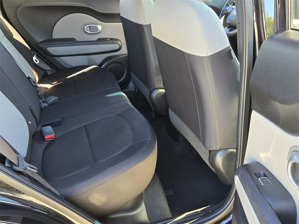 1-My son is 6ft7in, He fits fine in the soul, 2-Door upholstery cleans with free whips from Publics, 3-Seat comfort & adjustments are good, 4-Clearance off the ground - ie. some cars hit the curb when parking, 5-Has sporty tight suspension, handles well on roads, 6-Could have better gas milage=wife only drives automatic. 7-Last but not least: price under 20k. Wished I could add built-in rearview monitor on the base model. It is easy to get in and out of, is peppy enough to pass if needed, drives 85mph, has plenty of room, tight enough handling and VERY comfortable. Easy to park. Has blind spots on both rear sides. The bright color is easy for others to see. We all love this car every time we get in it! - 5.0