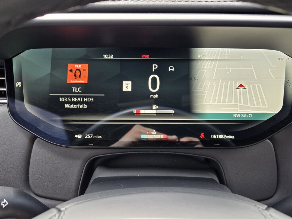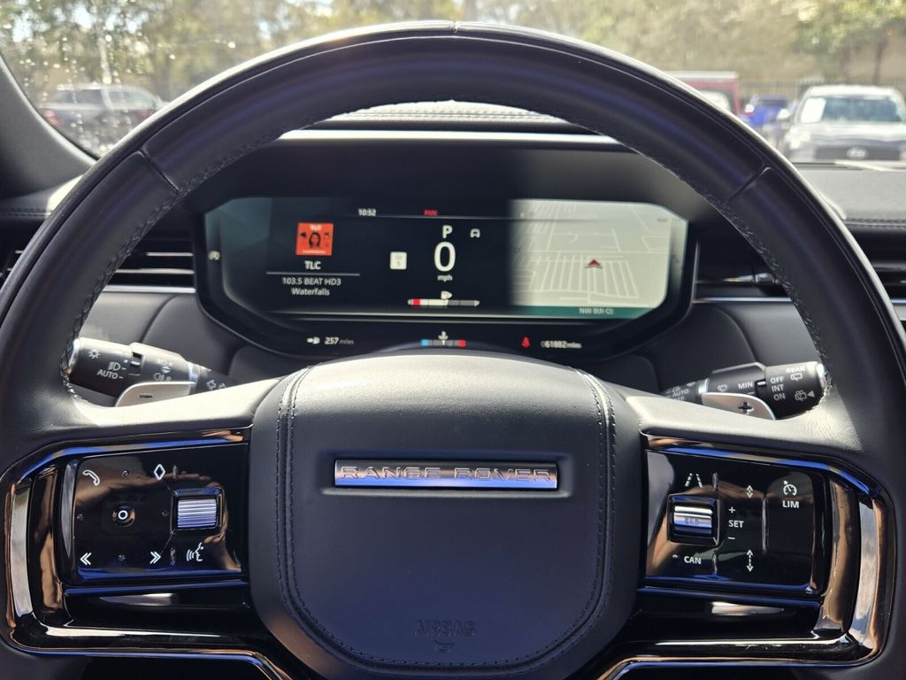 This vehicle comes equipped with 19 Speakers, 20-Way Electric Heated Front Seats w/Memory, 3.55 Axle Ratio, 4-Wheel Disc Brakes, ABS brakes, Adaptive suspension, Air Conditioning, Alloy wheels, AM/FM radio: SiriusXM, Apple CarPlay & Android Auto, Auto High-beam Headlights, Auto tilt-away steering wheel, Auto-dimming door mirrors, Auto-dimming Rear-View mirror, Auto-leveling suspension, Automatic temperature control, Block heater, Brake assist, Bumpers: body-color, Child-Seat-Sensing Airbag, Compass, Delay-off headlights, Driver door bin, Driver vanity mirror, Driver's Seat Mounted Armrest, Dual front impact airbags, Dual front side impact airbags, Electronic Stability Control, Emergency communication system: InControl Protect, Exterior Parking Camera Rear, Four wheel independent suspension, Front anti-roll bar, Front Bucket Seats, Front Center Armrest w/Storage, Front dual zone A/C, Front reading lights, Fully automatic headlights, Garage door transmitter: HomeLink, Headlight cleaning, Heated door mirrors, Heated front seats, Heated rear seats, Heated steering wheel, Illuminated entry, Leather Shift Knob, Leather steering wheel, Low tire pressure warning, Memory seat, Navigation system: InControl Navigation Pro, Occupant sensing airbag, Outside temperature display, Overhead airbag, Overhead console, Panic alarm, Passenger door bin, Passenger seat mounted armrest, Passenger vanity mirror, Perforated Windsor Leather Seat Trim, Power door mirrors, Power driver seat, Power Liftgate, Power moonroof, Power passenger seat, Power steering, Power windows, Premium audio system: Meridian, Radio data system, Radio: Meridian Sound System, Rain sensing wipers, Rear anti-roll bar, Rear fog lights, Rear reading lights, Rear seat center armrest, Rear window defroster, Rear window wiper, Remote keyless entry, Security system, Speed control, Speed-sensing steering, Speed-Sensitive Wipers, Split folding rear seat, Spoiler, Steering wheel memory, Steering wheel mounted audio controls, Tachometer, Telescoping steering wheel, Tilt steering wheel, Traction control, Trip computer, Turn signal indicator mirrors, Variably intermittent wipers, and Wheels: 21" Satin Dark Grey (Style 5126) .