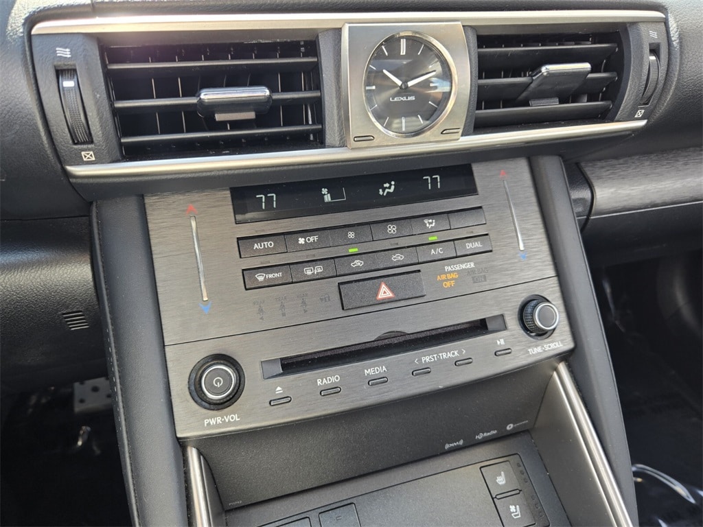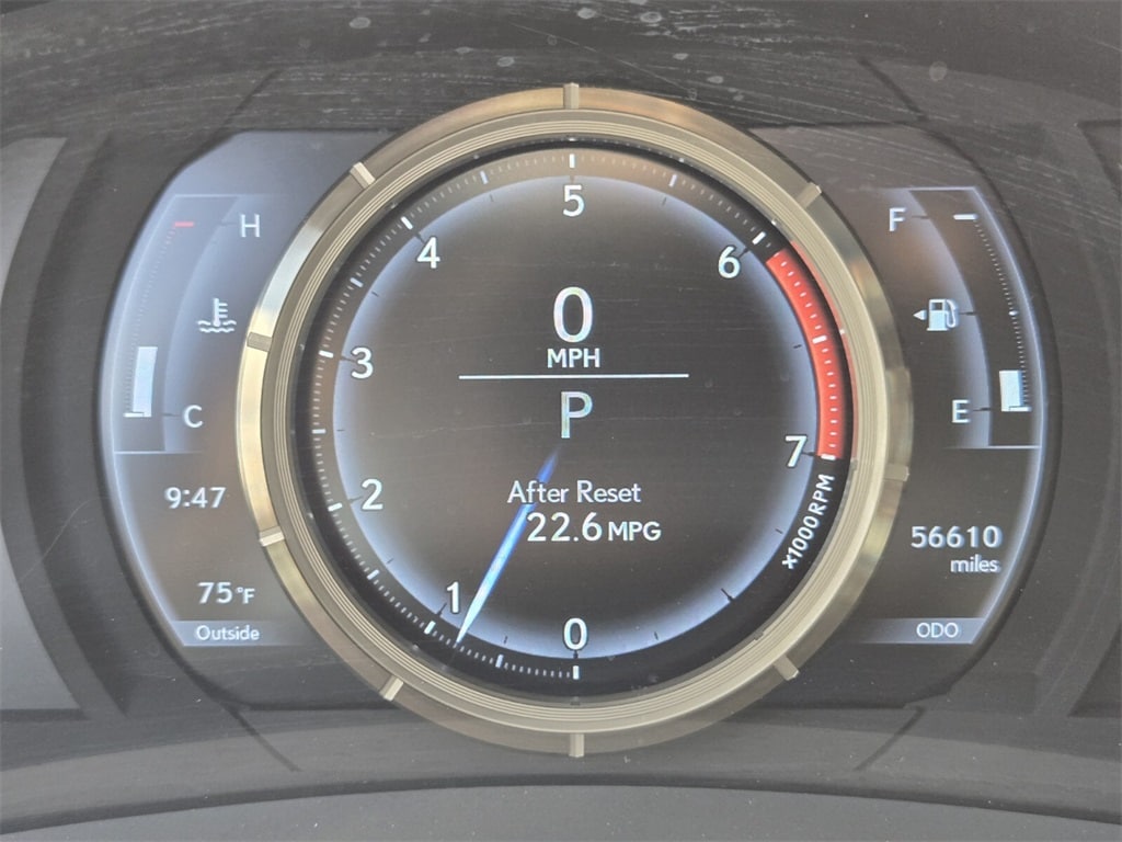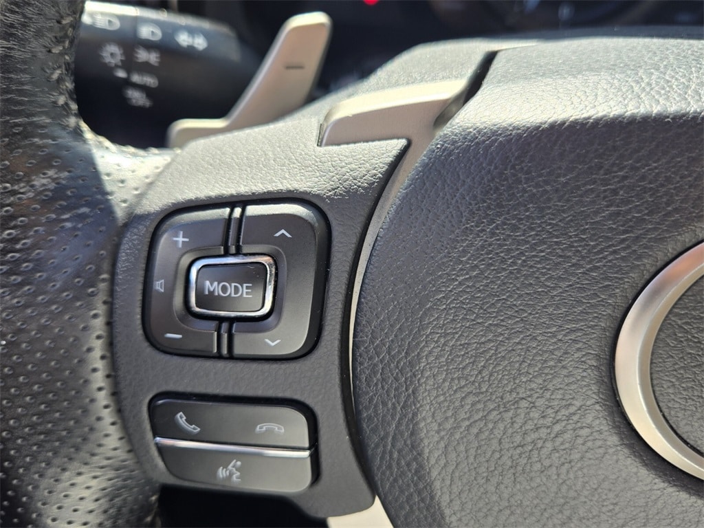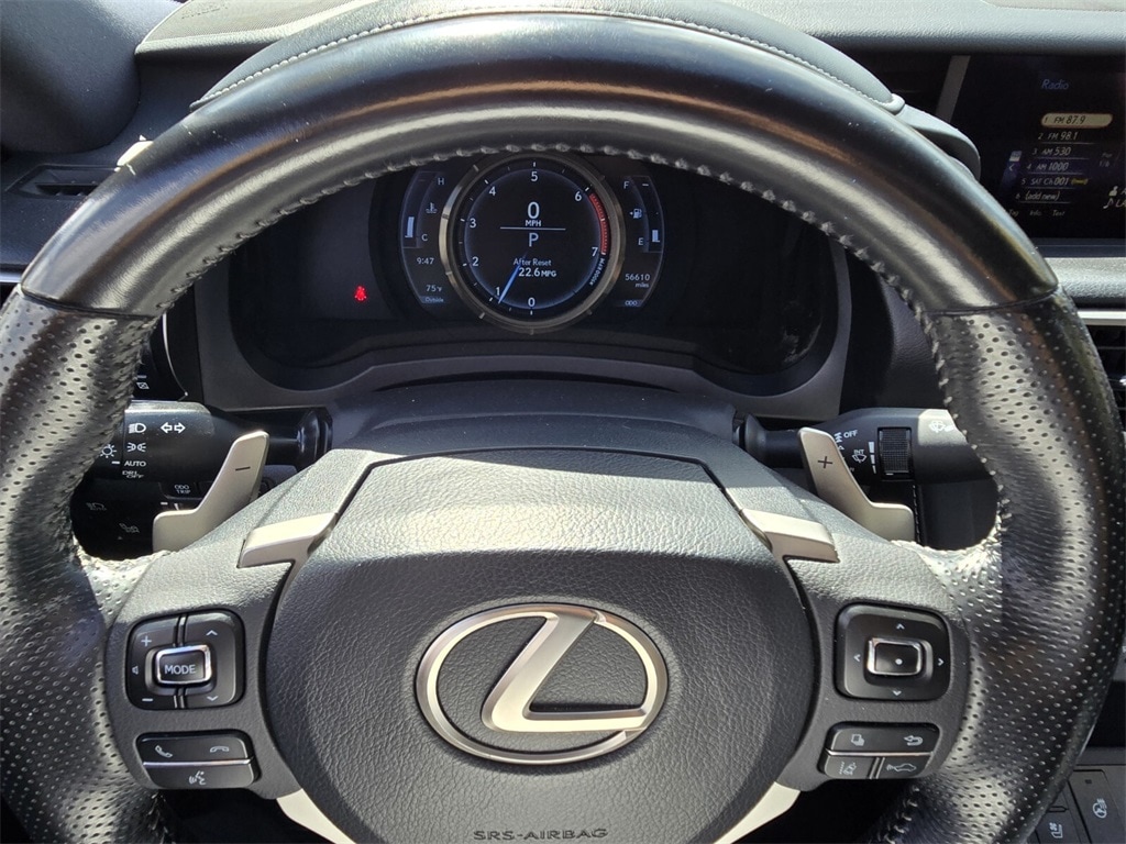 This vehicle comes equipped with 10 Speakers, 4-Wheel Disc Brakes, ABS brakes, Air Conditioning, Alloy wheels, AM/FM Radio, AM/FM radio: SiriusXM, Auto High-beam Headlights, Auto-dimming Rear-View mirror, Automatic temperature control, Brake assist, Bumpers: body-color, CD player, Compass, Delay-off headlights, Driver door bin, Driver vanity mirror, Dual front impact airbags, Dual front side impact airbags, Electronic Stability Control, Emergency communication system: Lexus Enform Safety Connect, Exterior Parking Camera Rear, Four wheel independent suspension, Front anti-roll bar, Front Bucket Seats, Front Center Armrest, Front dual zone A/C, Front fog lights, Front reading lights, Fully automatic headlights, Garage door transmitter: HomeLink, Heated door mirrors, Illuminated entry, Knee airbag, Low tire pressure warning, NuLuxe Seat Trim, Occupant sensing airbag, Outside temperature display, Overhead airbag, Overhead console, Panic alarm, Passenger door bin, Passenger vanity mirror, Power door mirrors, Power driver seat, Power moonroof, Power passenger seat, Power steering, Power windows, Radio data system, Rear anti-roll bar, Rear reading lights, Rear seat center armrest, Rear side impact airbag, Rear window defroster, Remote keyless entry, Security system, Speed control, Speed-sensing steering, Speed-Sensitive Wipers, Split folding rear seat, Steering wheel mounted audio controls, Tachometer, Telescoping steering wheel, Tilt steering wheel, Traction control, Trip computer, Turn signal indicator mirrors, Variably intermittent wipers, and Wheels: 17" x 7.5" Split 5-Spoke Alloy .