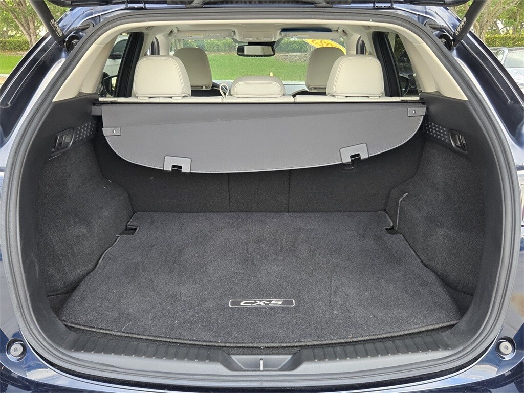 This vehicle comes equipped with 10 Speakers, 4-Wheel Disc Brakes, 4.624 Axle Ratio, ABS brakes, Air Conditioning, Alloy wheels, AM/FM radio: SiriusXM, AppLink/Apple CarPlay and Android Auto, Auto High-beam Headlights, Auto-dimming Rear-View mirror, Automatic temperature control, Brake assist, Bumpers: body-color, Delay-off headlights, Driver door bin, Driver vanity mirror, Dual front impact airbags, Dual front side impact airbags, E911 Automatic Emergency Notification, Electronic Stability Control, Emergency communication system: MAZDA CONNECT, Exterior Parking Camera Rear, Four wheel independent suspension, Front anti-roll bar, Front Bucket Seats, Front Center Armrest w/Storage, Front dual zone A/C, Front reading lights, Fully automatic headlights, Garage door transmitter: HomeLink, Heated door mirrors, Heated Front Bucket Seats, Heated front seats, Illuminated entry, Infotainment System Voice Command, Leather Seat Trim, Leather Shift Knob, Low tire pressure warning, Memory seat, Multifunction Commander Control, Occupant sensing airbag, Outside temperature display, Overhead airbag, Overhead console, Pandora, Panic alarm, Passenger door bin, Passenger vanity mirror, Power door mirrors, Power driver seat, Power Liftgate, Power moonroof, Power passenger seat, Power steering, Power windows, Radio Broadcast Data System Program Information, Radio data system, Radio: AM/FM/HD Audio System, Rain sensing wipers, Rear anti-roll bar, Rear reading lights, Rear seat center armrest, Rear window defroster, Rear window wiper, Remote keyless entry, SMS Text Msg Audio Delivery & Reply, Speed control, Speed-sensing steering, Split folding rear seat, Spoiler, Steering wheel mounted audio controls, Tachometer, Telescoping steering wheel, Tilt steering wheel, Traction control, Trip computer, Turn signal indicator mirrors, Variably intermittent wipers, and Wheels: 19" x 7J Aluminum Alloy .