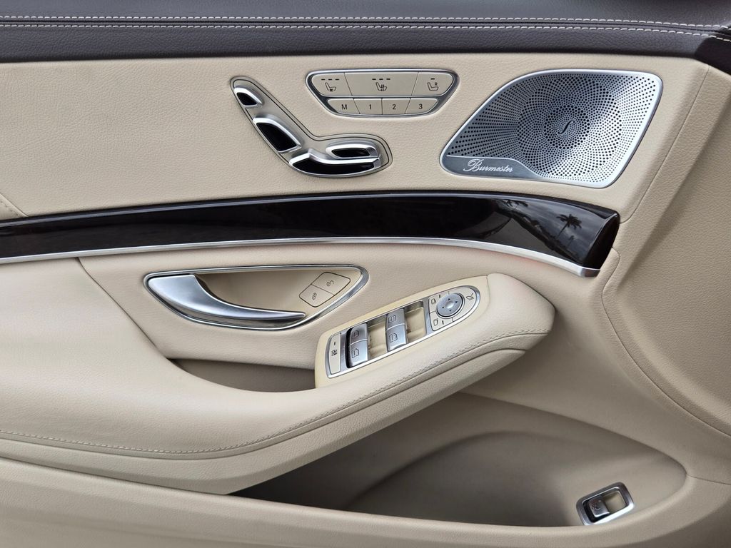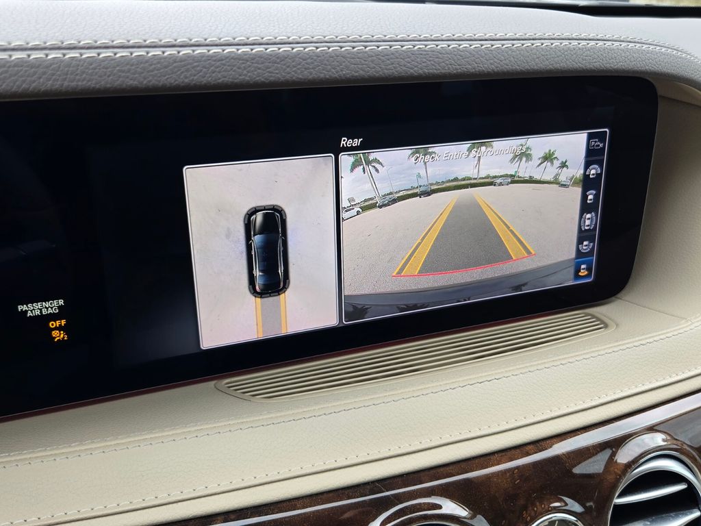 This vehicle comes equipped with Leather, 13 Speakers, 4-Wheel Disc Brakes, ABS brakes, Adaptive suspension, Air Conditioning, Alloy wheels, AM/FM radio: SiriusXM, Android Auto®, Apple CarPlay®, Apple CarPlay®/Android Auto®, Auto High-beam Headlights, Auto tilt-away steering wheel, Auto-dimming door mirrors, Auto-dimming Rear-View mirror, Auto-leveling suspension, Automatic temperature control, Brake assist, Bumpers: body-color, Burmester® Surround Sound System, Child-Seat-Sensing Airbag, Compass, Delay-off headlights, Door auto-latch, Driver door bin, Driver vanity mirror, Dual front impact airbags, Dual front side impact airbags, Electronic Stability Control, Emergency communication system: eCall Emergency System, Exterior Parking Camera Rear, Four wheel independent suspension, Front anti-roll bar, Front Bucket Seats, Front Center Armrest, Front dual zone A/C, Front reading lights, Garage door transmitter: Homelink, Genuine wood console insert, Genuine wood door panel insert, Head restraints memory, Heated door mirrors, Heated Front Seats, Heated front seats, HVAC memory, Illuminated entry, Knee airbag, Leather Upholstery, Low tire pressure warning, Memory seat, Navigation system: COMAND®, Occupant sensing airbag, Outside temperature display, Overhead airbag, Overhead console, Panic alarm, Passenger door bin, Passenger vanity mirror, Power adjustable front head restraints, Power adjustable rear head restraints, Power door mirrors, Power driver seat, Power moonroof: Panorama, Power passenger seat, Power steering, Power windows, Pre-Wiring for CD Player, Premium audio system: COMAND®, Radio data system, Radio: COMAND® w/Navigation, Rain sensing wipers, Rear anti-roll bar, Rear fog lights, Rear reading lights, Rear seat center armrest, Rear side impact airbag, Rear Window Blind, Rear window defroster, Remote keyless entry, Security system, SiriusXM Satellite Radio, Smartphone Integration, Speed control, Speed-sensing steering, Steering wheel memory, Steering wheel mounted audio controls, Tachometer, Telescoping steering wheel, Tilt steering wheel, Traction control, Trip computer, Turn signal indicator mirrors, Variably intermittent wipers, Weather band radio, and Wheels: 18" Twin 5-Spoke .