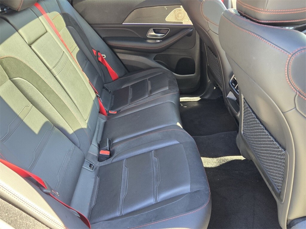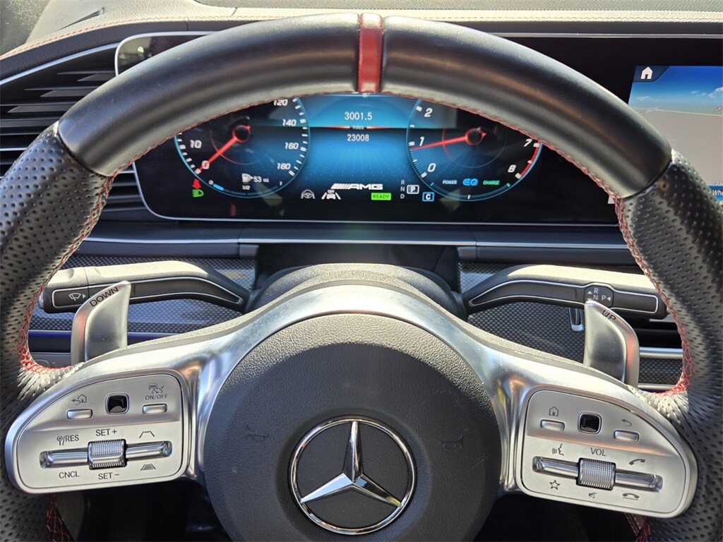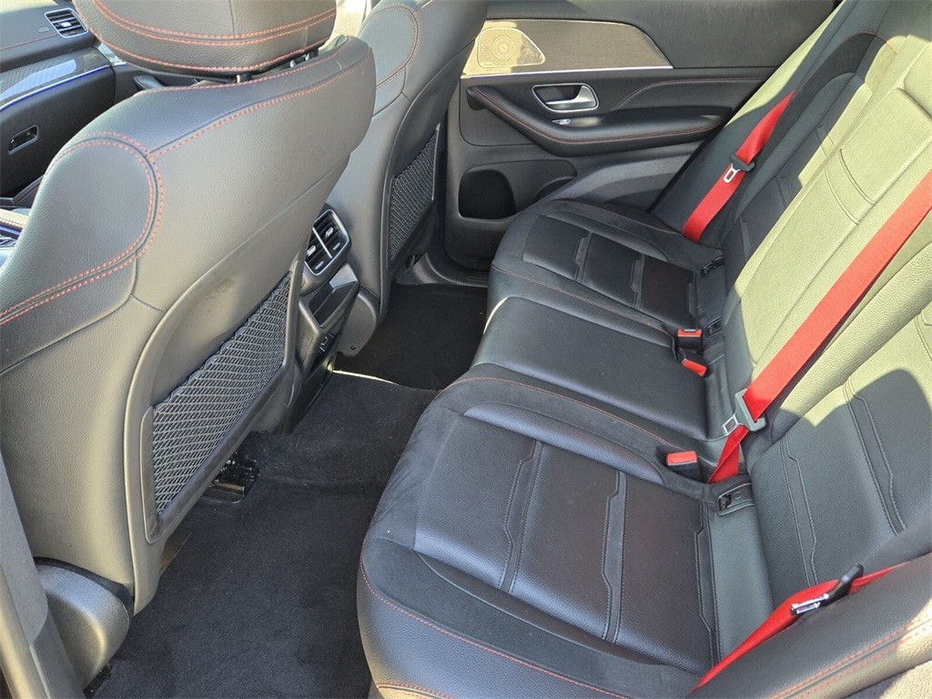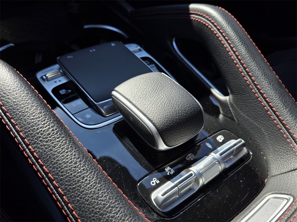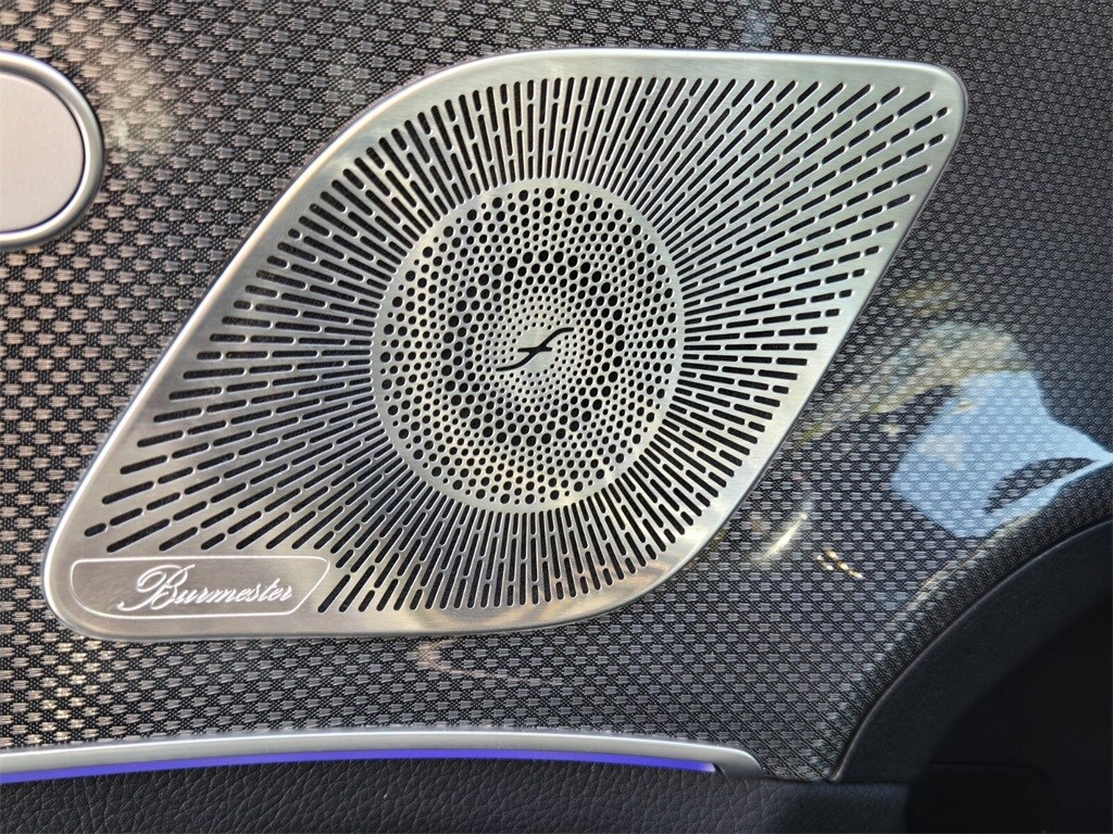 This vehicle comes equipped with 13 Speakers, 21" AMG® Twin 5-Spoke Wheels, 4-Wheel Disc Brakes, ABS brakes, Adaptive suspension, Air Conditioning, Alloy wheels, AM/FM radio: SiriusXM, Anti-whiplash front head restraints, Apple CarPlay®/Android Auto®, Auto High-beam Headlights, Auto tilt-away steering wheel, Auto-dimming door mirrors, Auto-dimming Rear-View mirror, Auto-leveling suspension, Automatic temperature control, Axle Ratio: TBD, Brake assist, Bumpers: body-color, Compass, Delay-off headlights, Driver door bin, Driver vanity mirror, Dual front impact airbags, Dual front side impact airbags, Electronic Stability Control, Emergency communication system: eCall Emergency System, Exterior Parking Camera Rear, Four wheel independent suspension, Front anti-roll bar, Front Bucket Seats, Front Center Armrest, Front dual zone A/C, Front reading lights, Fully automatic headlights, Garage door transmitter: HomeLink, Genuine wood console insert, Genuine wood dashboard insert, Genuine wood door panel insert, Heated door mirrors, Heated front seats, Heated Power Front Seats w/Driver Memory, High Performance Tires, Illuminated entry, Knee airbag, Leather steering wheel, Low tire pressure warning, MB-Tex Upholstery w/DINAMICA Inserts, Memory seat, Navigation system: MBUX, Occupant sensing airbag, Outside temperature display, Overhead airbag, Panic alarm, Passenger door bin, Passenger vanity mirror, Power adjustable front head restraints, Power door mirrors, Power driver seat, Power Liftgate, Power moonroof: Panorama, Power passenger seat, Power steering, Power windows, Premium audio system: MBUX, Radio data system, Radio: MBUX 12.3" Media Display w/Touchscreen, Rain sensing wipers, Rear anti-roll bar, Rear fog lights, Rear reading lights, Rear seat center armrest, Rear window defroster, Remote keyless entry, Security system, Speed control, Speed-sensing steering, Speed-Sensitive Wipers, Split folding rear seat, Spoiler, Sport steering wheel, Steering wheel memory, Steering wheel mounted audio controls, Tachometer, Telescoping steering wheel, Tilt steering wheel, Traction control, Trip computer, Turn signal indicator mirrors, and Weather band radio .