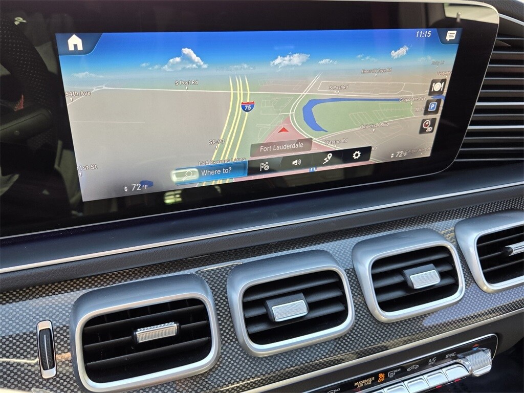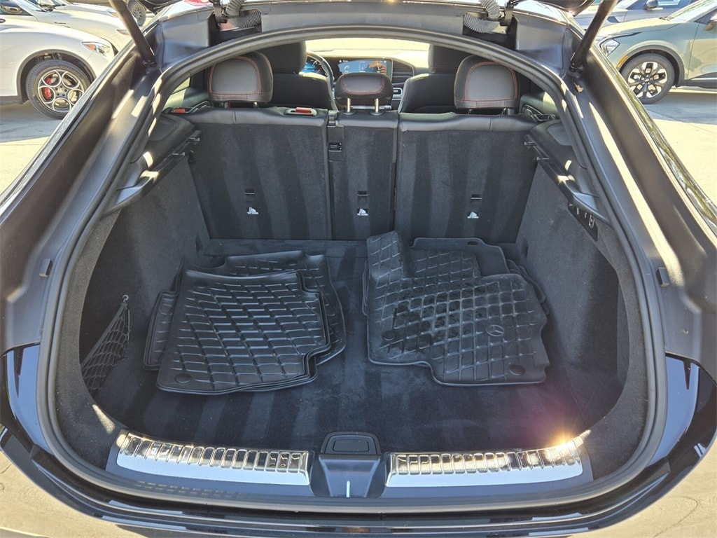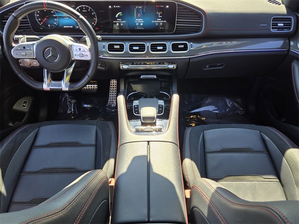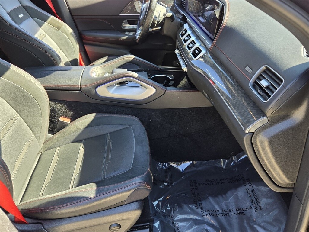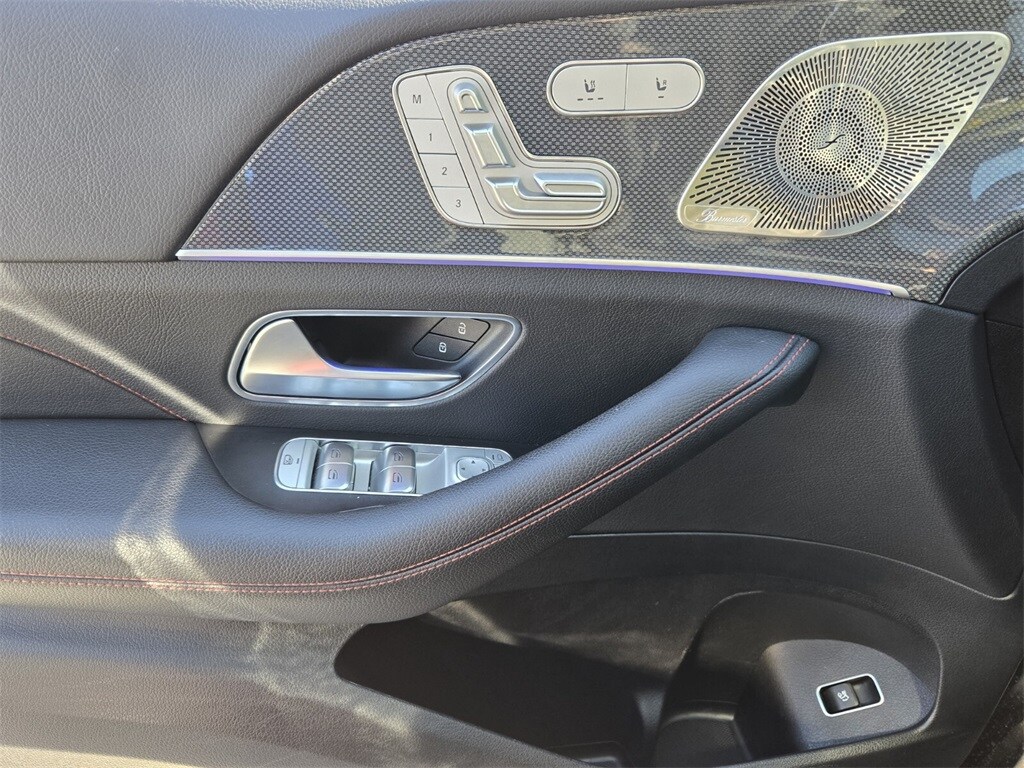This vehicle comes equipped with 13 Speakers, 21" AMG® Twin 5-Spoke Wheels, 4-Wheel Disc Brakes, ABS brakes, Adaptive suspension, Air Conditioning, Alloy wheels, AM/FM radio: SiriusXM, Anti-whiplash front head restraints, Apple CarPlay®/Android Auto®, Auto High-beam Headlights, Auto tilt-away steering wheel, Auto-dimming door mirrors, Auto-dimming Rear-View mirror, Auto-leveling suspension, Automatic temperature control, Axle Ratio: TBD, Brake assist, Bumpers: body-color, Compass, Delay-off headlights, Driver door bin, Driver vanity mirror, Dual front impact airbags, Dual front side impact airbags, Electronic Stability Control, Emergency communication system: eCall Emergency System, Exterior Parking Camera Rear, Four wheel independent suspension, Front anti-roll bar, Front Bucket Seats, Front Center Armrest, Front dual zone A/C, Front reading lights, Fully automatic headlights, Garage door transmitter: HomeLink, Genuine wood console insert, Genuine wood dashboard insert, Genuine wood door panel insert, Heated door mirrors, Heated front seats, Heated Power Front Seats w/Driver Memory, High Performance Tires, Illuminated entry, Knee airbag, Leather steering wheel, Low tire pressure warning, MB-Tex Upholstery w/DINAMICA Inserts, Memory seat, Navigation system: MBUX, Occupant sensing airbag, Outside temperature display, Overhead airbag, Panic alarm, Passenger door bin, Passenger vanity mirror, Power adjustable front head restraints, Power door mirrors, Power driver seat, Power Liftgate, Power moonroof: Panorama, Power passenger seat, Power steering, Power windows, Premium audio system: MBUX, Radio data system, Radio: MBUX 12.3" Media Display w/Touchscreen, Rain sensing wipers, Rear anti-roll bar, Rear fog lights, Rear reading lights, Rear seat center armrest, Rear window defroster, Remote keyless entry, Security system, Speed control, Speed-sensing steering, Speed-Sensitive Wipers, Split folding rear seat, Spoiler, Sport steering wheel, Steering wheel memory, Steering wheel mounted audio controls, Tachometer, Telescoping steering wheel, Tilt steering wheel, Traction control, Trip computer, Turn signal indicator mirrors, and Weather band radio .