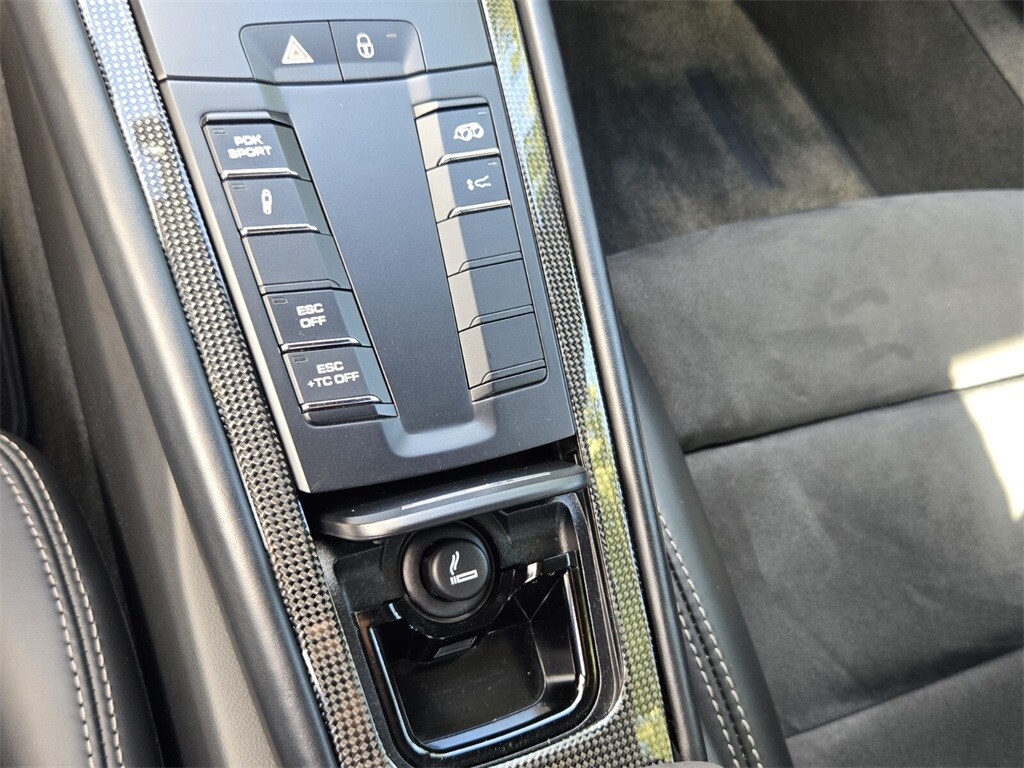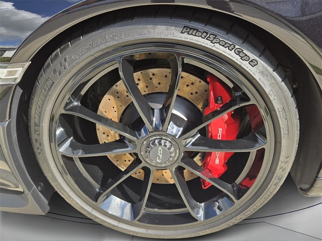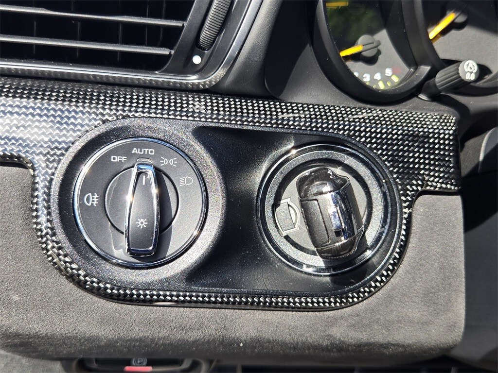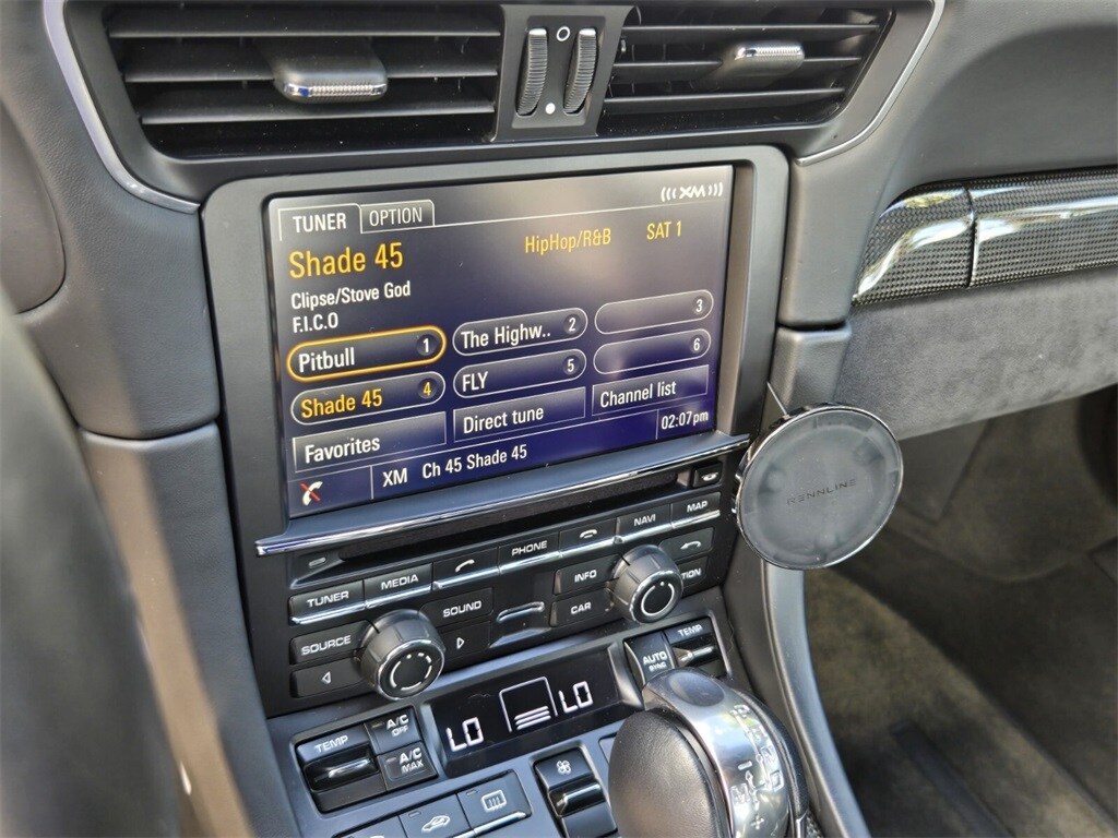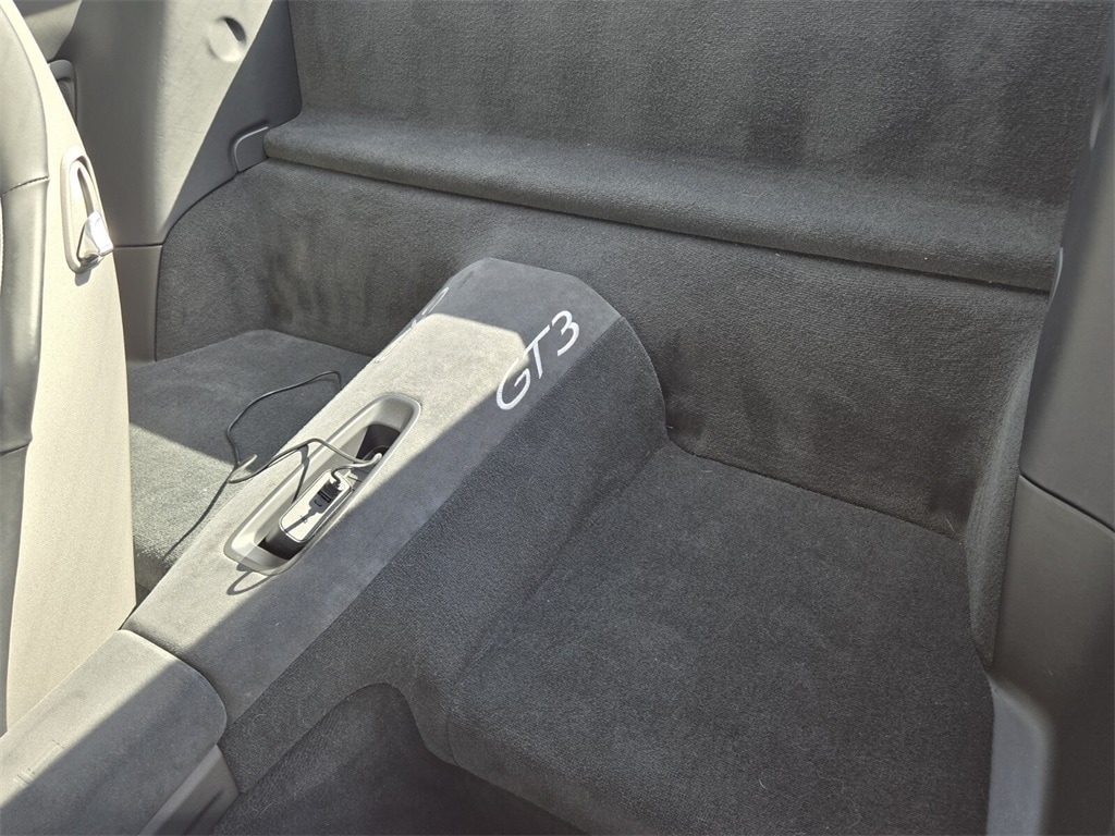This vehicle comes equipped with 4 Speakers, 4-Wheel Disc Brakes, ABS brakes, Adaptive suspension, Air Conditioning, Alloy wheels, AM/FM radio, Automatic temperature control, Brake assist, Bumpers: body-color, CD player, Delay-off headlights, Driver door bin, Driver vanity mirror, Dual front impact airbags, Dual front side impact airbags, Electronic Stability Control, Four wheel independent suspension, Front anti-roll bar, Front Bucket Seats, Front Center Armrest, Front dual zone A/C, Front reading lights, Fully automatic headlights, Garage door transmitter: HomeLink, Headlight cleaning, Heated door mirrors, High intensity discharge headlights: Bi-Xenon, Illuminated entry, Leather/Alcantara Seat Trim, Low tire pressure warning, Occupant sensing airbag, Outside temperature display, Overhead airbag, Overhead console, Passenger cancellable airbag, Passenger door bin, Passenger vanity mirror, Power door mirrors, Power driver seat, Power passenger seat, Power steering, Power windows, Radio data system, Radio: CDR Audio Sys w/7" QVGA Touchscreen Display, Rear anti-roll bar, Rear fog lights, Rear window defroster, Remote keyless entry, Security system, Speed control, Speed-sensing steering, Spoiler, Sport steering wheel, Sports Seats Plus, Tachometer, Telescoping steering wheel, Tilt steering wheel, Traction control, Trip computer, Variably intermittent wipers, and Wheels: 9J x 20" Fr/12J x 20" Rr GT3 .