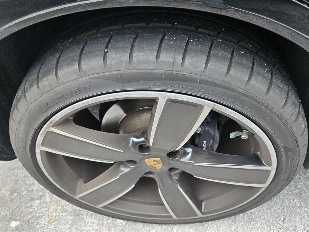 This vehicle comes equipped with Leather, 14 Speakers, 4-Wheel Disc Brakes, 8-Way Sport Seats, ABS brakes, Adaptive suspension, Air Conditioning, Alloy wheels, AM/FM radio: SiriusXM, Apple CarPlay, Auto-dimming door mirrors, Auto-dimming Rear-View mirror, Automatic temperature control, Axle Ratio: 3.480, Brake assist, Bumpers: body-color, Delay-off headlights, Driver door bin, Driver vanity mirror, Dual front impact airbags, Dual front side impact airbags, Electronic Stability Control, Exterior Parking Camera Rear, Four wheel independent suspension, Front anti-roll bar, Front Bucket Seats, Front Center Armrest, Front dual zone A/C, Front reading lights, Fully automatic headlights, Garage door transmitter: HomeLink, Heated door mirrors, Heated front seats, Illuminated entry, Knee airbag, Leather Seat Trim, Leather Shift Knob, Low tire pressure warning, Navigation System, Occupant sensing airbag, Outside temperature display, Overhead airbag, Overhead console, Panic alarm, Passenger door bin, Passenger vanity mirror, Porsche Communication Management, Power door mirrors, Power driver seat, Power Liftgate, Power moonroof: Panoramic, Power passenger seat, Power steering, Power windows, Radio data system, Rain sensing wipers, Rear anti-roll bar, Rear fog lights, Rear reading lights, Rear seat center armrest, Rear side impact airbag, Rear window defroster, Rear window wiper, Remote keyless entry, Security system, Speed control, Speed-sensing steering, Split folding rear seat, Spoiler, Steering wheel mounted audio controls, Tachometer, Telescoping steering wheel, Tilt steering wheel, Traction control, Trip computer, Turn signal indicator mirrors, Variably intermittent wipers, Voltmeter, and Wheels: 21" RS Spyder Design in Satin Platinum .