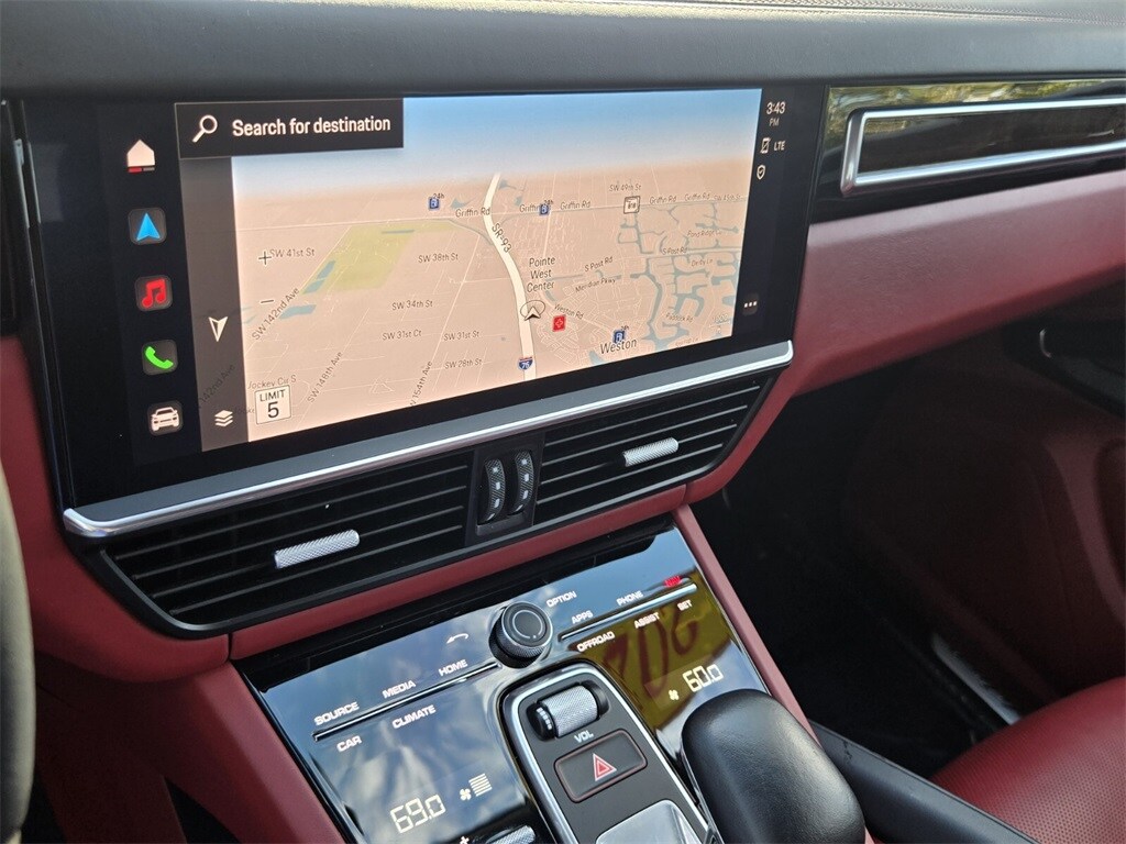 This vehicle comes equipped with Leather, 4-Wheel Disc Brakes, ABS brakes, Adaptive suspension, Air Conditioning, Alloy wheels, AM/FM radio: SiriusXM, Apple CarPlay, Automatic temperature control, Axle Ratio: 3.48, Brake assist, Bumpers: body-color, Delay-off headlights, Driver door bin, Driver vanity mirror, Dual front impact airbags, Dual front side impact airbags, Electronic Stability Control, Exterior Parking Camera Rear, Four wheel independent suspension, Front anti-roll bar, Front Bucket Seats, Front Center Armrest, Front dual zone A/C, Front reading lights, Fully automatic headlights, Garage door transmitter: HomeLink, Heated door mirrors, Illuminated entry, Knee airbag, Leather Shift Knob, Low tire pressure warning, Navigation System, Occupant sensing airbag, Outside temperature display, Overhead airbag, Overhead console, Panic alarm, Partial Leather Seat Trim, Passenger door bin, Passenger vanity mirror, Porsche Communication Management, Power door mirrors, Power driver seat, Power Liftgate, Power passenger seat, Power steering, Power windows, Radio data system, Rain sensing wipers, Rear anti-roll bar, Rear fog lights, Rear reading lights, Rear seat center armrest, Rear side impact airbag, Rear window defroster, Rear window wiper, Remote keyless entry, Security system, Speed control, Split folding rear seat, Spoiler, Steering wheel mounted audio controls, Tachometer, Telescoping steering wheel, Tilt steering wheel, Traction control, Trip computer, Turn signal indicator mirrors, Variably intermittent wipers, and Voltmeter .