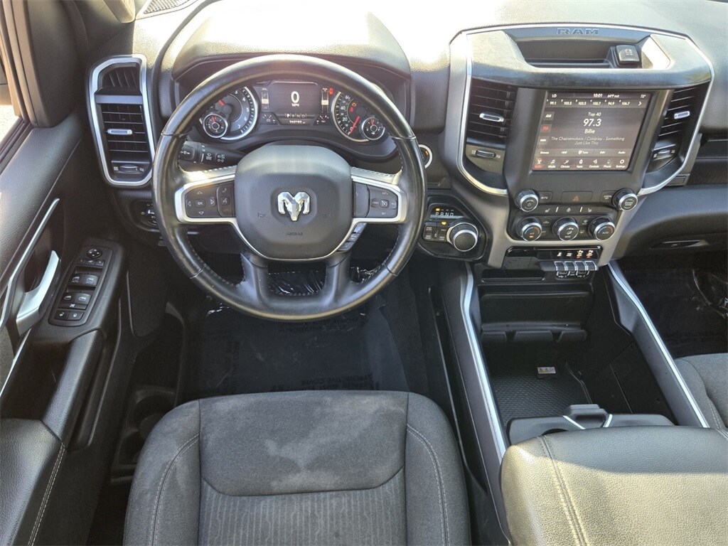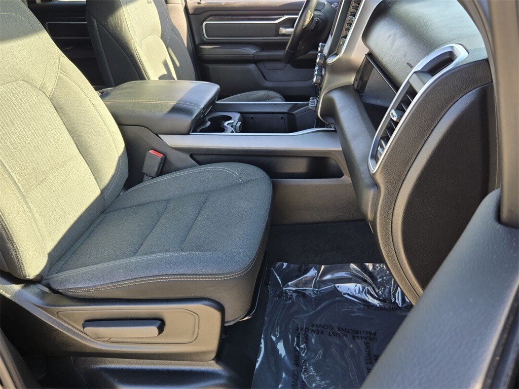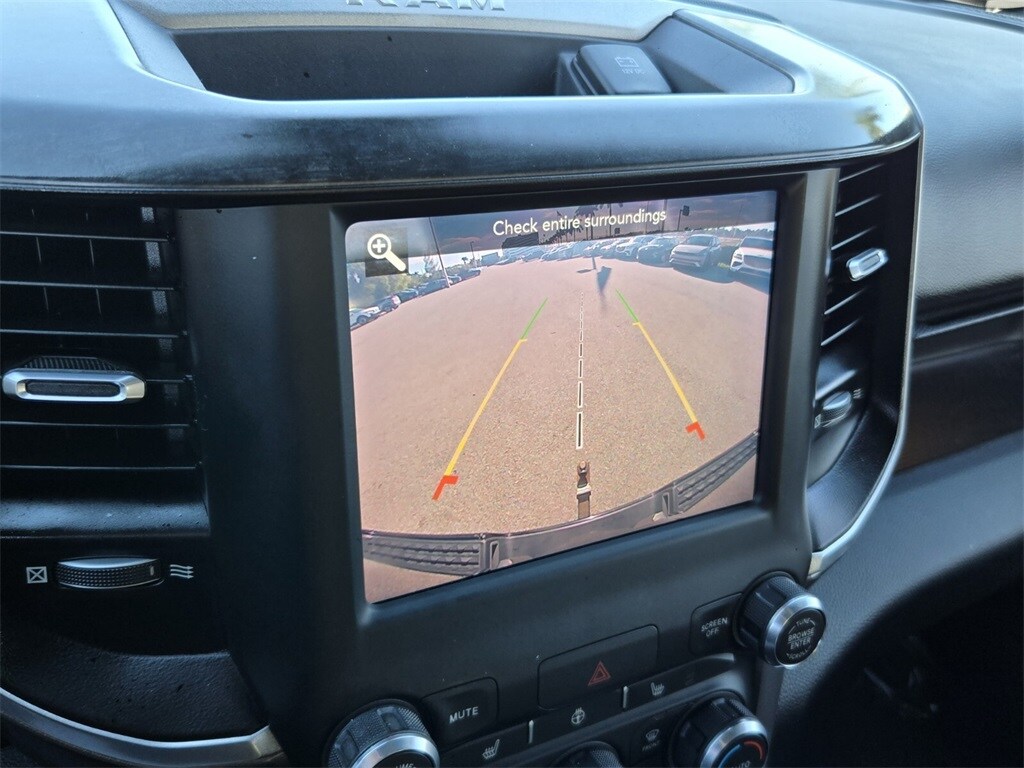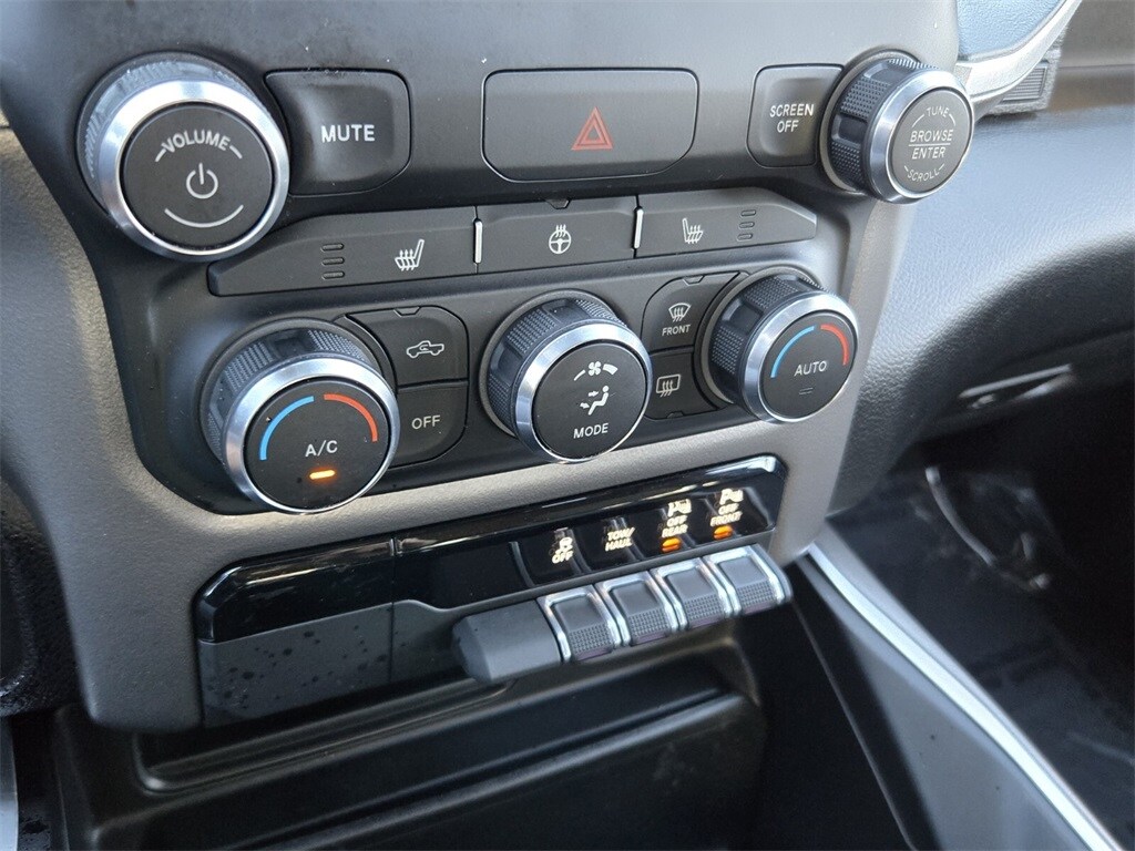 This vehicle comes equipped with Big Horn Level 2 Equipment Group (115V Auxiliary Power Outlet, 115V Auxiliary Rear Power Outlet, 400W Inverter, Air Conditioning ATC w/Dual Zone Control, Auto-Dimming Exterior Driver Mirror, Auto-Dimming Rear-View Mirror, Black Premium Power Mirrors, Class IV Receiver Hitch, Cluster 7.0" TFT Color Display, Exterior Mirrors Courtesy Lamps, Exterior Mirrors w/Supplemental Signals, Foam Bottle Insert (Door Trim Panel), For More Info, Call 800-643-2112, Glove Box Lamp, Heated Front Seats, Heated Steering Wheel, Media Hub w/2 Charge Only USBs, ParkSense Front/Rear Park Assist w/Stop, Power 4-Way Driver Lumbar Adjust, Power 8-Way Driver Seat, Power Adjustable Pedals, Power-Folding Mirrors, Rear Dome w/On/Off Switch Lamp, Rear Power Sliding Window, Rear Window Defroster, Security Alarm, SiriusXM Radio Service, Sun Visors w/Illuminated Vanity Mirrors, and Universal Garage Door Opener), Night Edition (3 Rear Seat Head Restraints, 4 Way Front Headrests, Anti-Spin Differential Rear Axle, Black Exterior Truck Badging, Black Headlamp Bezels, Black Interior Accents, Body Color Front Bumper, Body Color Rear Bumper w/Step Pads, Bucket Seats, Center Console Parts Module, Deluxe Cloth Bucket Seats, Dual Exhaust w/Black Tips, Exterior Mirrors w/Memory, Front Seat Back Map Pockets, Full Length Floor Console, Manual Adjust 4-Way Front Passenger Seat, Rear 60/40 Folding Seat, and Wheels: 20" x 9.0" Premium Paint/Polished), Quick Order Package 25Z Big Horn (Big Horn Badge), 3.21 Rear Axle Ratio, 3.92 Rear Axle Ratio, 4-Wheel Disc Brakes, 40/20/40 Split Bench Seat, 48V Belt Starter Generator, 6 Speakers, ABS brakes, Air Conditioning, Alloy wheels, AM/FM radio, Black Exterior Mirrors, Brake assist, Bumpers: chrome, Cloth Bench Seat, Compass, Delay-off headlights, Driver door bin, Dual front impact airbags, Dual front side impact airbags, Electronic Stability Control, Front anti-roll bar, Front Center Armrest w/Storage, Front fog lights, Front reading lights, Front wheel independent suspension, Fully automatic headlights, GPS Antenna Input, Heated door mirrors, Illuminated entry, Integrated Voice Command w/Bluetooth, Leather steering wheel, Low tire pressure warning, Occupant sensing airbag, Outside temperature display, Overhead airbag, Overhead console, Panic alarm, ParkView Rear Back-Up Camera, Passenger door bin, Passenger vanity mirror, Power door mirrors, Power steering, Power windows, Radio data system, Radio: Uconnect 3 w/5" Display, Radio: Uconnect 4 w/8.4" Display,