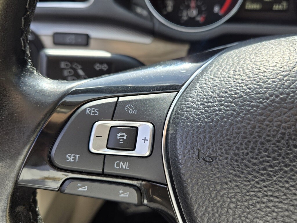This vehicle comes equipped with Cornsilk Beige W/Brown Artificial Leather, 4-Wheel Disc Brakes, 6 Speakers, ABS brakes, Air Conditioning, Alloy wheels, AM/FM radio: SiriusXM, Auto-dimming Rear-View mirror, Automatic temperature control, Brake assist, Bumpers: body-color, CD player, Delay-off headlights, Driver door bin, Driver vanity mirror, Dual front impact airbags, Dual front side impact airbags, Electronic Stability Control, Emergency communication system: VW Car-Net, Exterior Parking Camera Rear, Four wheel independent suspension, Front anti-roll bar, Front Bucket Seats, Front Center Armrest, Front dual zone A/C, Front fog lights, Front reading lights, Fully automatic headlights, Heated door mirrors, Heated Front Comfort Seats, Heated front seats, Heated rear seats, Illuminated entry, Leather Shift Knob, Low tire pressure warning, Monster Mats Rubber Mats Kit (Set of 4), Navigation System, Occupant sensing airbag, Outside temperature display, Overhead airbag, Overhead console, Panic alarm, Passenger door bin, Passenger vanity mirror, Perforated V-Tex Leatherette Seating Surfaces, Power door mirrors, Power driver seat, Power moonroof, Power steering, Power windows, Radio data system, Radio: Discover Media AM/FM/HD w/CD Player, Rain sensing wipers, Rear anti-roll bar, Rear reading lights, Rear seat center armrest, Rear window defroster, Remote keyless entry, Roadside Assistance Kit, Speed control, Speed-sensing steering, Split folding rear seat, Steering wheel mounted audio controls, Tachometer, Telescoping steering wheel, Tilt steering wheel, Traction control, Trip computer, Turn signal indicator mirrors, Variably intermittent wipers, and Wheels: 18" Chattanooga Alloy .