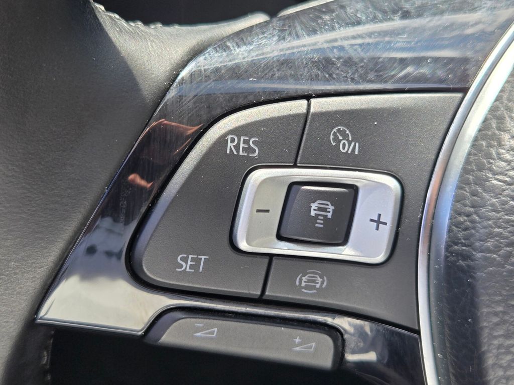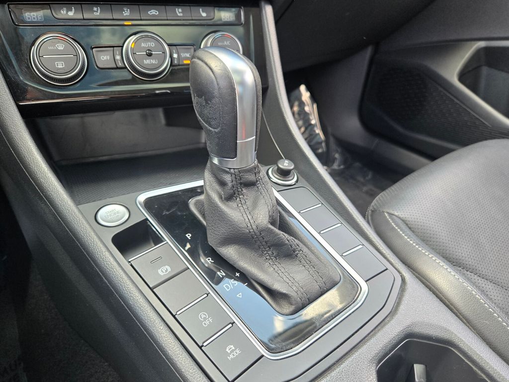This vehicle comes equipped with Black Leather, 4-Wheel Disc Brakes, 9 Speakers, ABS brakes, Air Conditioning, Alloy wheels, AM/FM radio: SiriusXM, Auto High-beam Headlights, Auto-dimming Rear-View mirror, Automatic temperature control, Brake assist, Bumperdillo Protection Plate for Rear Bumper, Bumpers: body-color, Delay-off headlights, Driver door bin, Driver vanity mirror, Dual front impact airbags, Dual front side impact airbags, Electronic Stability Control, Emergency communication system: VW Car-Net services (capabilities require enrollment or subscription), Exterior Parking Camera Rear, Front anti-roll bar, Front Bucket Seats, Front Center Armrest, Front dual zone A/C, Front fog lights, Front reading lights, Front wheel independent suspension, Fully automatic headlights, Heated door mirrors, Heated front seats, Heavy Duty Trunk Liner w/VW CarGo Blocks, Htd/Actively Ventilated Front Comfort Sport Seats, Illuminated entry, Leather Shift Knob, Low tire pressure warning, Memory seat, Monster Mats w/Logo Rubber Mats Kit (Set of 4), Navigation System, Occupant sensing airbag, Outside temperature display, Overhead airbag, Overhead console, Panic alarm, Passenger door bin, Passenger vanity mirror, Perforated Leather Seat Trim, Power door mirrors, Power driver seat, Power moonroof, Power steering, Power windows, Radio data system, Radio: Discover Media w/8" Touchscreen Navigation, Rain sensing wipers, Rear anti-roll bar, Rear reading lights, Rear seat center armrest, Rear window defroster, Remote CD player, Remote keyless entry, Security system, Speed control, Speed-sensing steering, Split folding rear seat, Steering wheel mounted audio controls, Tachometer, Telescoping steering wheel, Tilt steering wheel, Traction control, Trip computer, Turn signal indicator mirrors, Variably intermittent wipers, Ventilated front seats, and Wheels: 17" Gold/Beige Tinted Tornado Metallic .