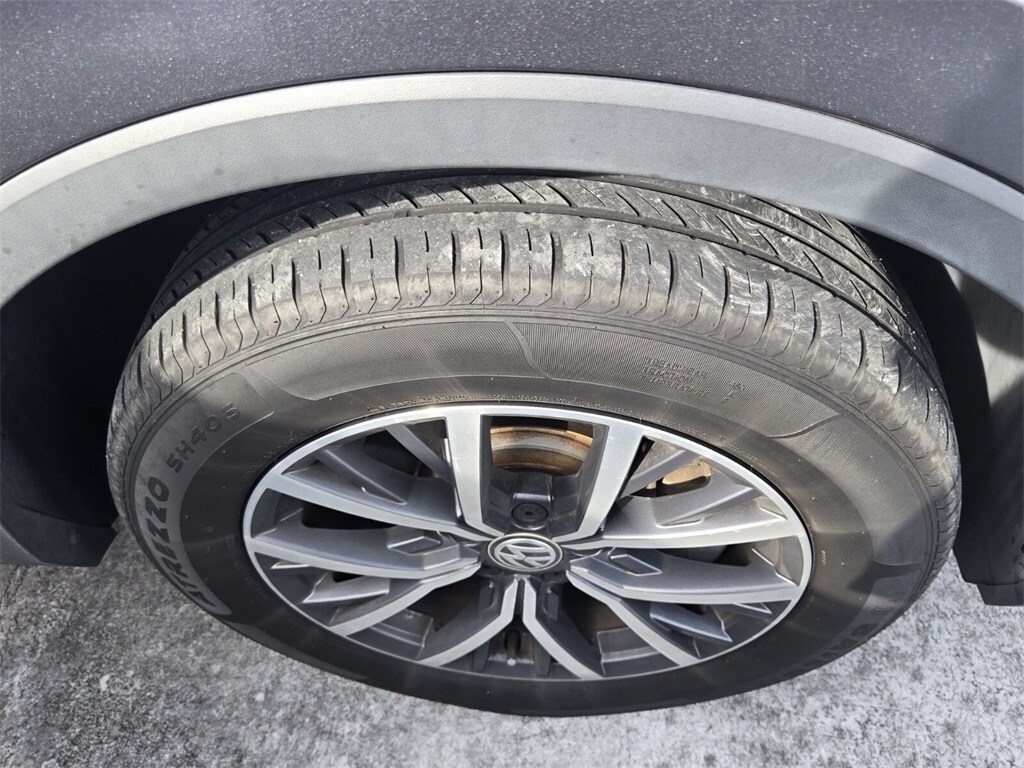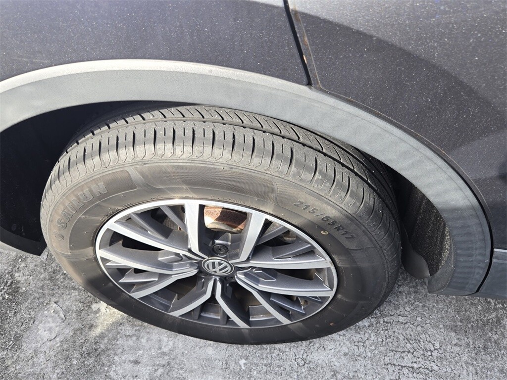 This vehicle comes equipped with Panoramic Sunroof Package, 3-Row Rubber Mats Kit (DISC), 3.33 Axle Ratio, 3rd row seats: bench, 4-Wheel Disc Brakes, 4-Wheel Independent Suspension, 6 Speakers, ABS brakes, Air Conditioning, Alloy wheels, AM/FM radio: SiriusXM, Automatic temperature control, Brake assist, Bumperdillo Protection Plate for Rear Bumper, Bumpers: body-color, Compass, Delay-off headlights, Driver door bin, Driver vanity mirror, Dual front impact airbags, Dual front side impact airbags, Electronic Stability Control, Exterior Parking Camera Rear, Forward collision: FCW w/Autonomous Emergency Braking mitigation, Four wheel independent suspension, Front anti-roll bar, Front Bucket Seats, Front Center Armrest, Front dual zone A/C, Front reading lights, Fully automatic headlights, Heated door mirrors, Heated Front Comfort Seats, Heated front seats, Heavy Duty Trunk Liner w/VW CarGo Blocks, Illuminated entry, Leather Shift Knob, Low tire pressure warning, Occupant sensing airbag, Outside temperature display, Overhead airbag, Overhead console, Panic alarm, Passenger door bin, Passenger vanity mirror, Perforated V-Tex Leatherette Seating Surfaces, Power door mirrors, Power driver seat, Power steering, Power windows, Radio data system, Radio: Composition Media AM/FM/HD, Rear anti-roll bar, Rear reading lights, Rear seat center armrest, Rear window defroster, Rear window wiper, Remote CD player, Remote keyless entry, Roof rack: rails only, Security system, Speed control, Speed-sensing steering, Split folding rear seat, Spoiler, Steering wheel mounted audio controls, Tachometer, Telescoping steering wheel, Tilt steering wheel, Traction control, Trip computer, Turn signal indicator mirrors, Variably intermittent wipers, and Wheels: 17" Wide Multi-Spoke 2-Tone Alloy .